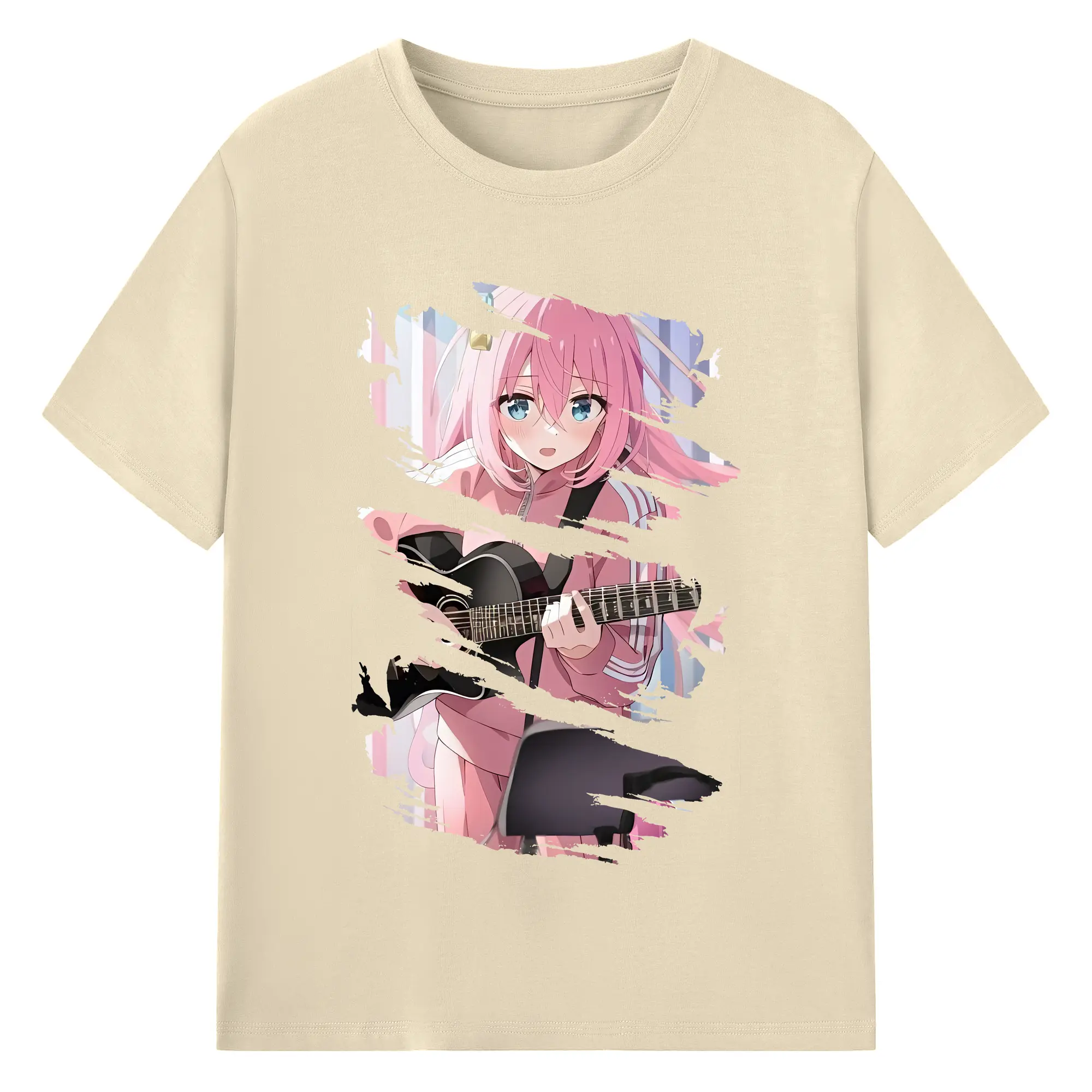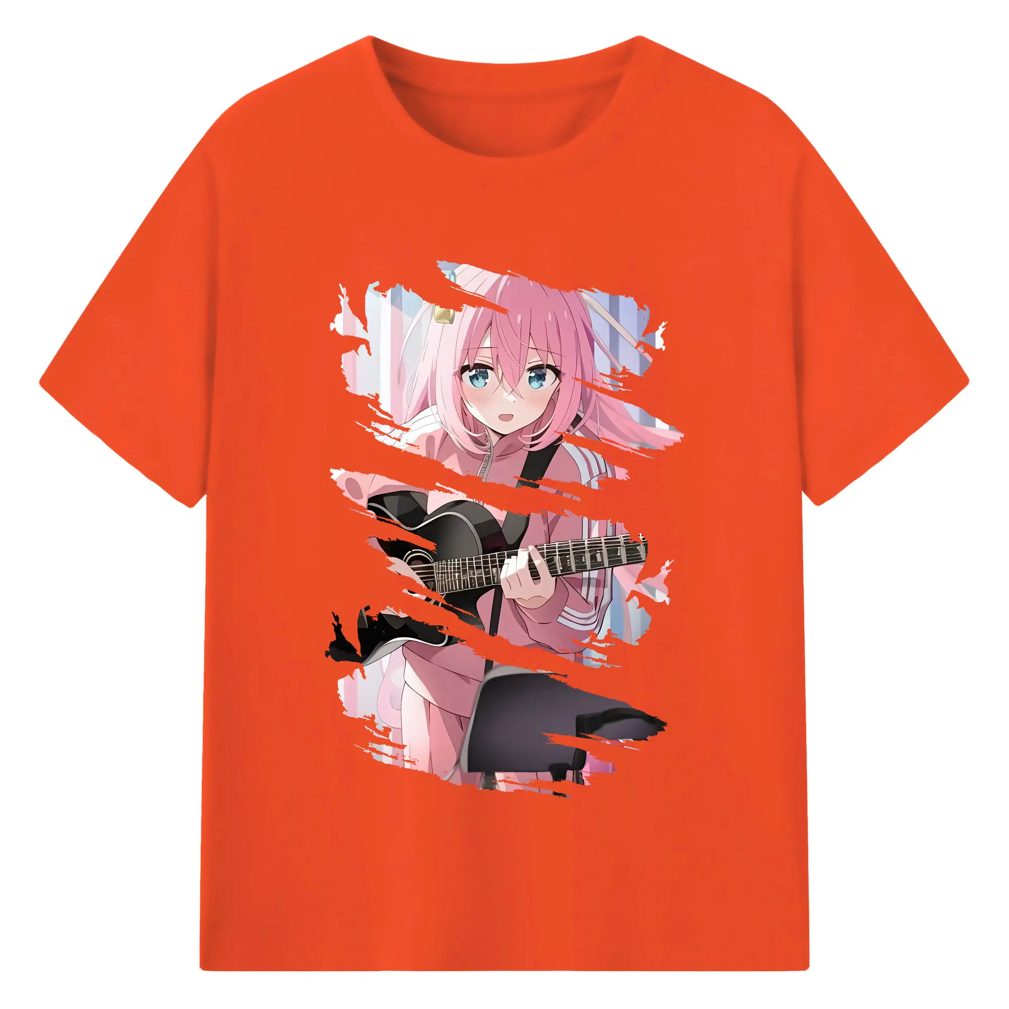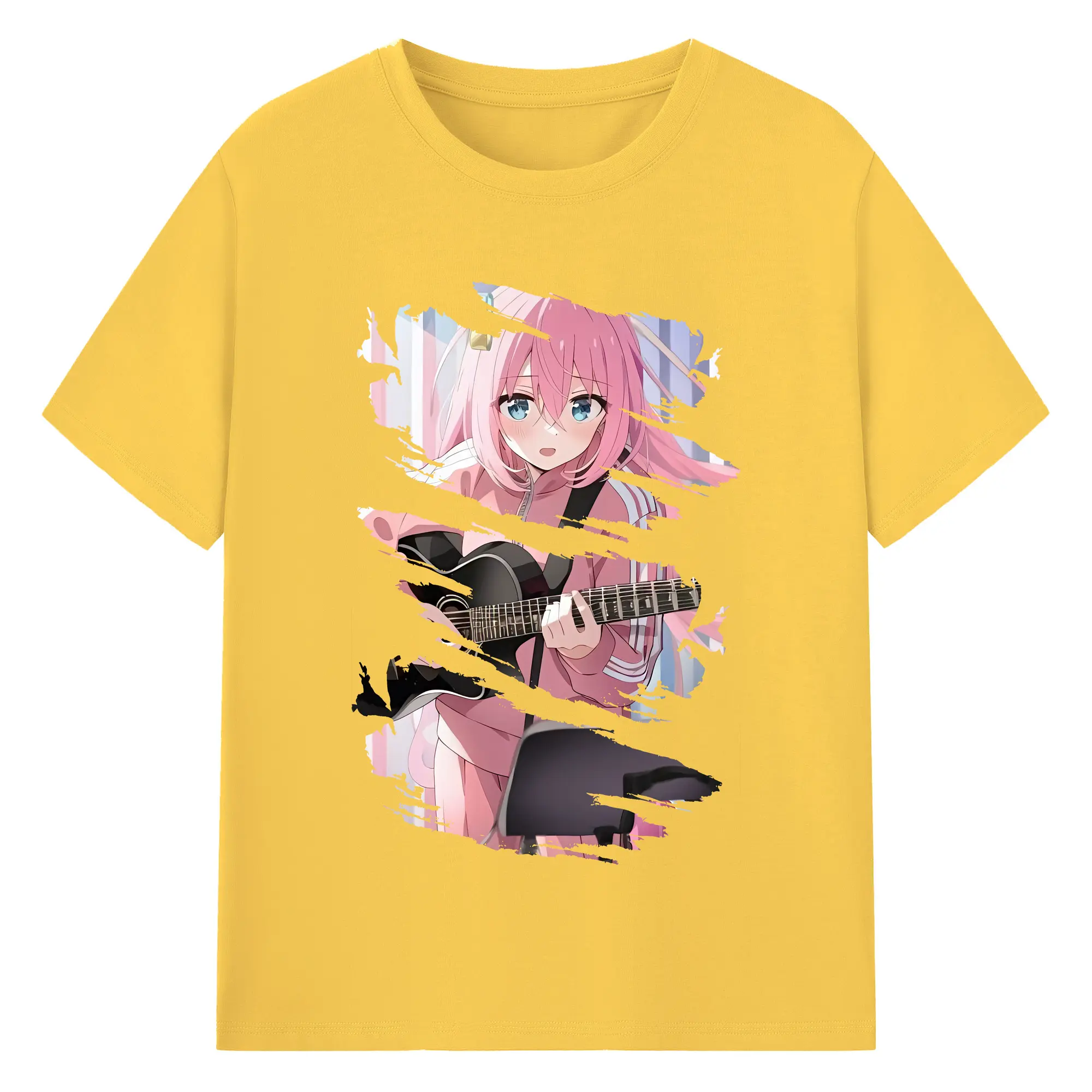 ぼっちざろっく! グッズ,後藤ひとり - 綿100% ヴィンテージ風 半袖Tシャツ ・ フロントプリント ・ 柔らか肌触り ・ 通気性 快適 ・ スポーツ カジュアル 外出用