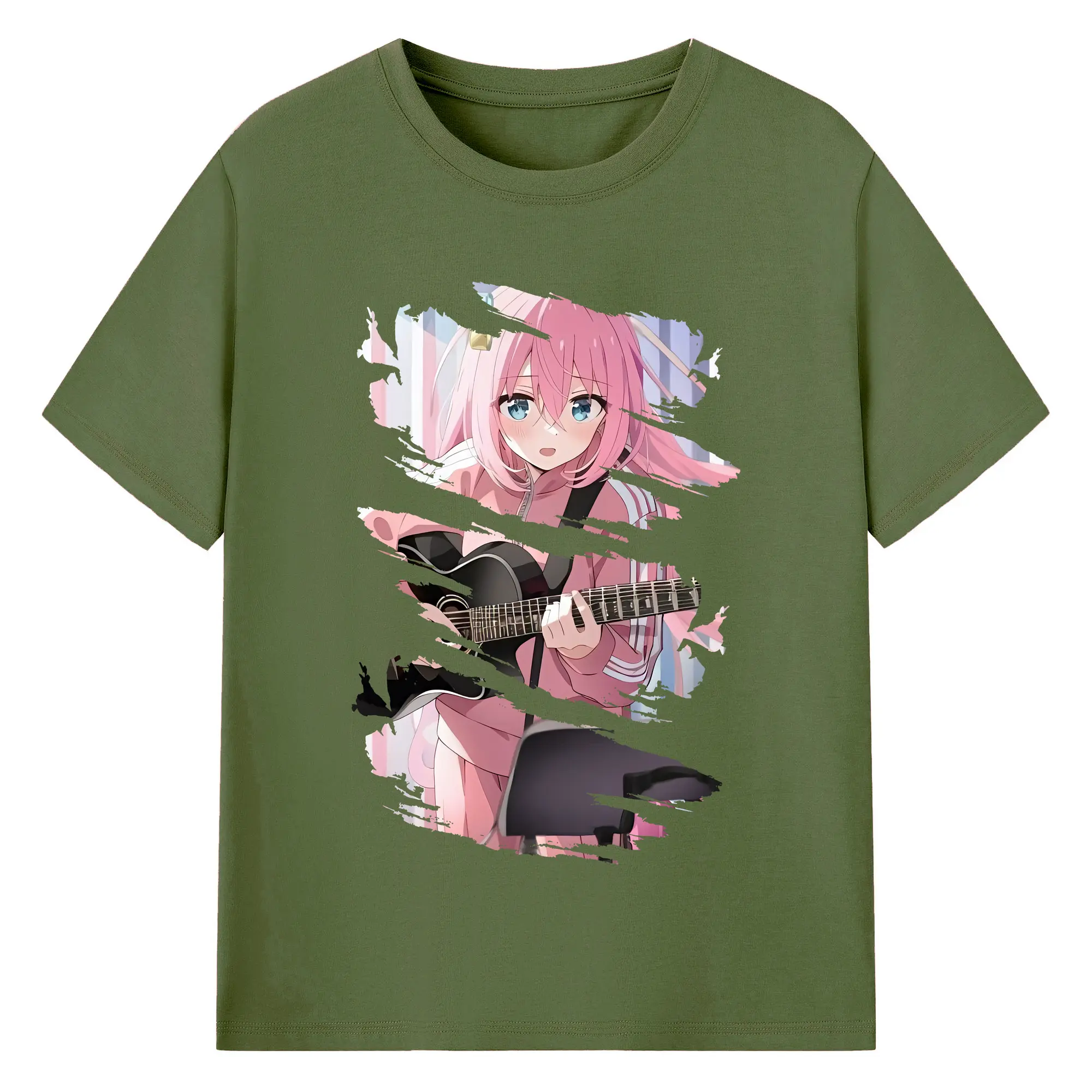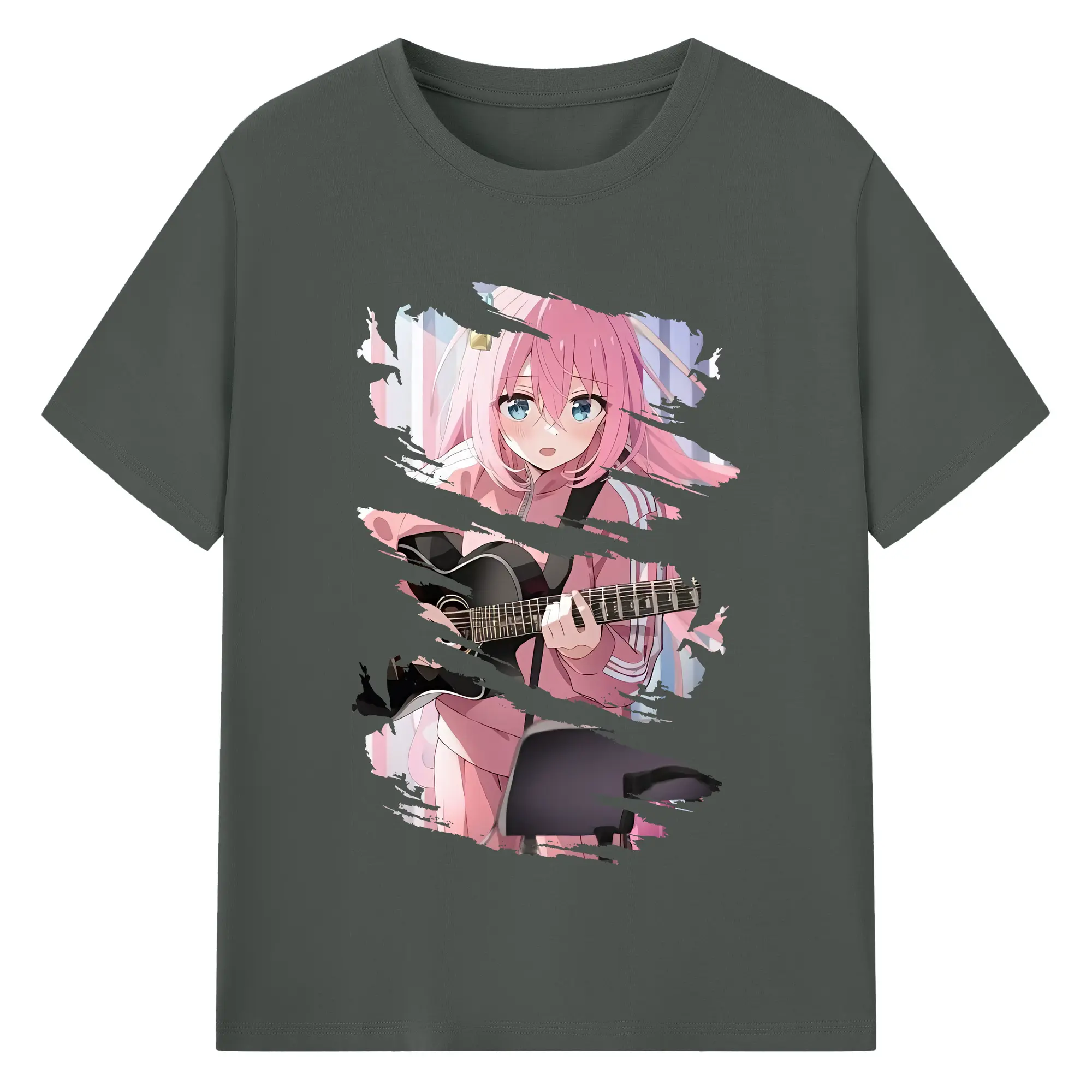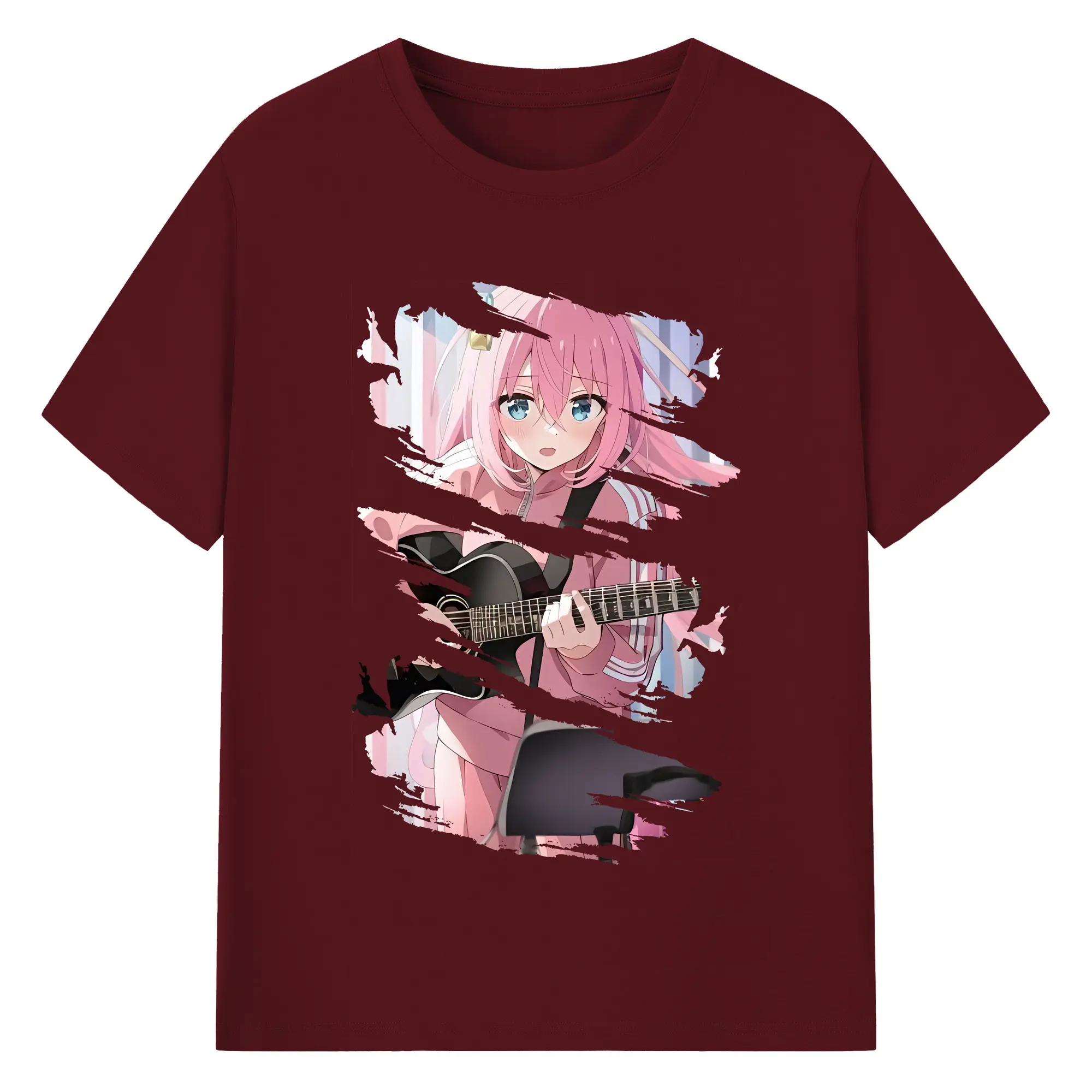 ぼっちざろっく! グッズ,後藤ひとり - 綿100% ヴィンテージ風 半袖Tシャツ ・ フロントプリント ・ 柔らか肌触り ・ 通気性 快適 ・ スポーツ カジュアル 外出用