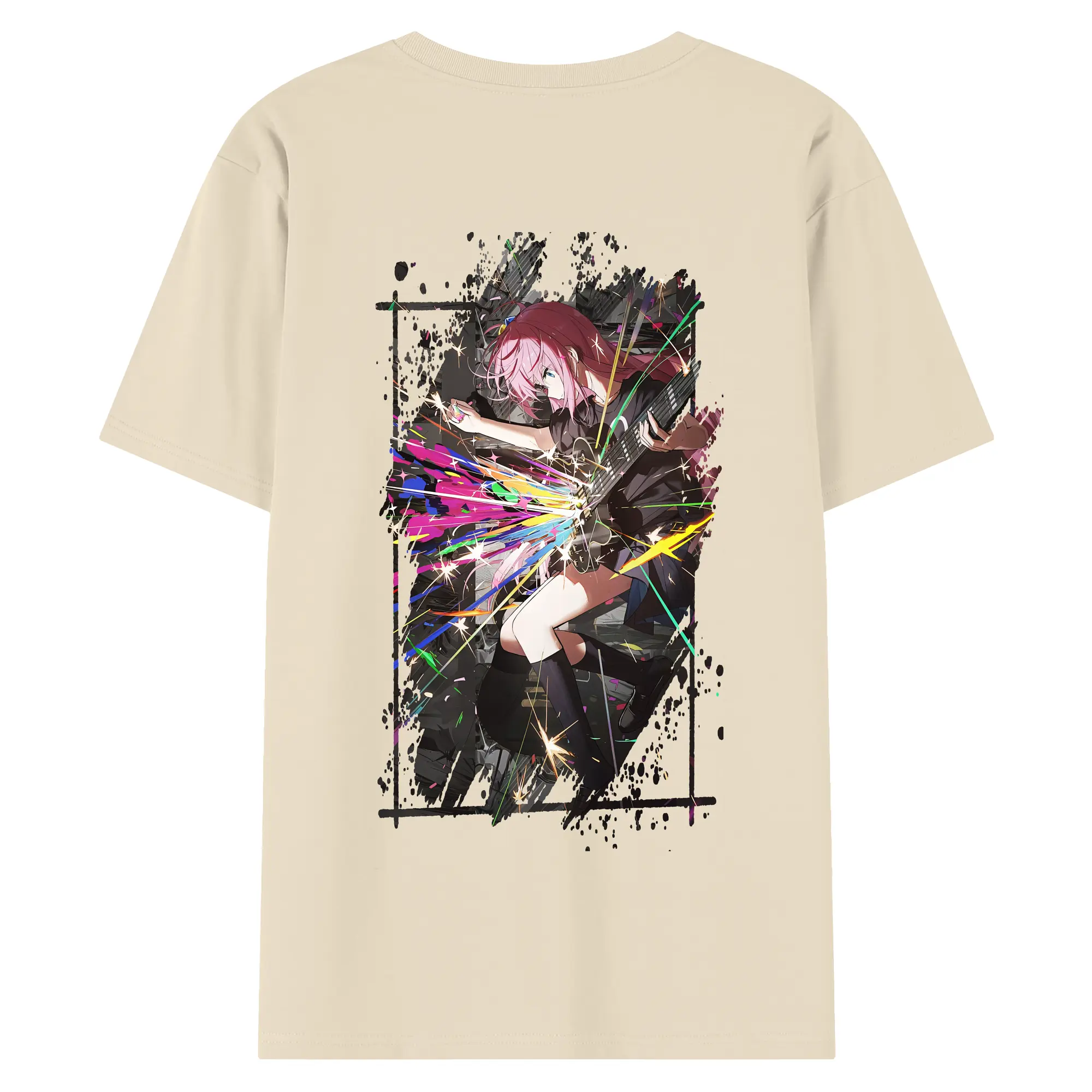ぼっちざろっく! グッズ,後藤ひとり - 綿100% ヴィンテージ風 半袖Tシャツ ・ 背面プリント ・ 柔らか肌触り ・ 通気性 快適 ・ スポーツ カジュアル 外出用