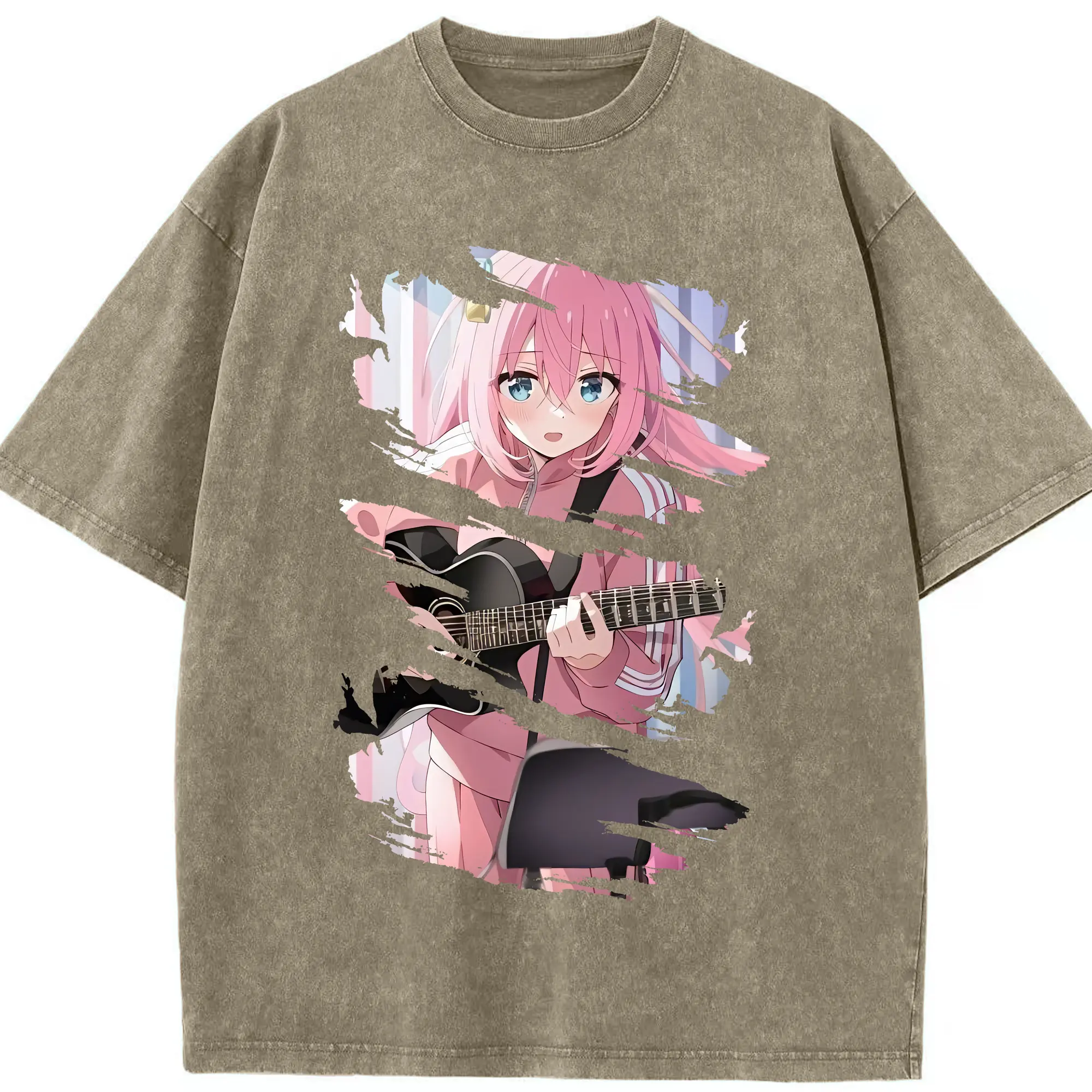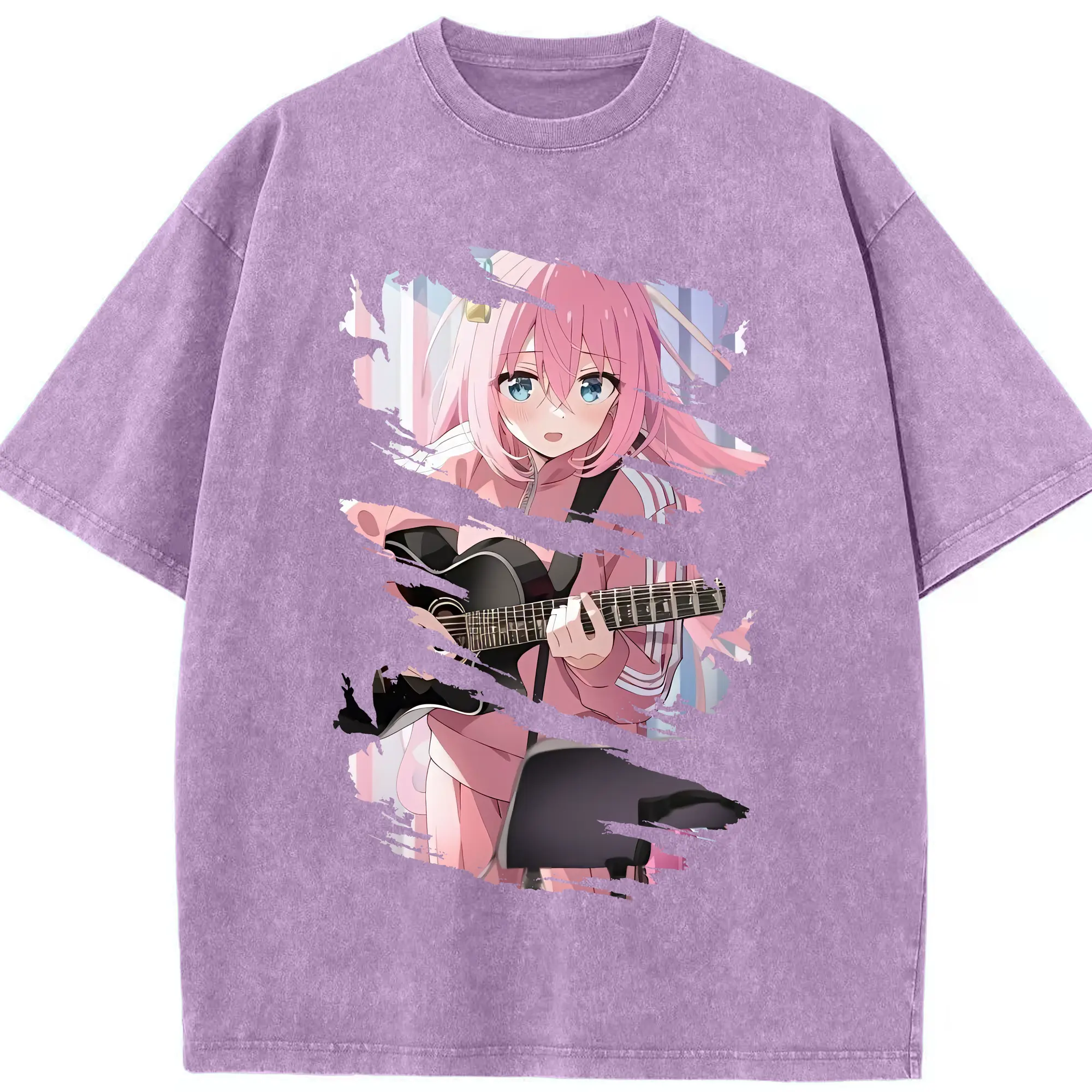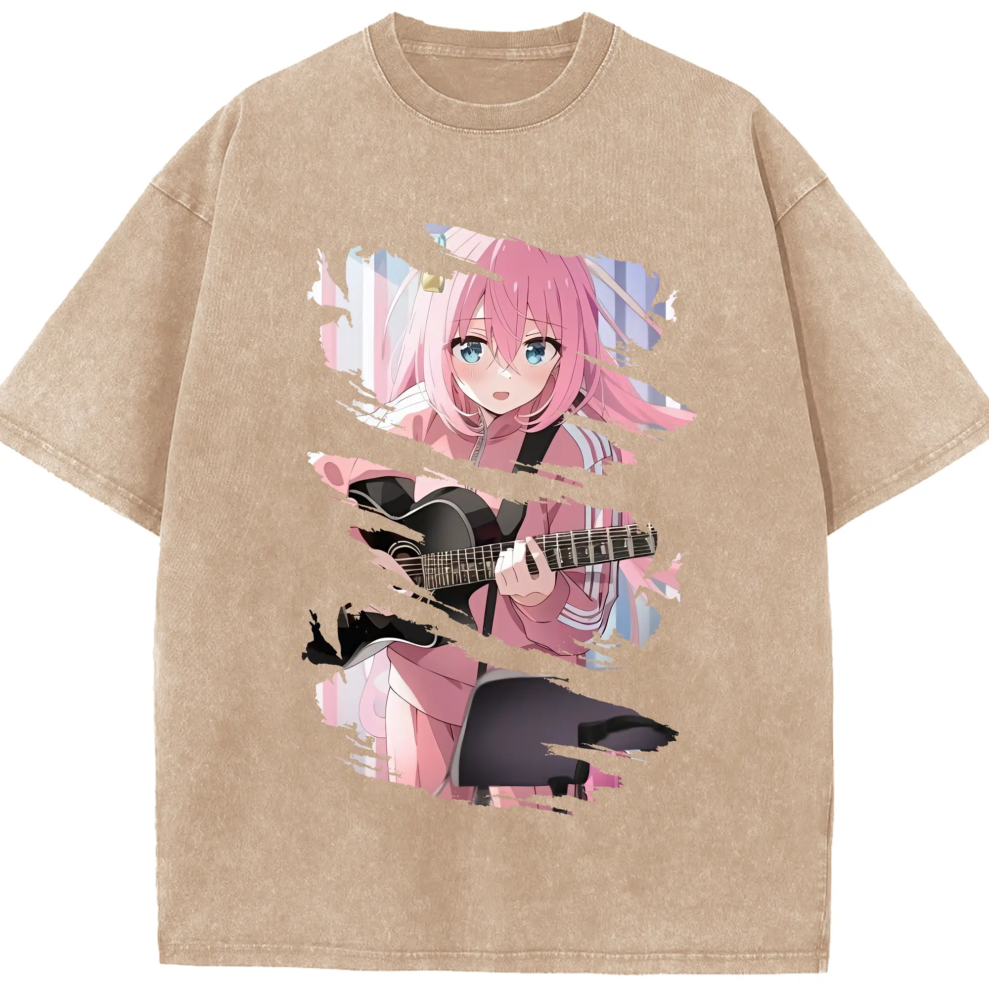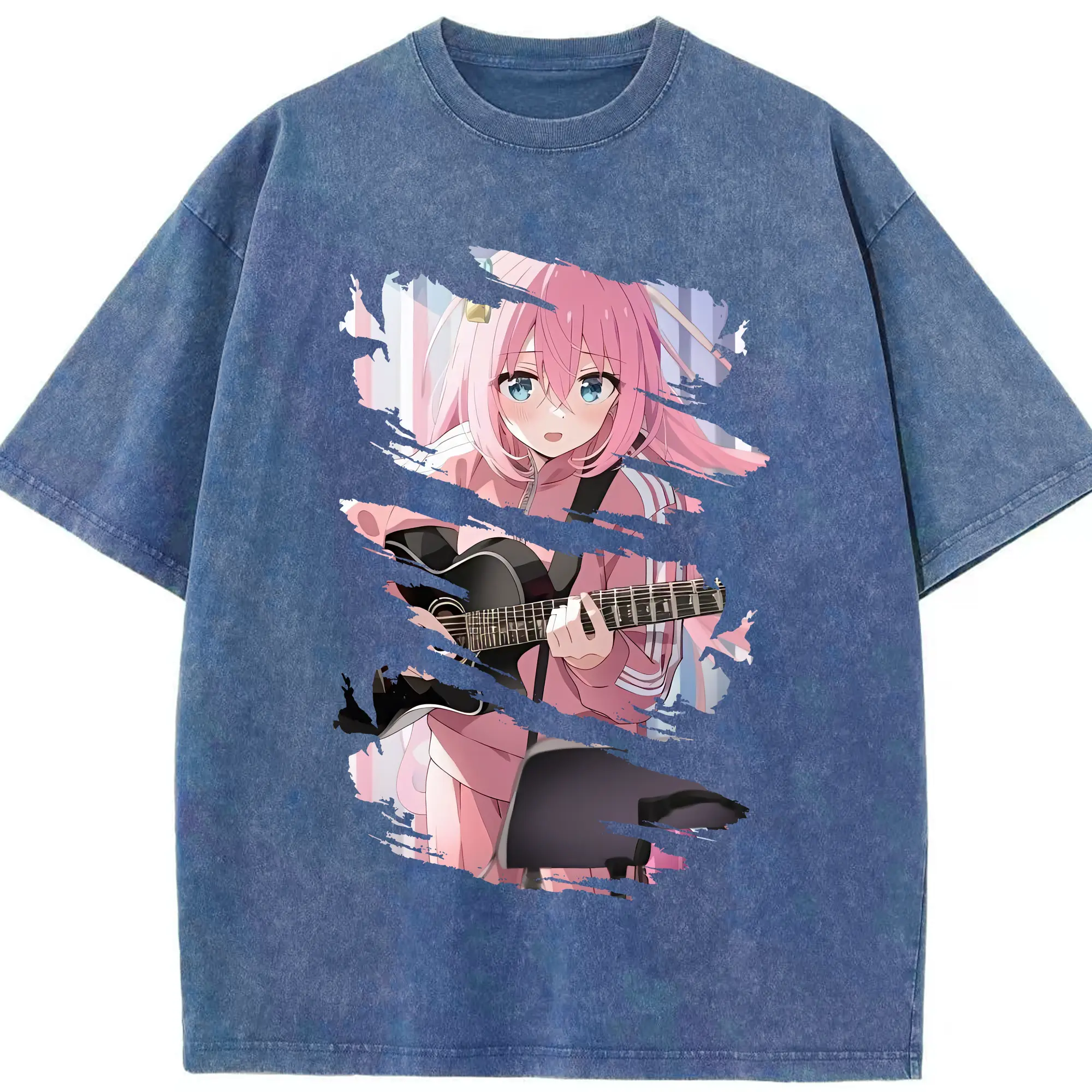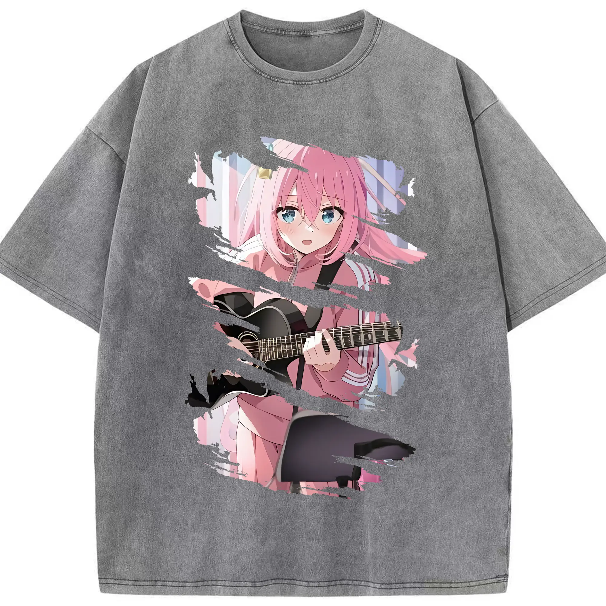 ぼっちざろっく! グッズ,後藤ひとり - 綿100% ヴィンテージ風 半袖Tシャツ ・ 背面プリント ・ 柔らか肌触り ・ 通気性 快適 ・ スポーツ カジュアル 外出用