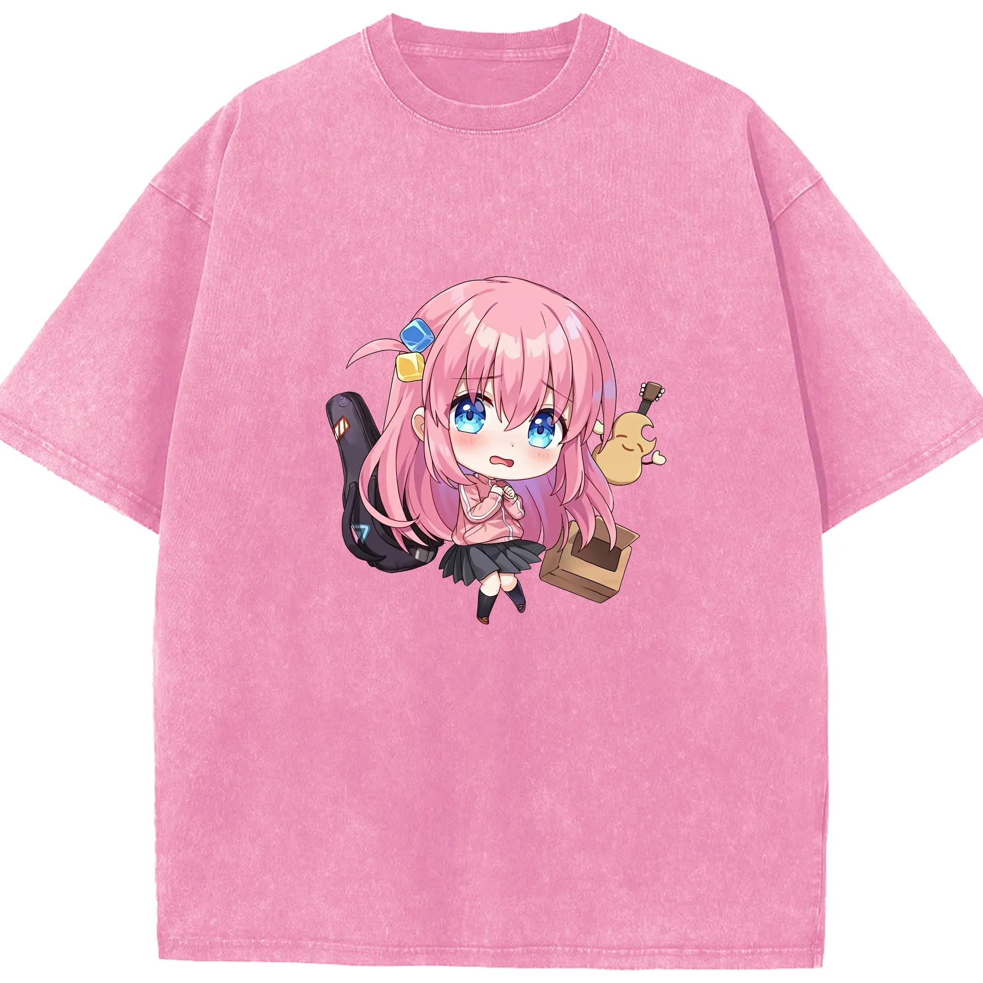 ぼっちざろっく! グッズ,後藤ひとり - 綿100% ヴィンテージ風 半袖Tシャツ ・ 背面プリント ・ 柔らか肌触り ・ 通気性 快適 ・ スポーツ カジュアル 外出用
