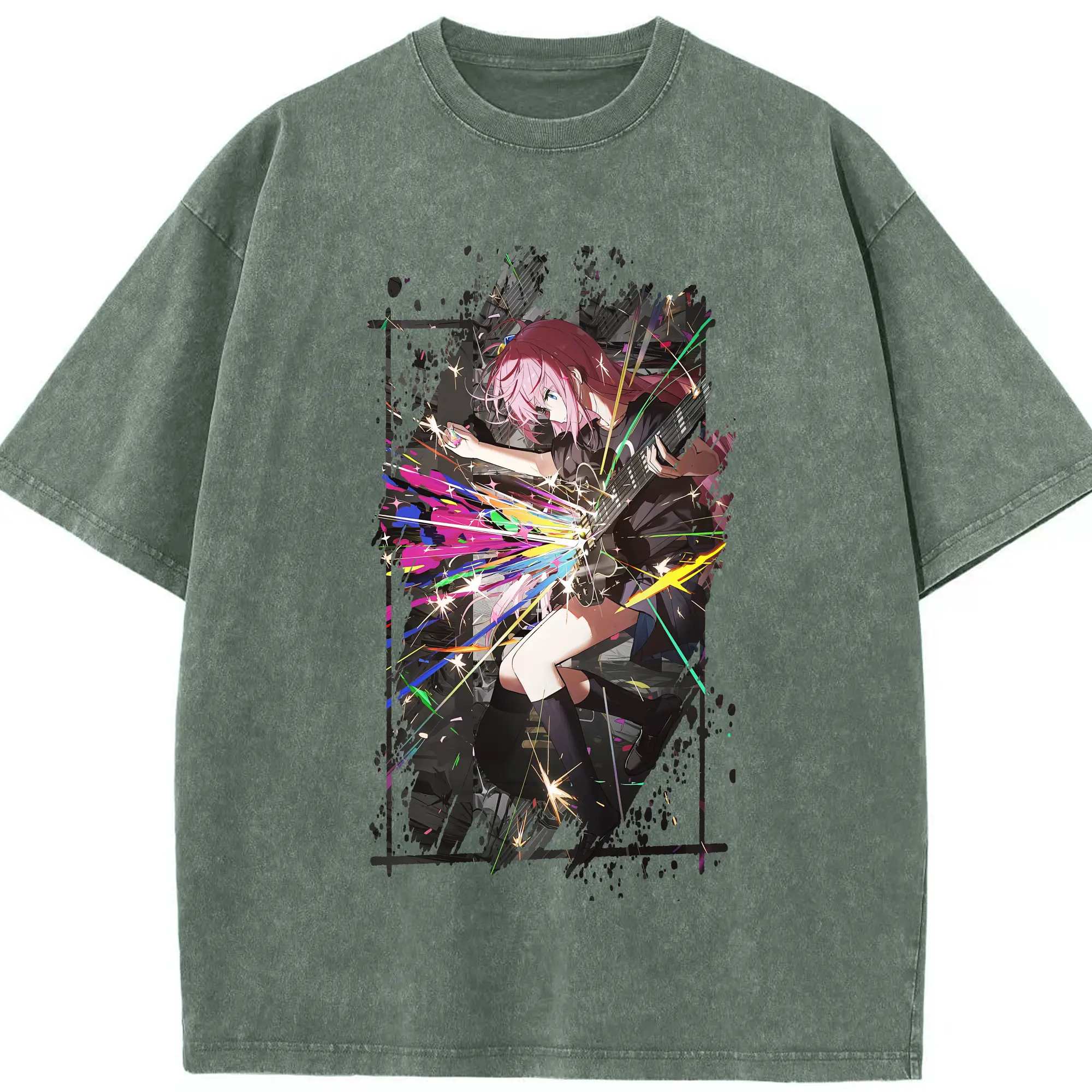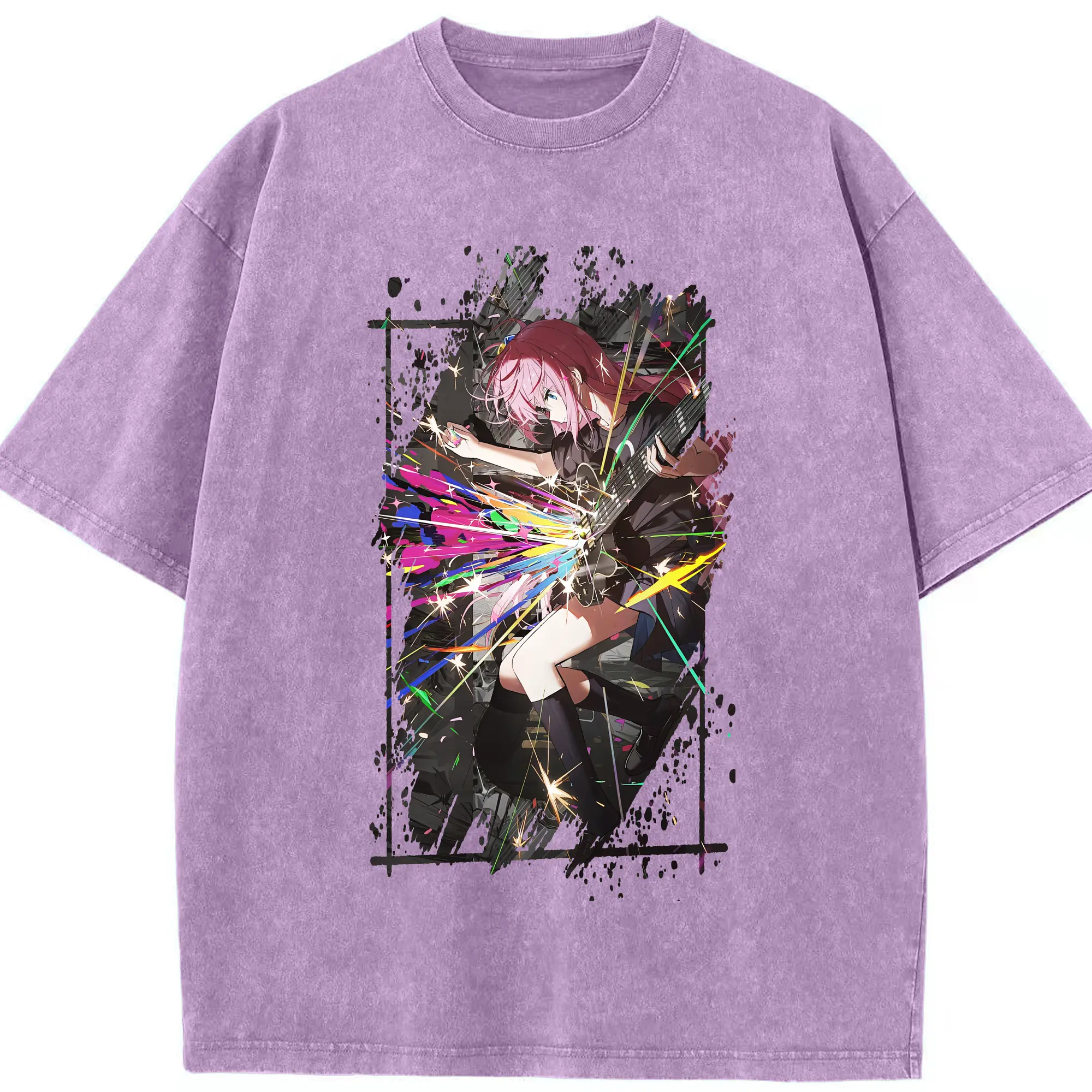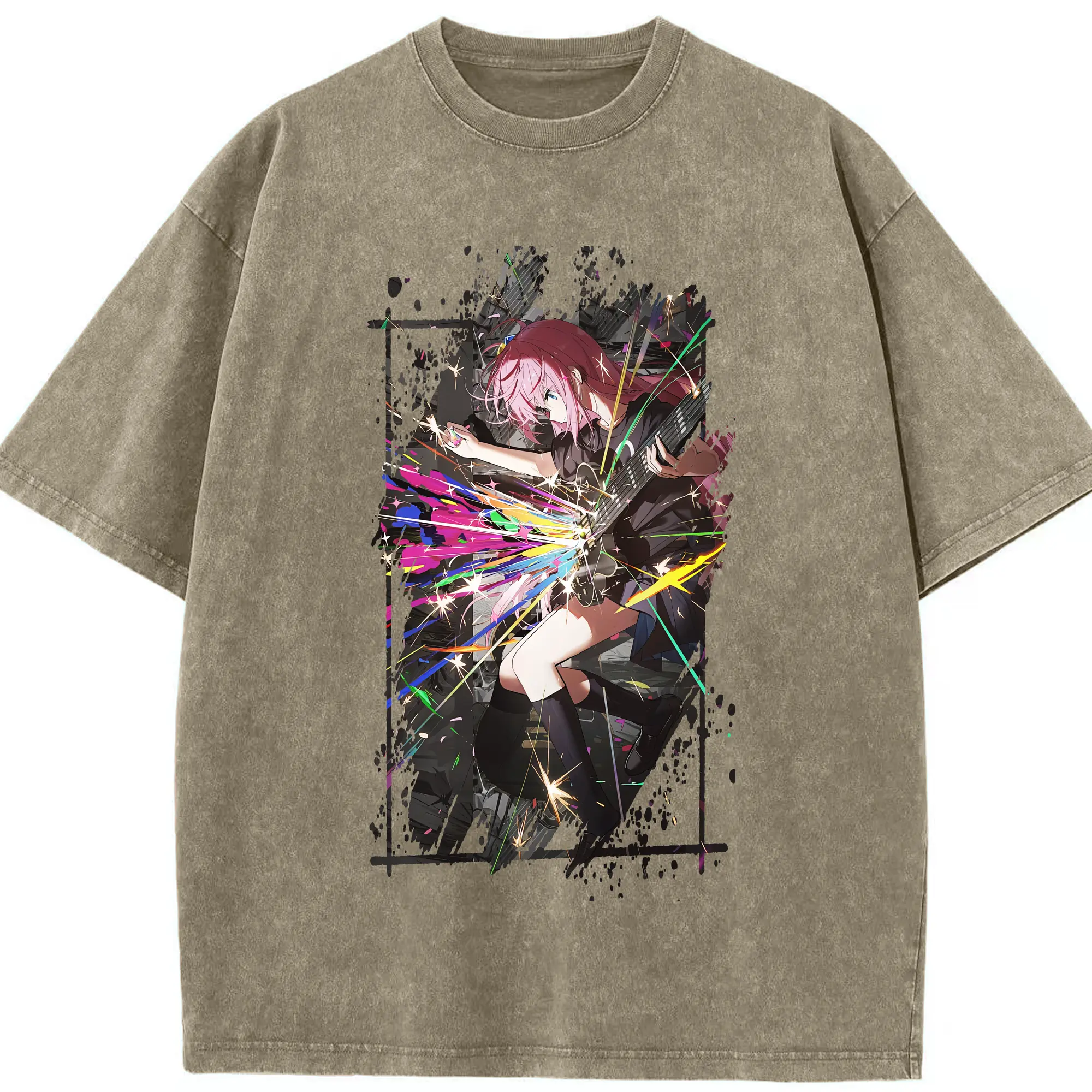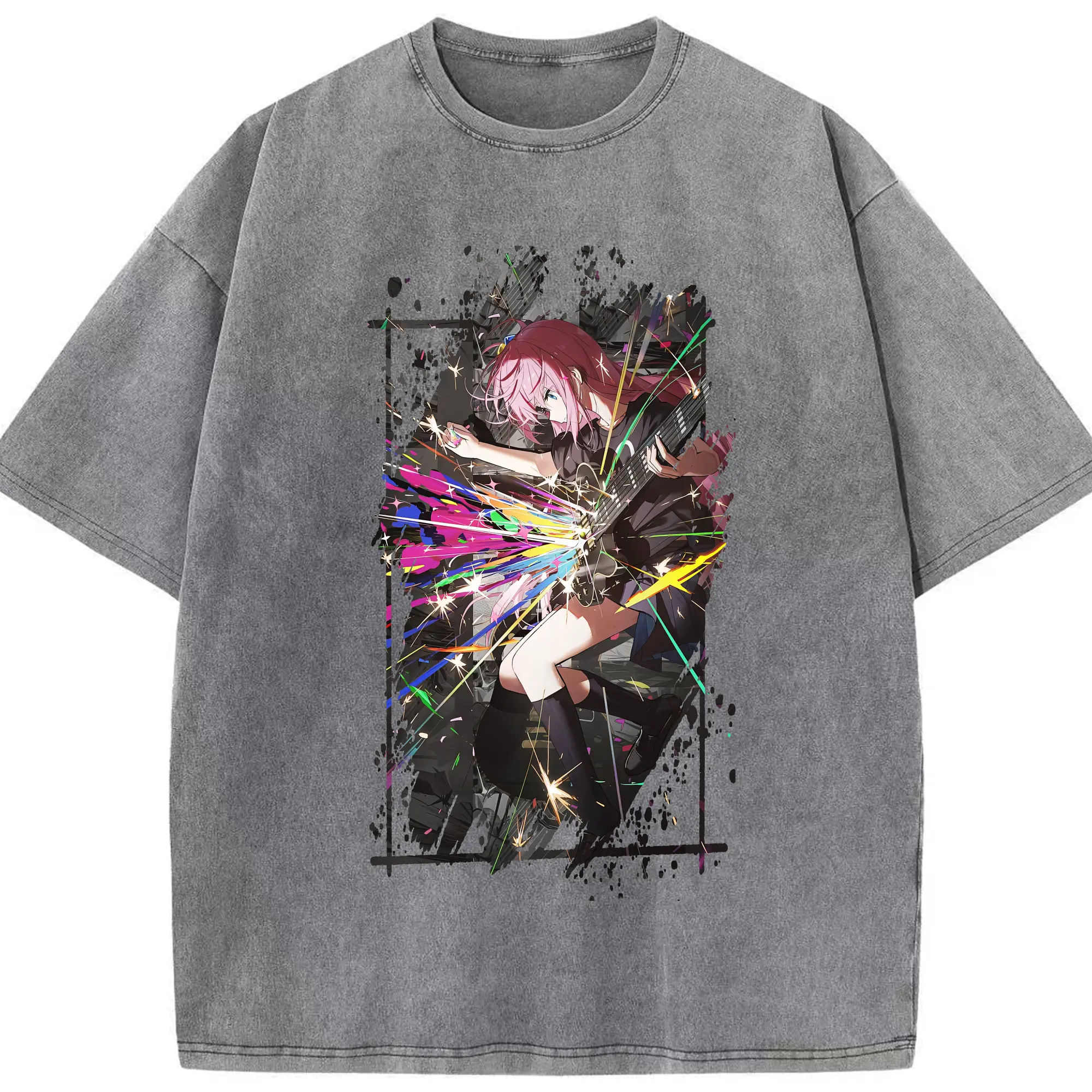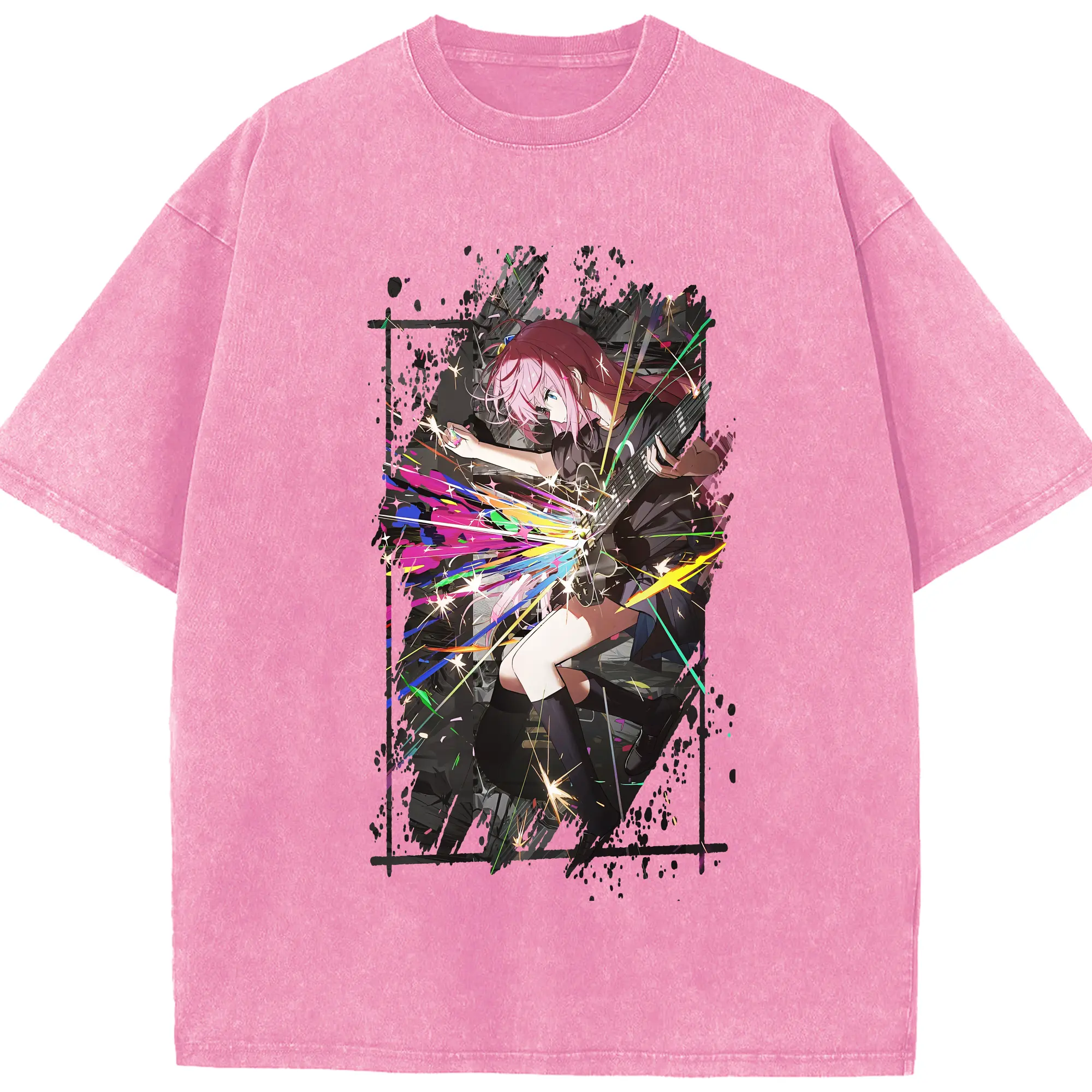 ぼっちざろっく! グッズ,後藤ひとり - 綿100% ヴィンテージ風 半袖Tシャツ ・ 背面プリント ・ 柔らか肌触り ・ 通気性 快適 ・ スポーツ カジュアル 外出用