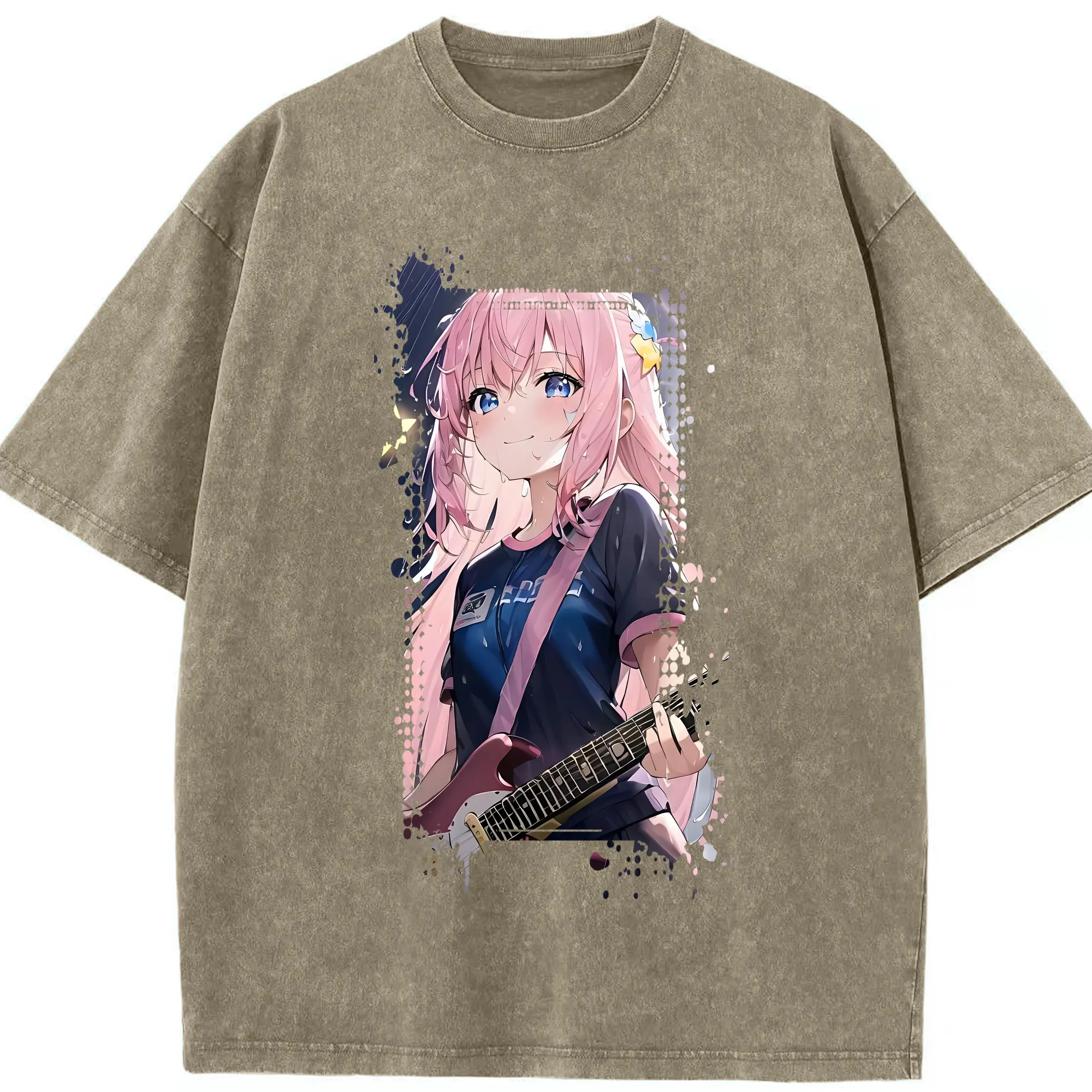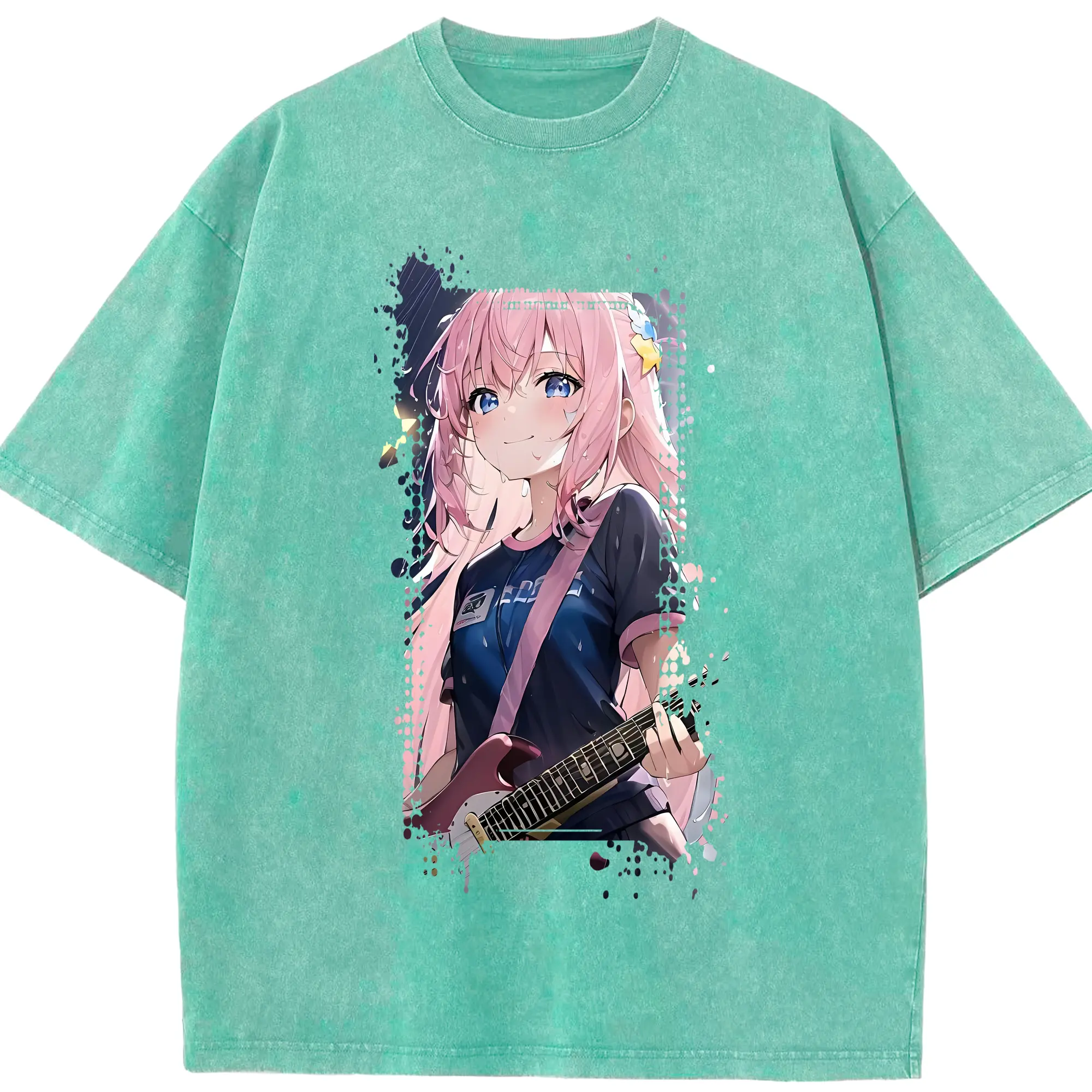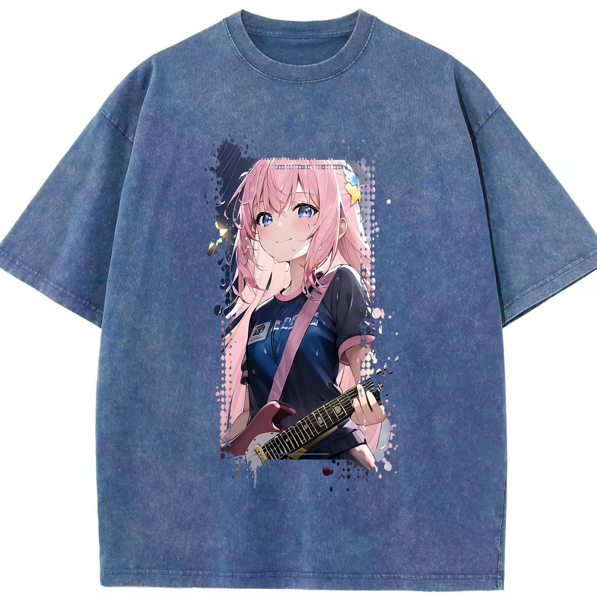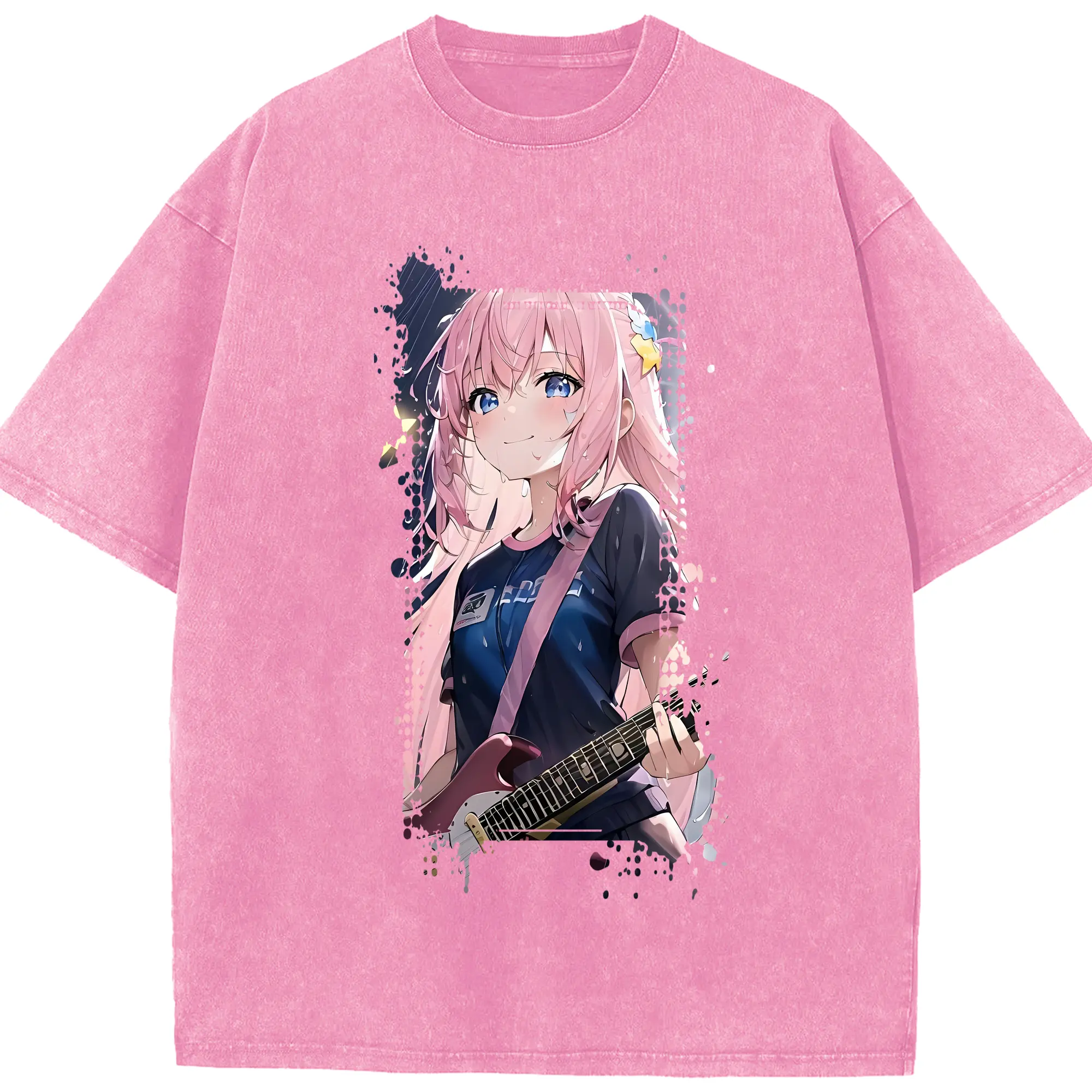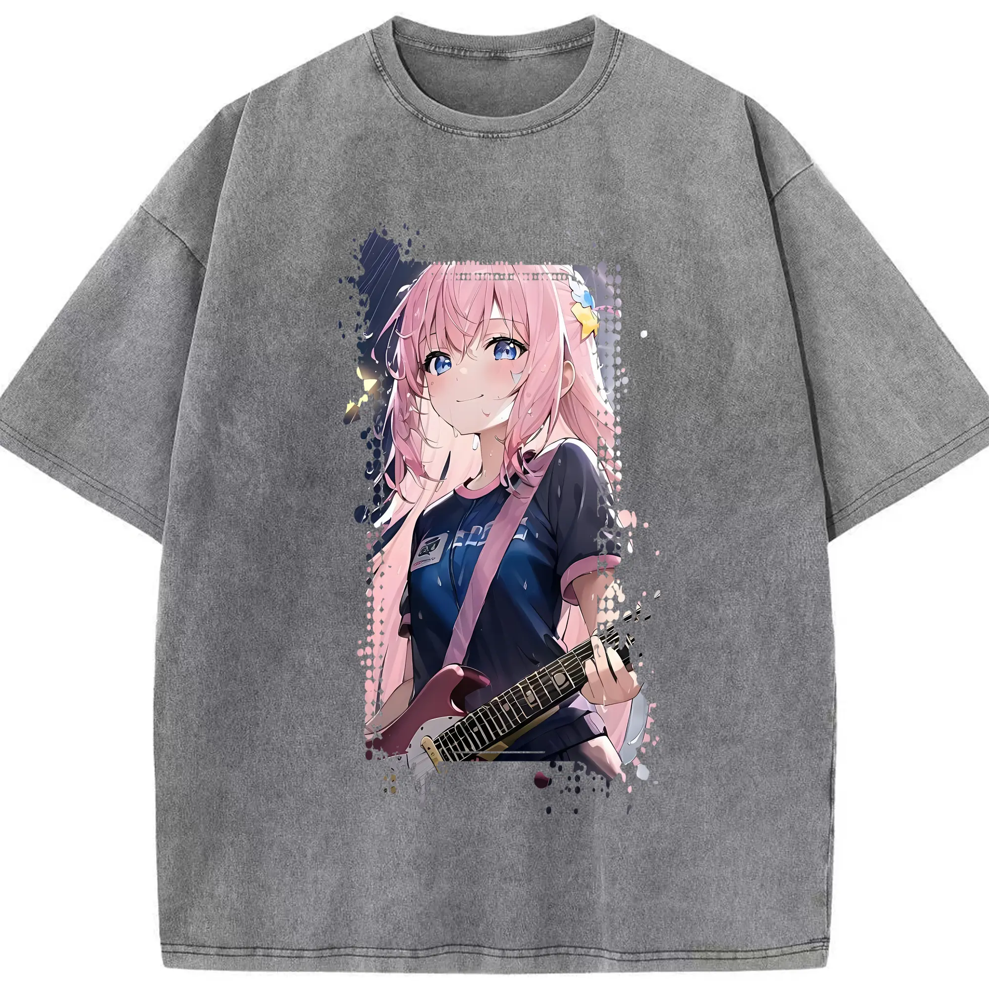 ぼっちざろっく! グッズ,後藤ひとり - 綿100% ヴィンテージ風 半袖Tシャツ ・ 背面プリント ・ 柔らか肌触り ・ 通気性 快適 ・ スポーツ カジュアル 外出用
