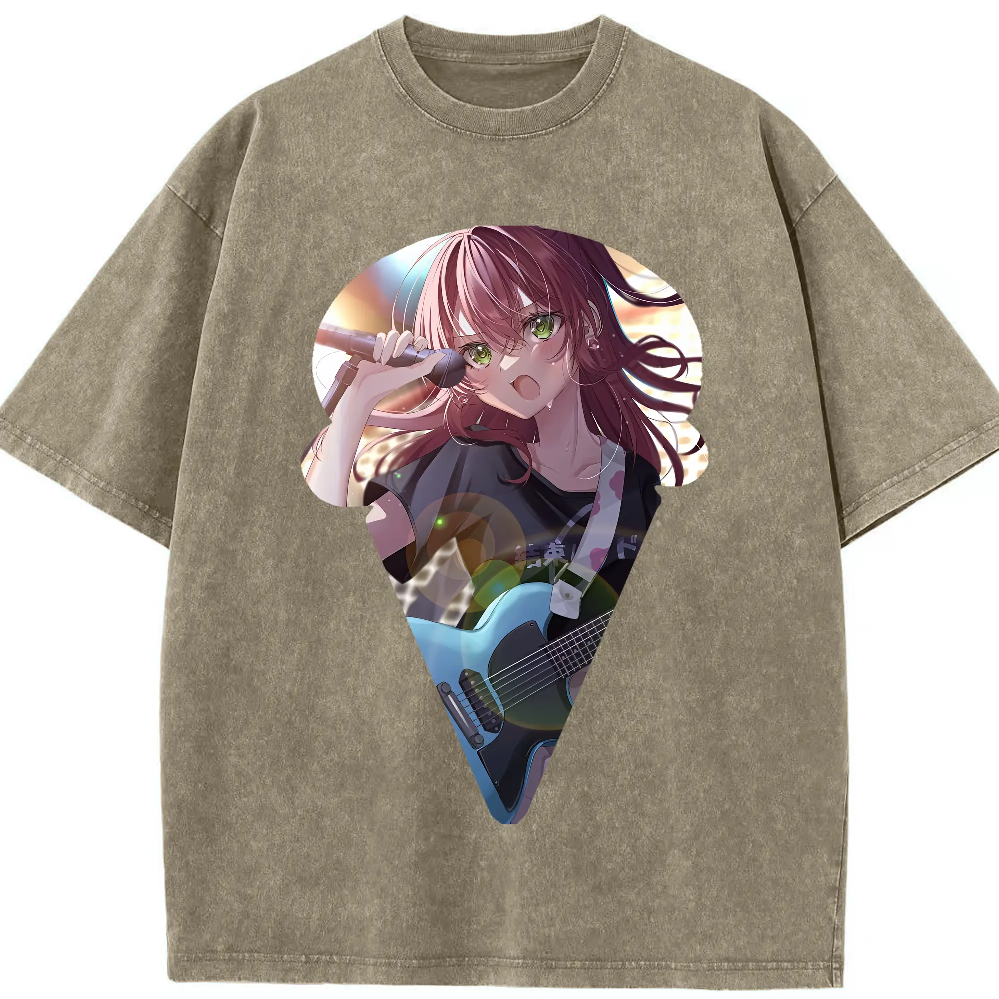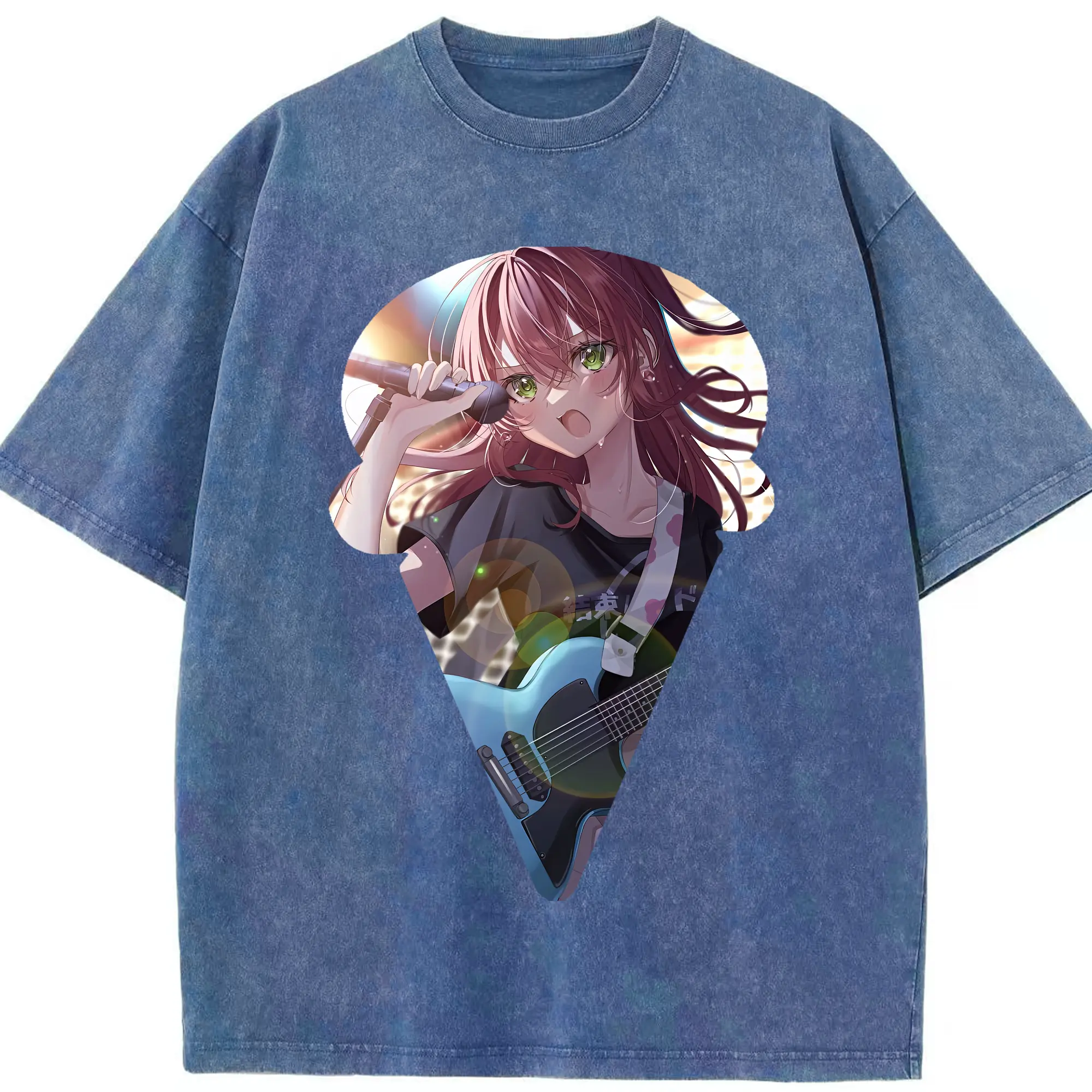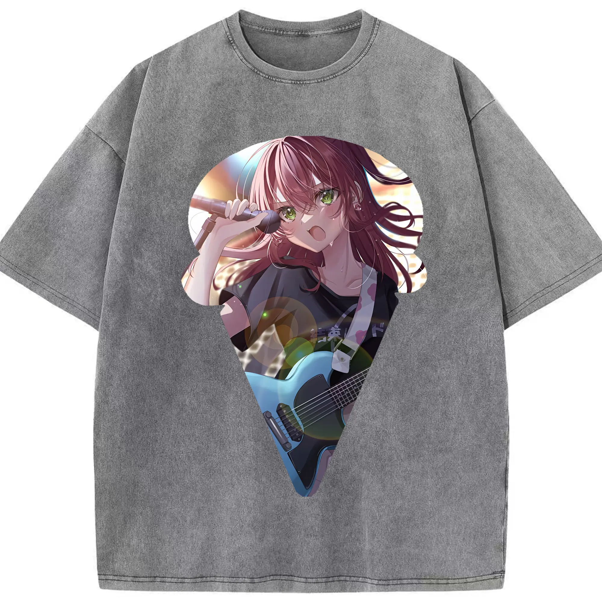 ぼっちざろっく! グッズ,後藤ひとり - 綿100% ヴィンテージ風 半袖Tシャツ ・ 背面プリント ・ 柔らか肌触り ・ 通気性 快適 ・ スポーツ カジュアル 外出用