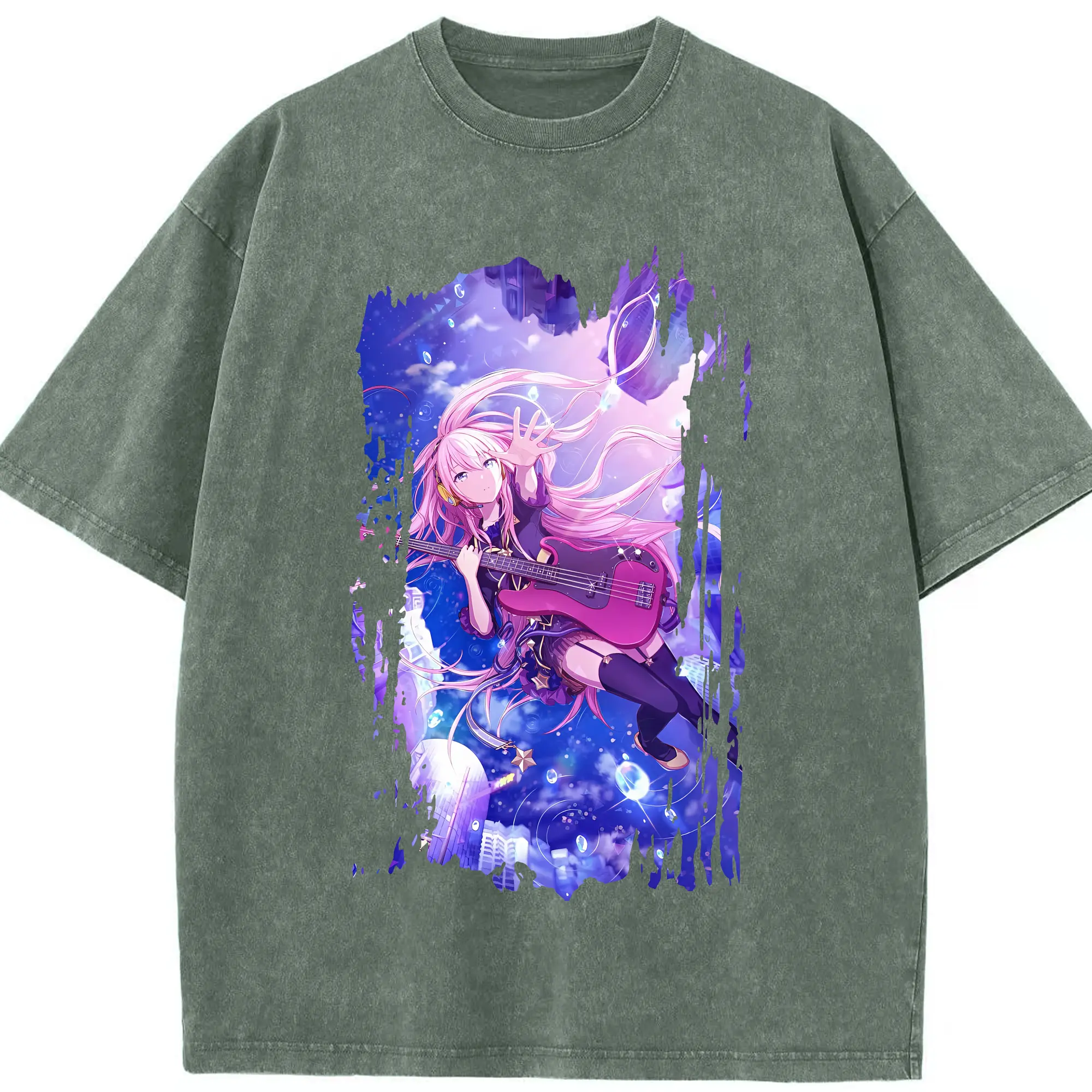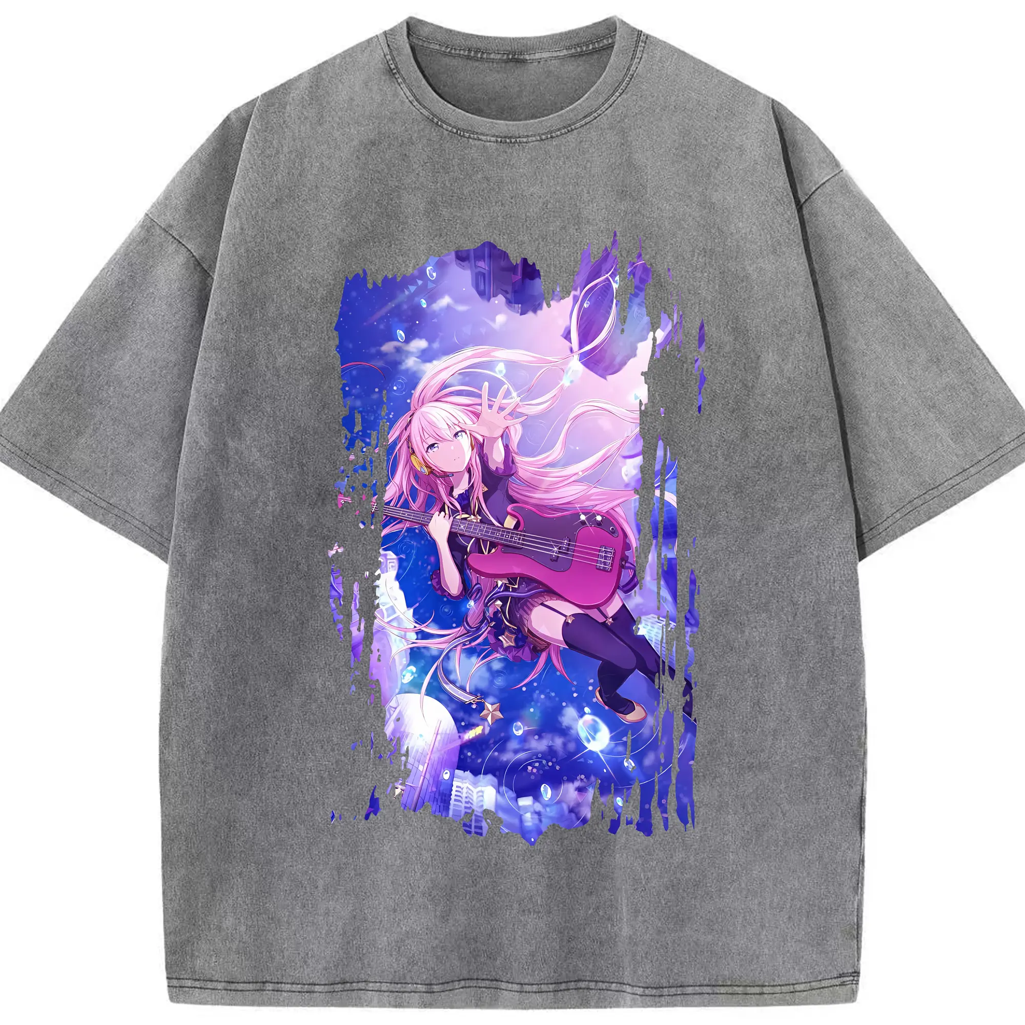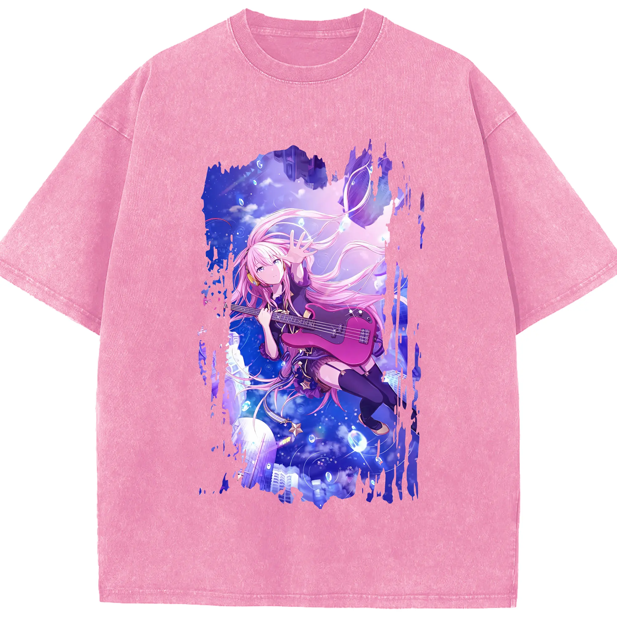 ぼっちざろっく! グッズ,後藤ひとり - 綿100% ヴィンテージ風 半袖Tシャツ ・ 背面プリント ・ 柔らか肌触り ・ 通気性 快適 ・ スポーツ カジュアル 外出用