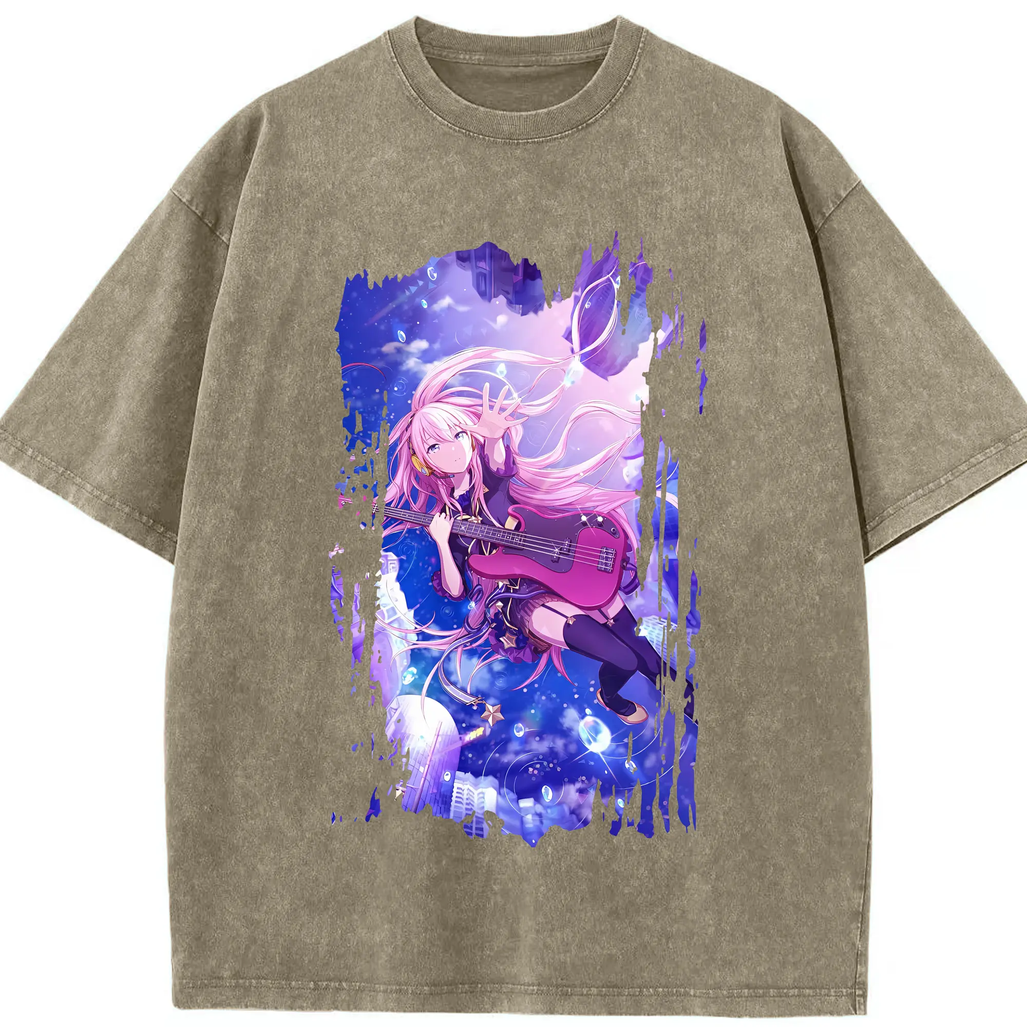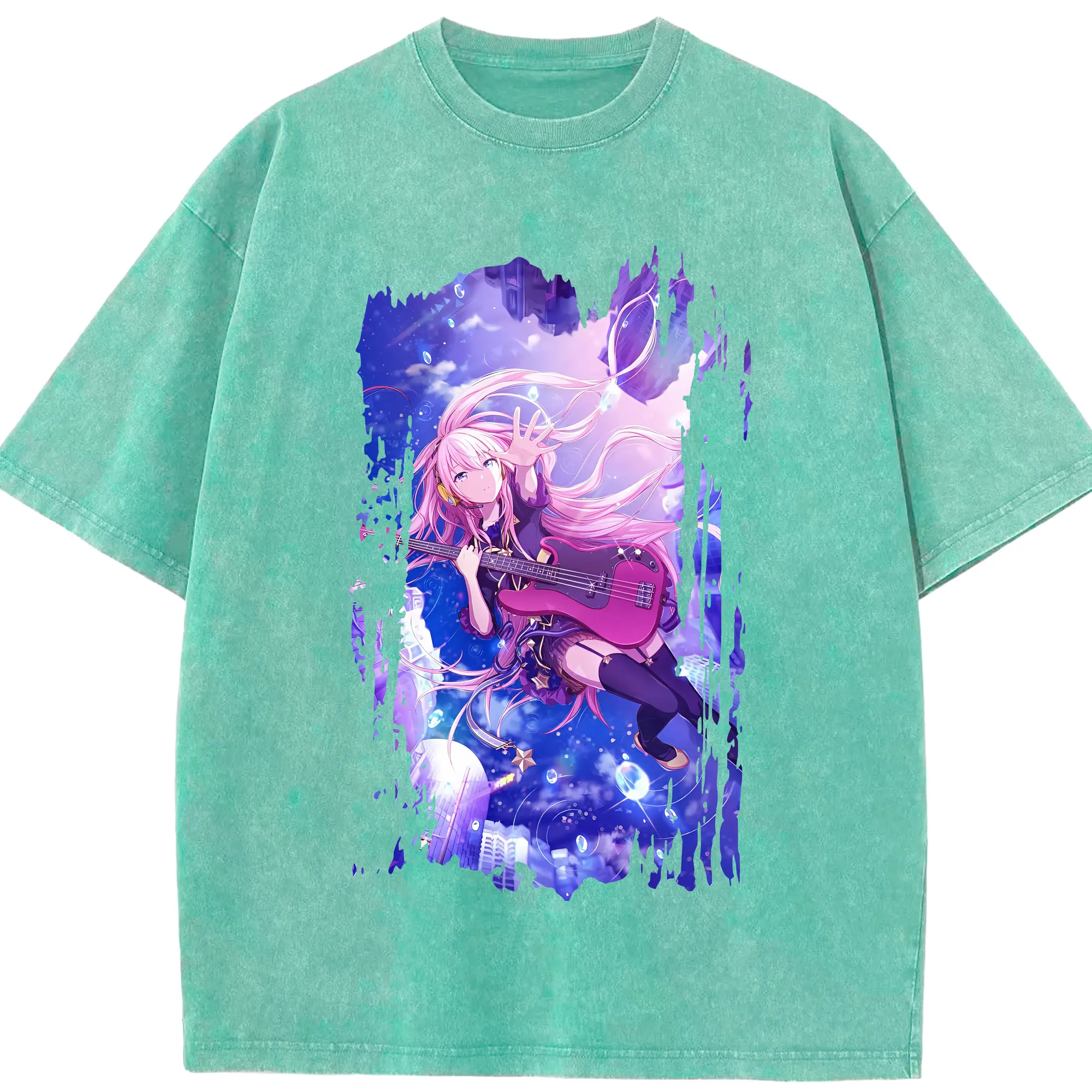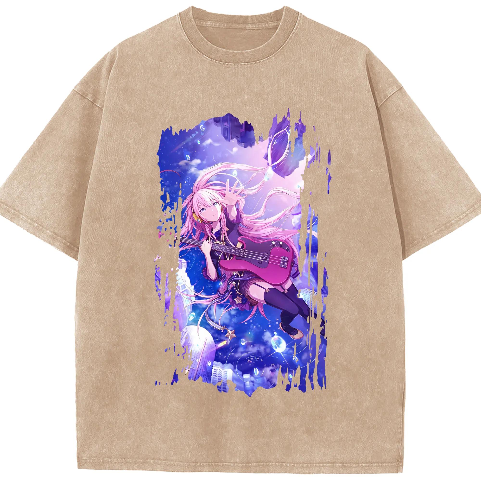 ぼっちざろっく! グッズ,後藤ひとり - 綿100% ヴィンテージ風 半袖Tシャツ ・ 背面プリント ・ 柔らか肌触り ・ 通気性 快適 ・ スポーツ カジュアル 外出用