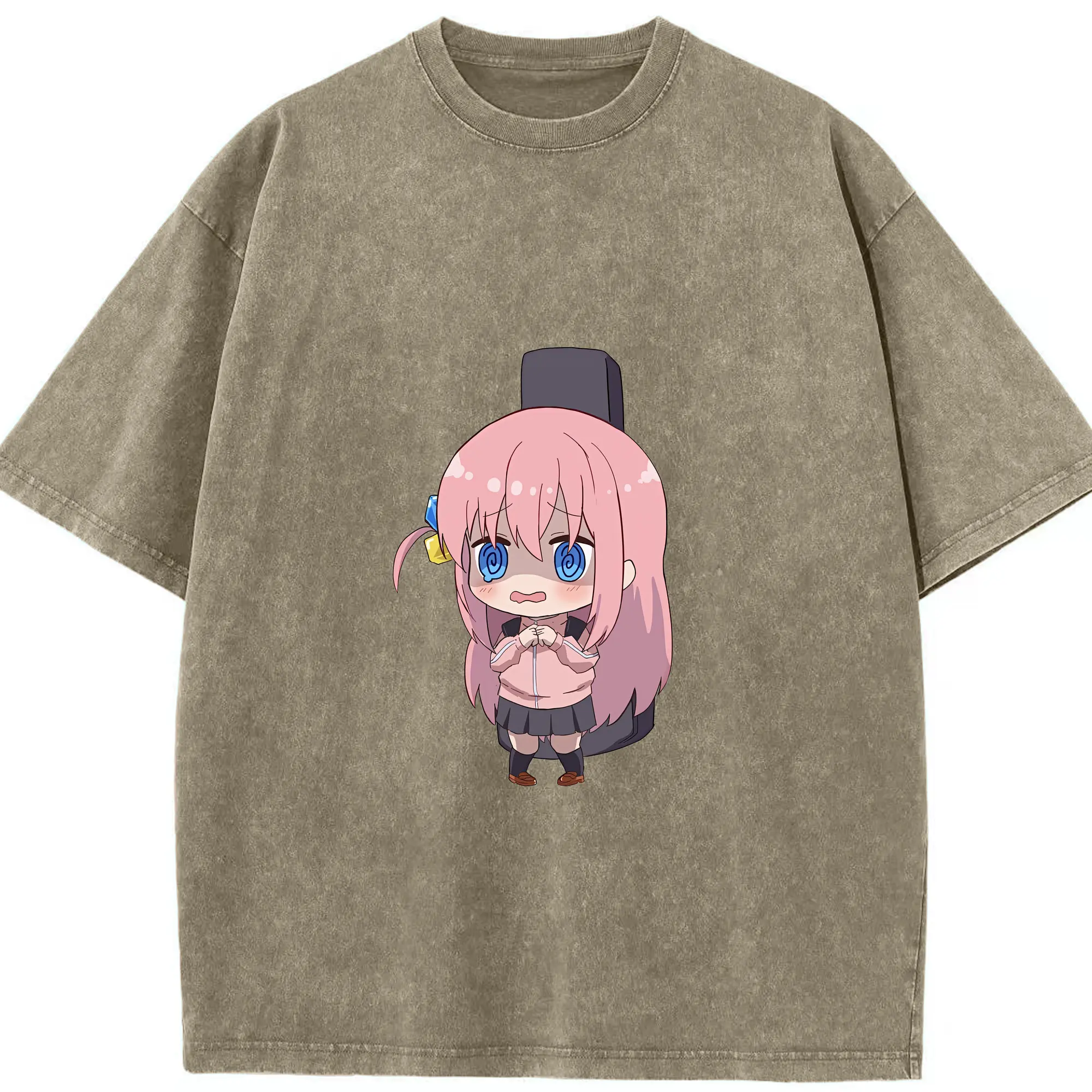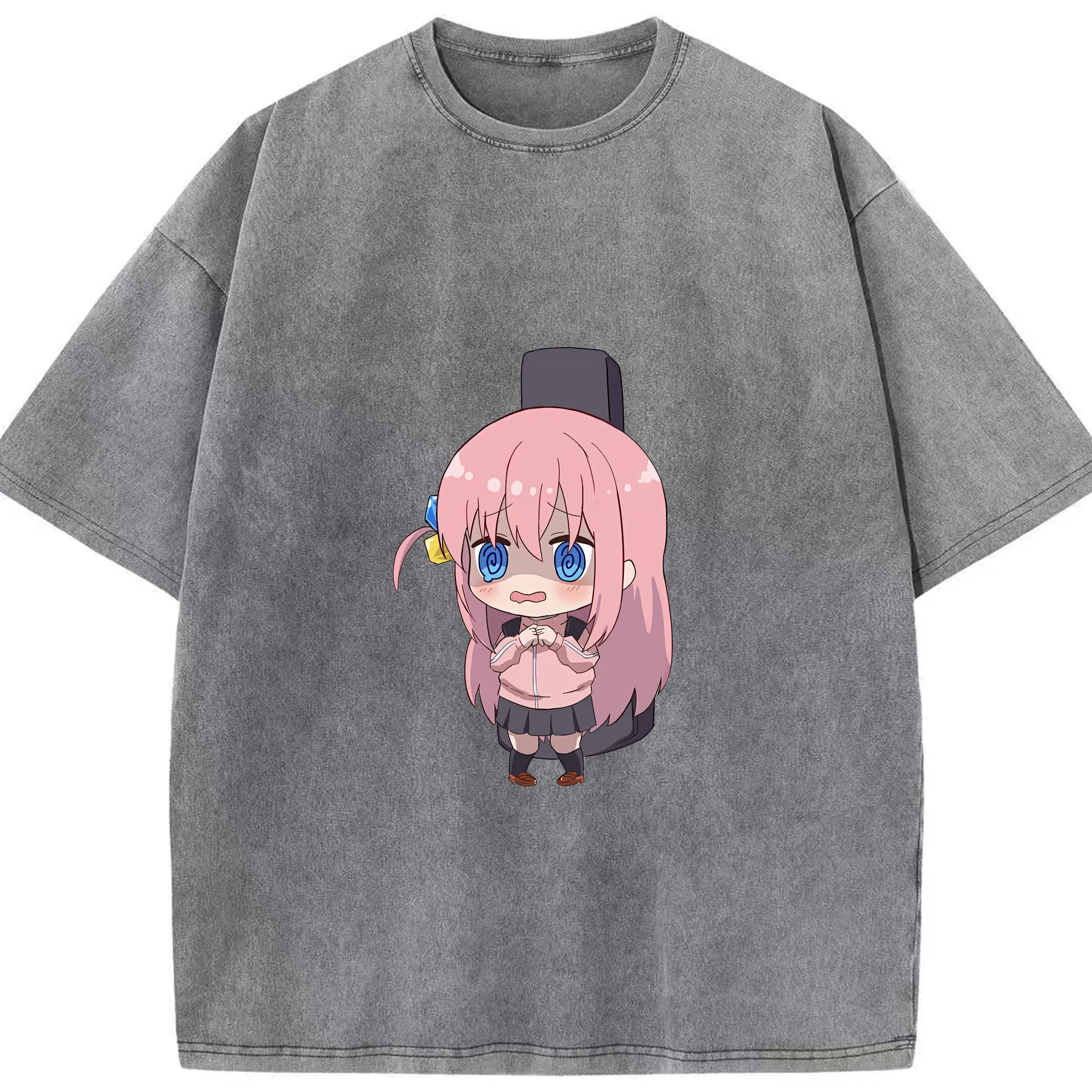 ぼっちざろっく! グッズ,後藤ひとり - 綿100% ヴィンテージ風 半袖Tシャツ ・ フロントプリント ・ 柔らか肌触り ・ 通気性 快適 ・ スポーツ カジュアル 外出用