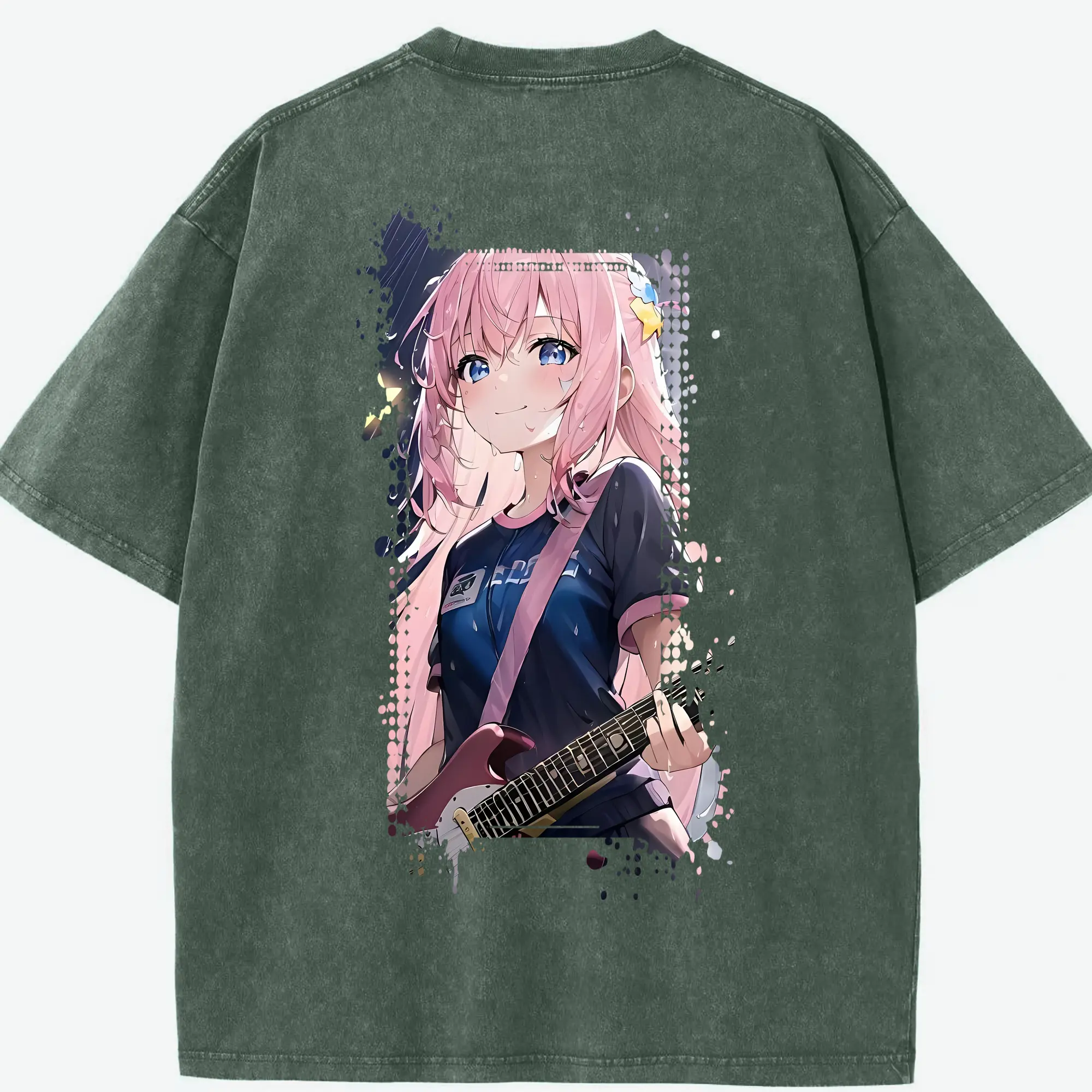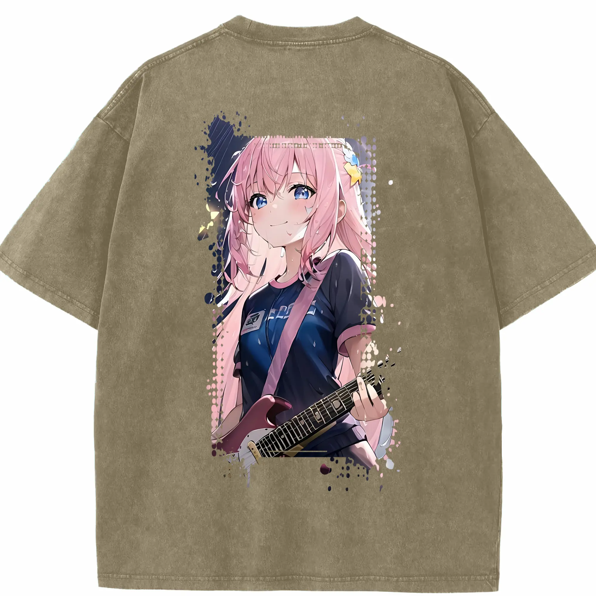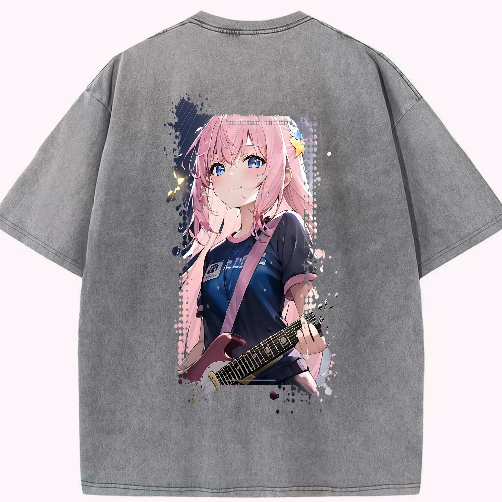 ぼっちざろっく! グッズ,後藤ひとり - 綿100% ヴィンテージ風 半袖Tシャツ ・ フロントプリント ・ 柔らか肌触り ・ 通気性 快適 ・ スポーツ カジュアル 外出用
