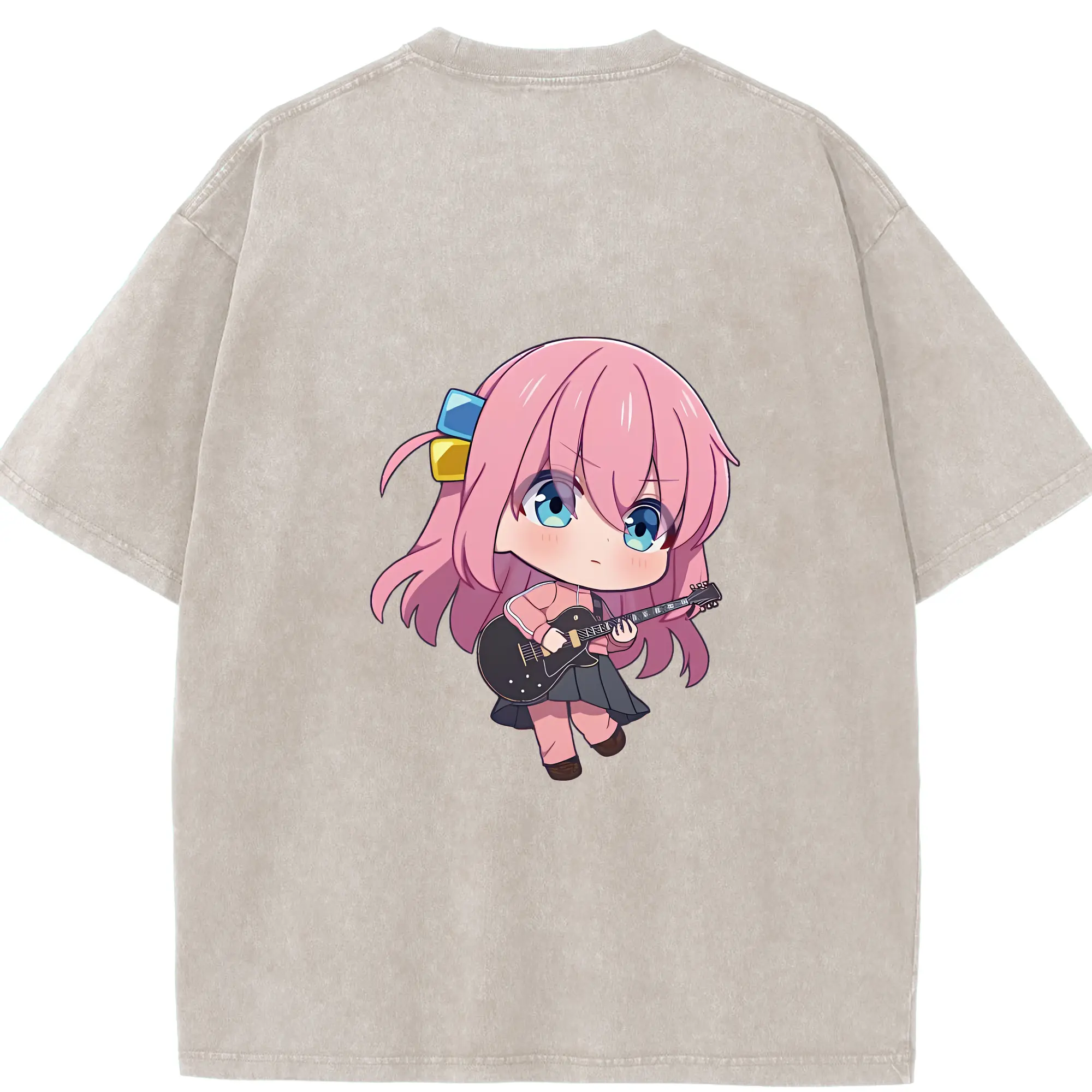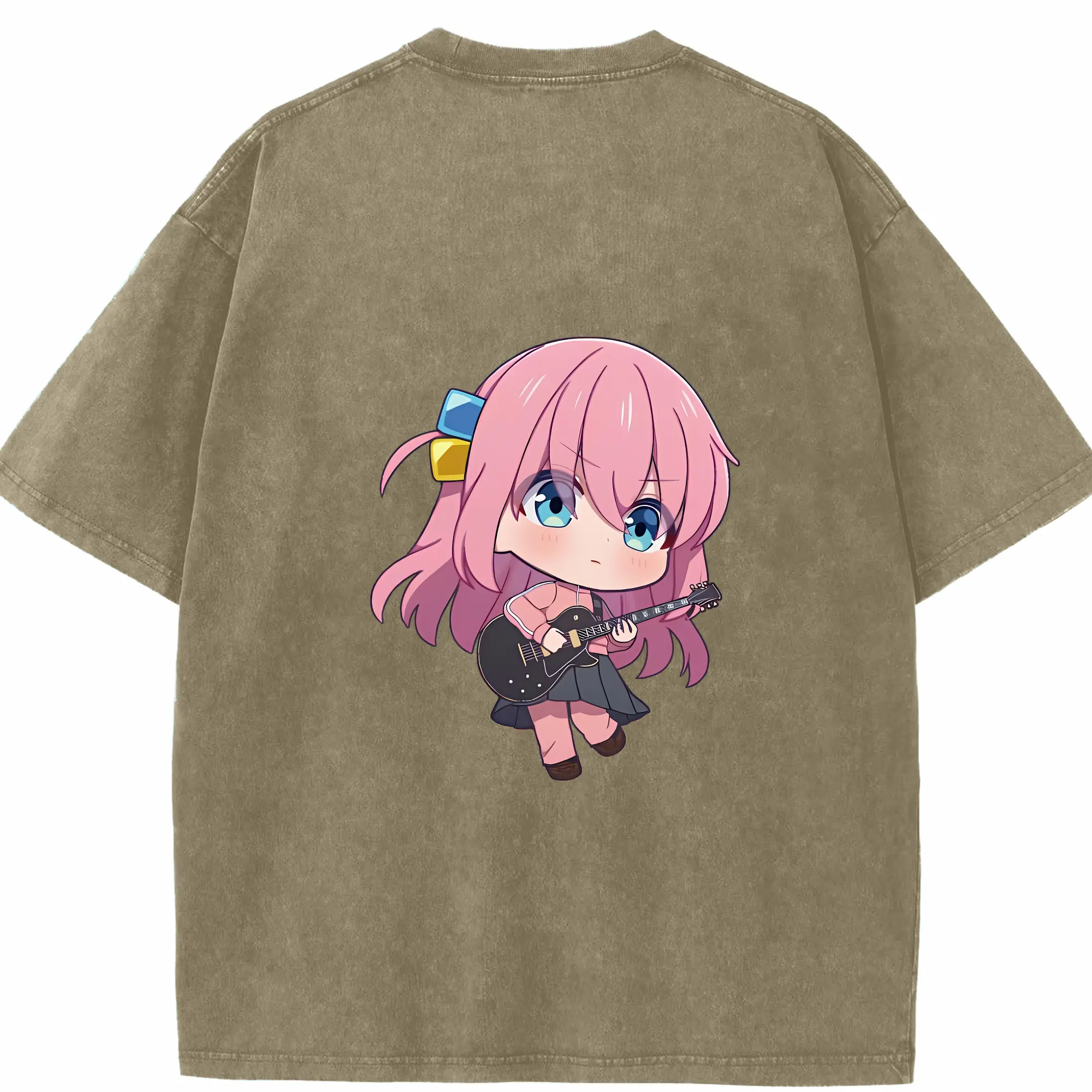 ぼっちざろっく! グッズ,後藤ひとり - 綿100% ヴィンテージ風 半袖Tシャツ ・ フロントプリント ・ 柔らか肌触り ・ 通気性 快適 ・ スポーツ カジュアル 外出用
