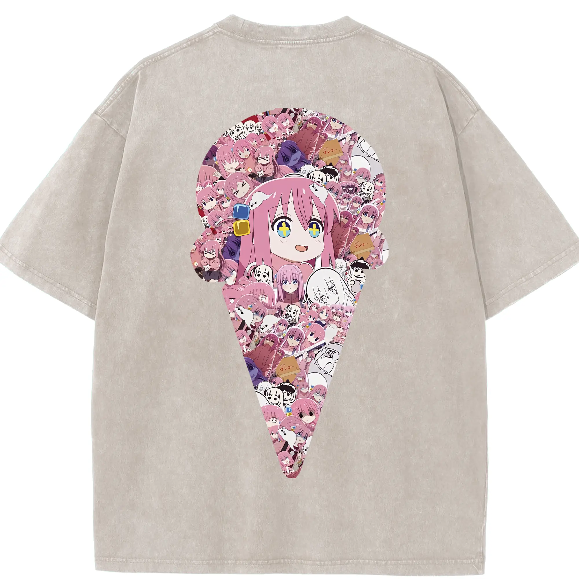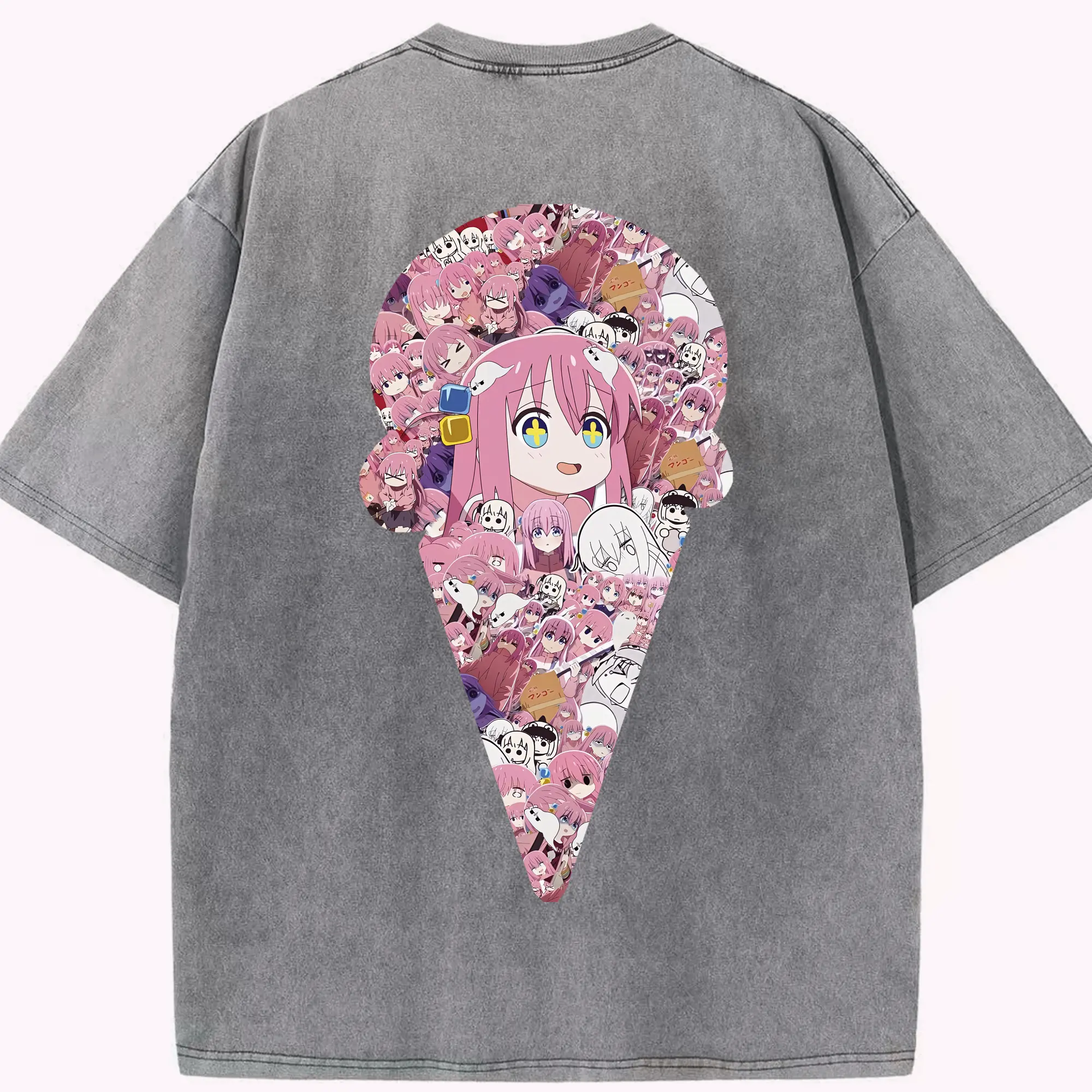 ぼっちざろっく! グッズ,後藤ひとり - 綿100% ヴィンテージ風 半袖Tシャツ ・ フロントプリント ・ 柔らか肌触り ・ 通気性 快適 ・ スポーツ カジュアル 外出用