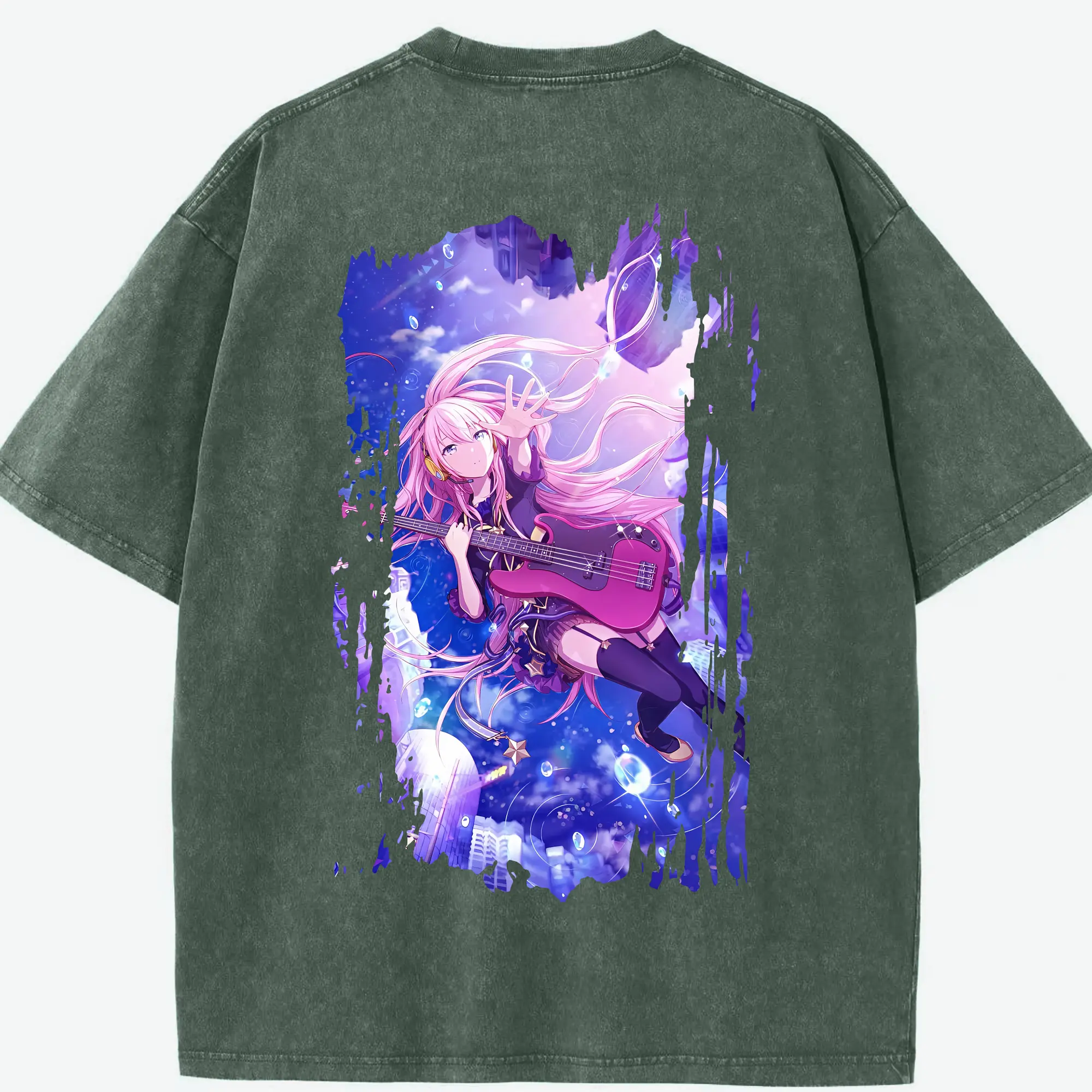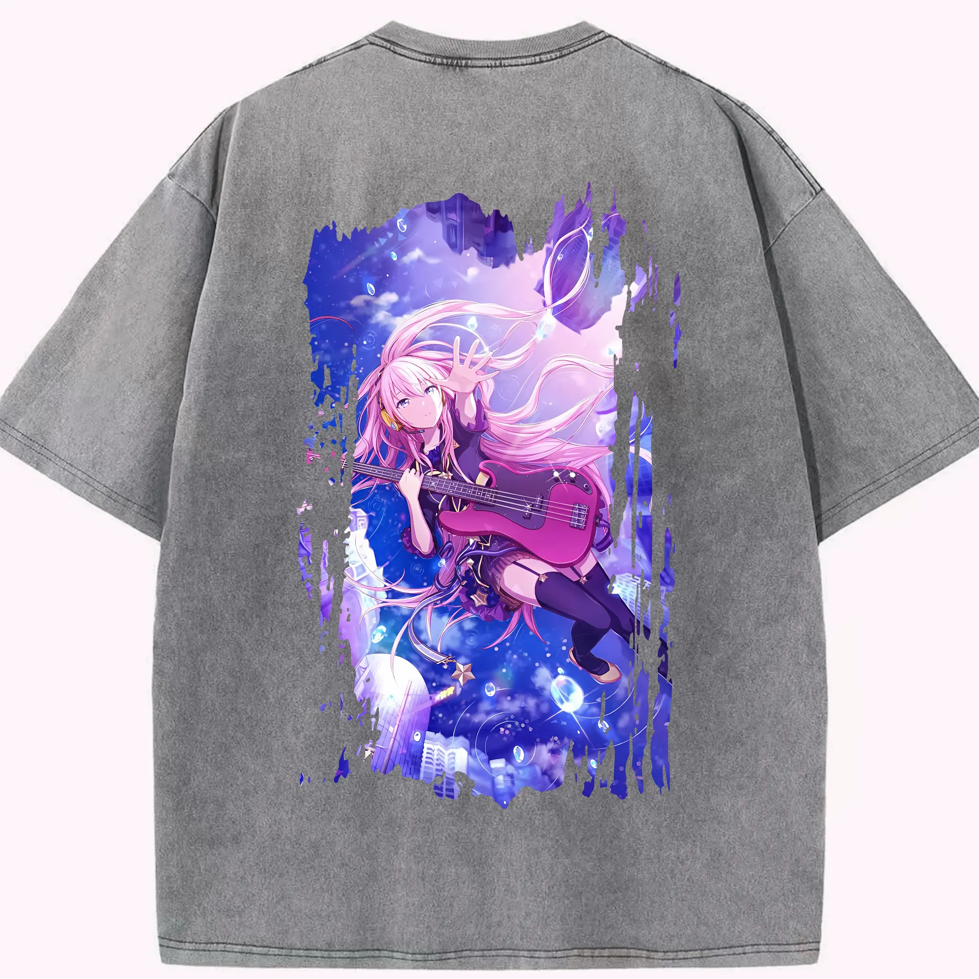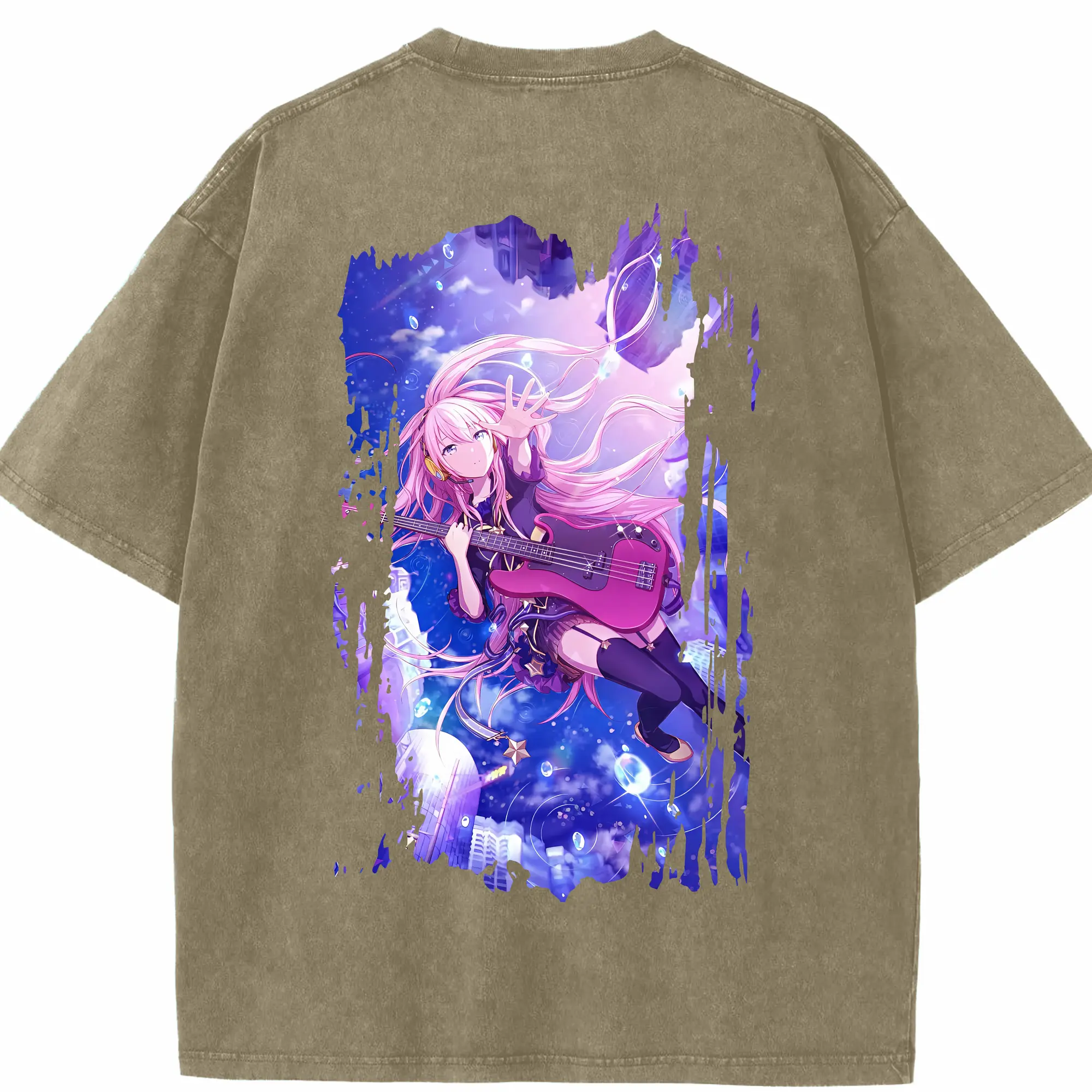 ぼっちざろっく! グッズ,後藤ひとり - 綿100% ヴィンテージ風 半袖Tシャツ ・ フロントプリント ・ 柔らか肌触り ・ 通気性 快適 ・ スポーツ カジュアル 外出用