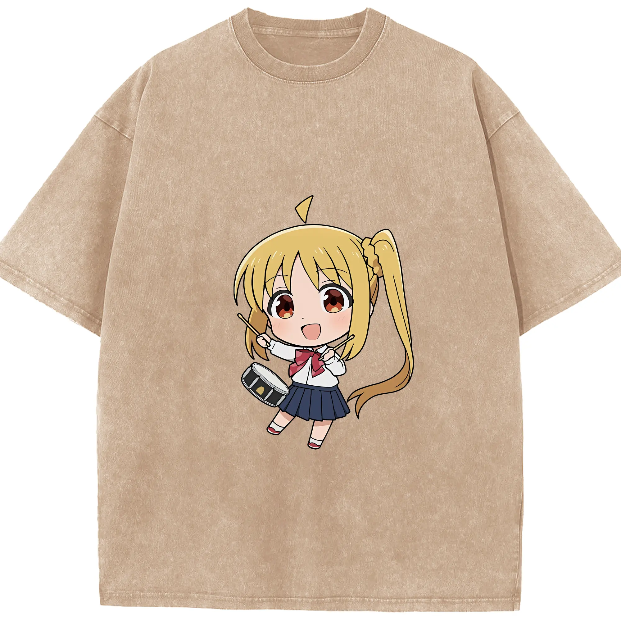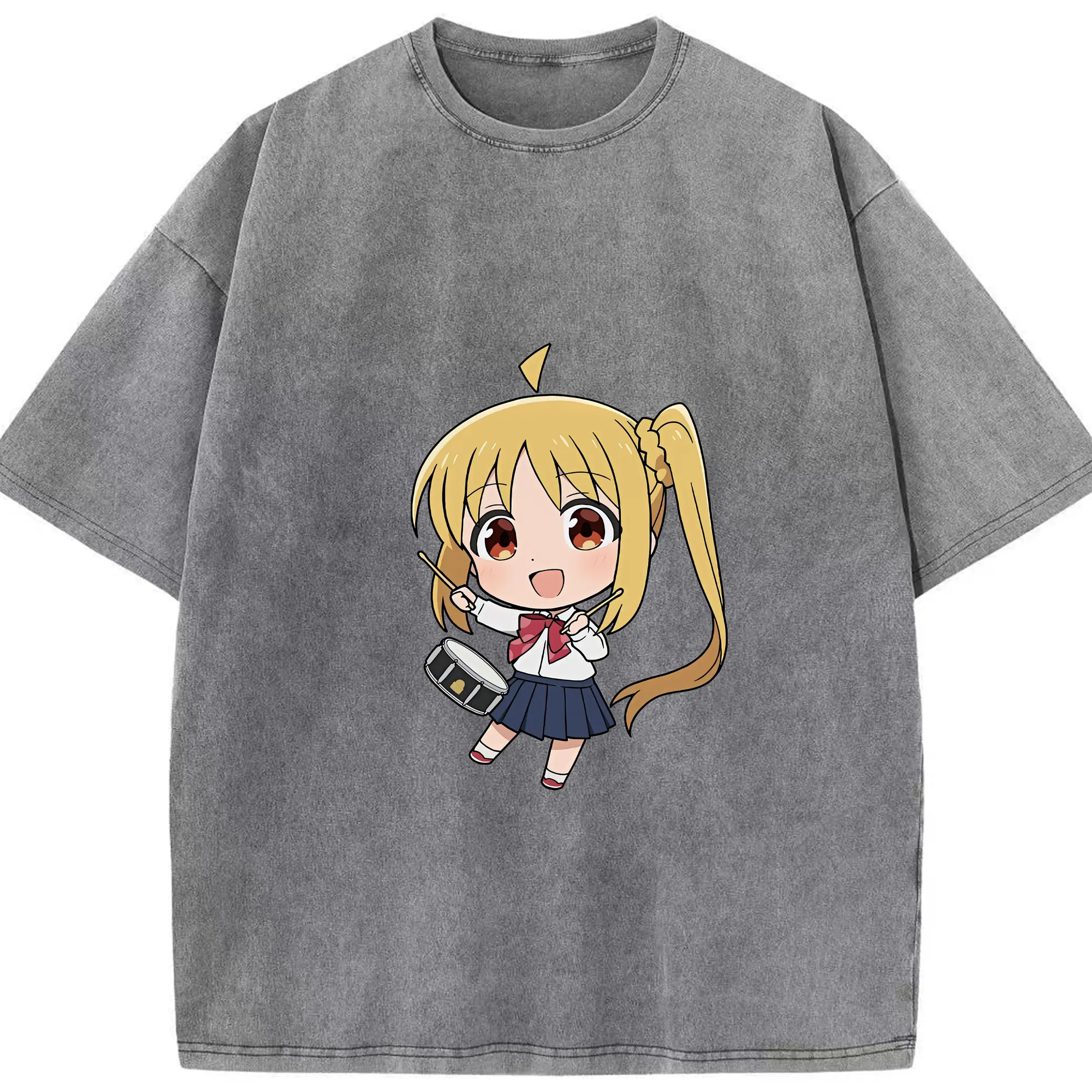 ぼっちざろっく! グッズ,伊地知虹夏 - 綿100% ヴィンテージ風 半袖Tシャツ ・ 背面プリント ・ 柔らか肌触り ・ 通気性 快適 ・ スポーツ カジュアル 外出用