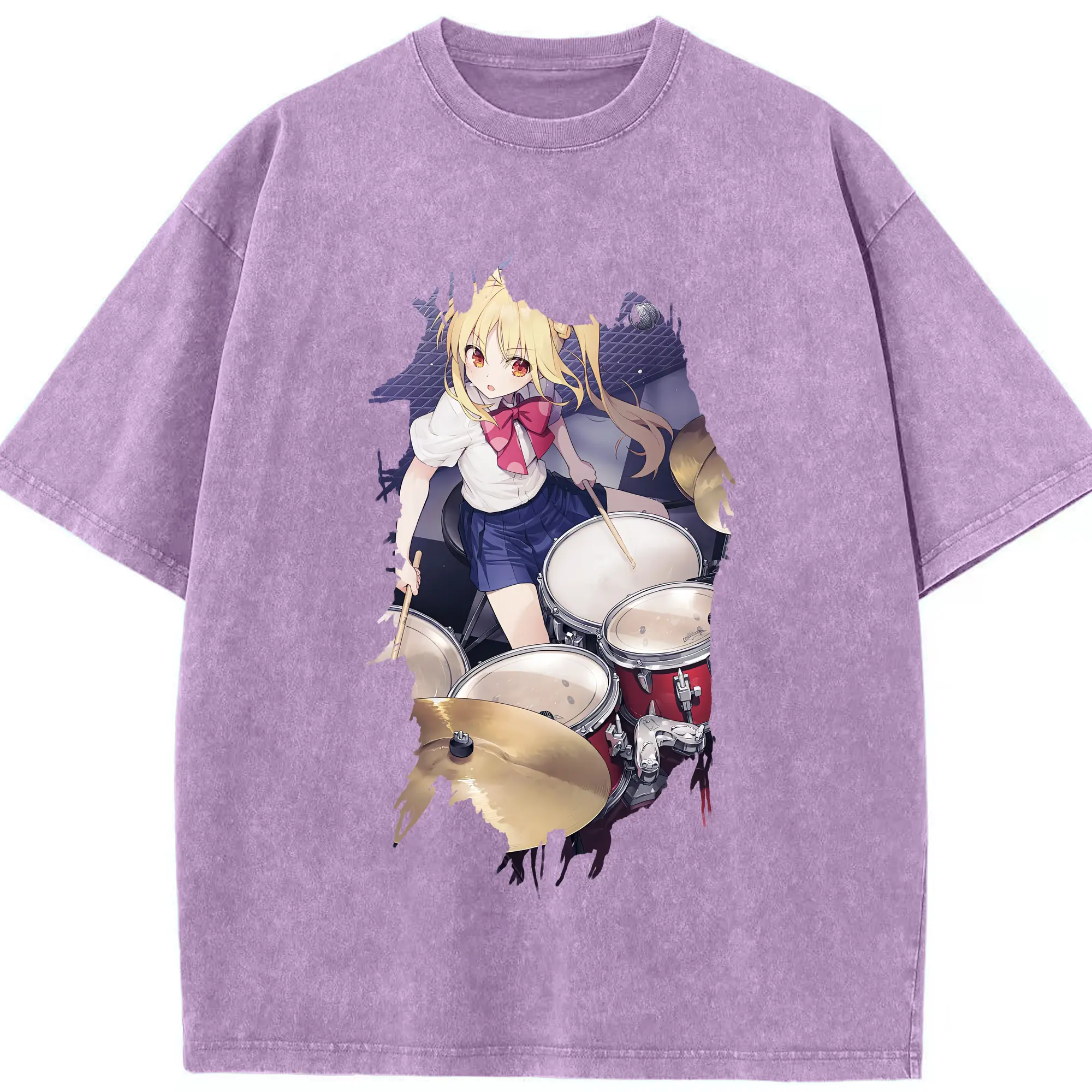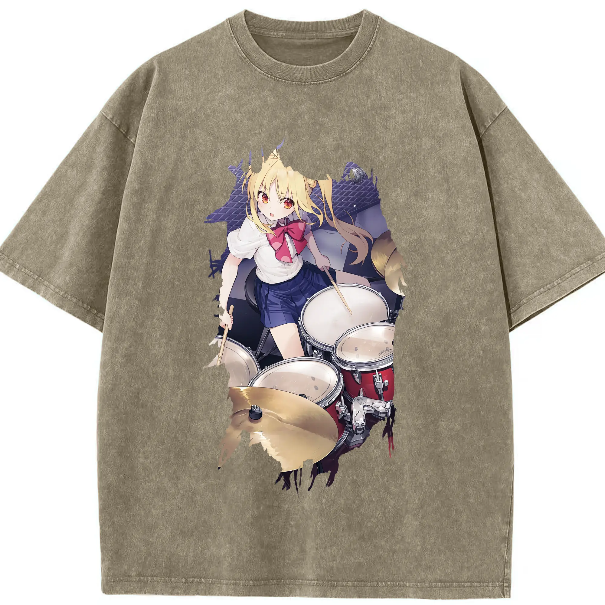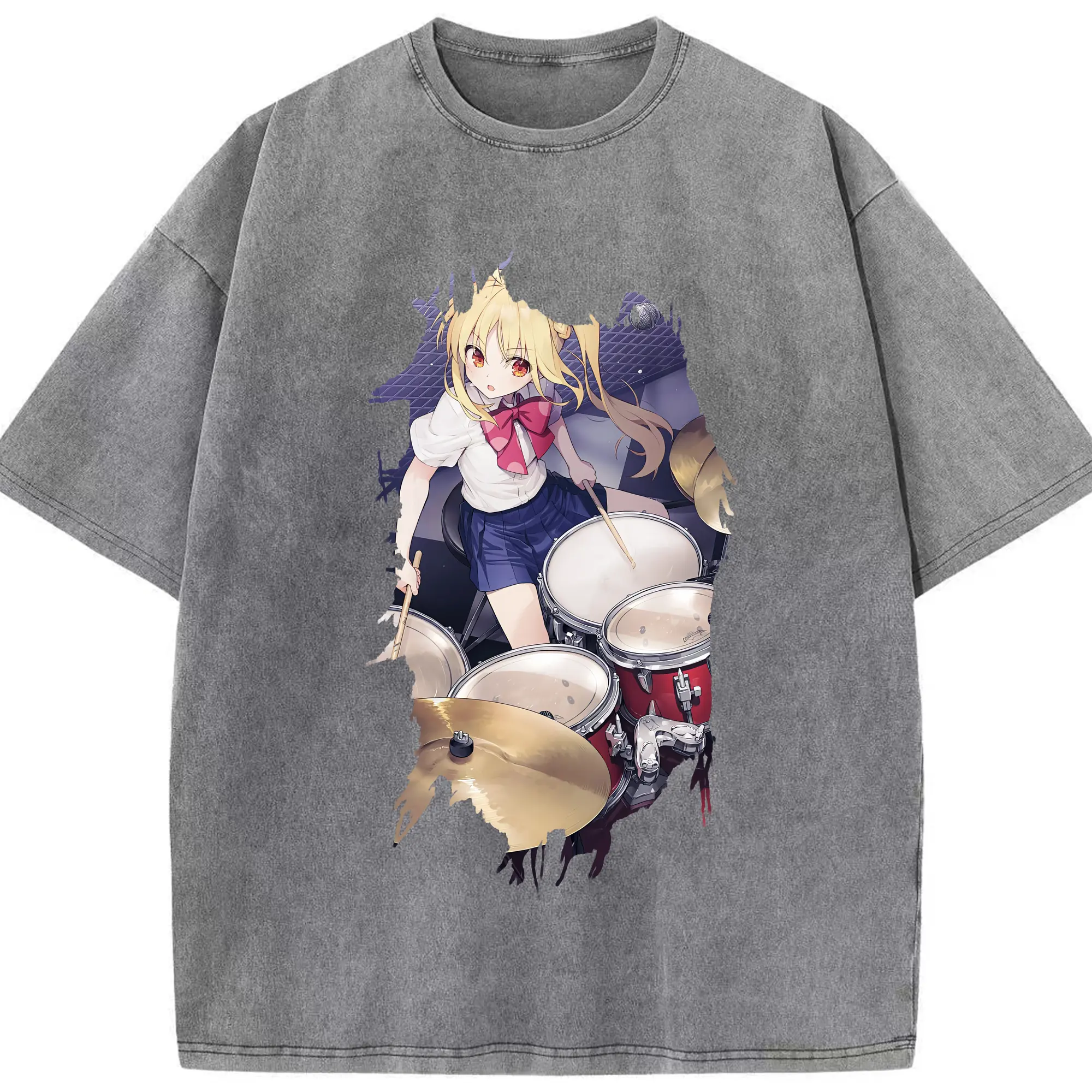 ぼっちざろっく! グッズ,伊地知虹夏 - 綿100% ヴィンテージ風 半袖Tシャツ ・ 背面プリント ・ 柔らか肌触り ・ 通気性 快適 ・ スポーツ カジュアル 外出用