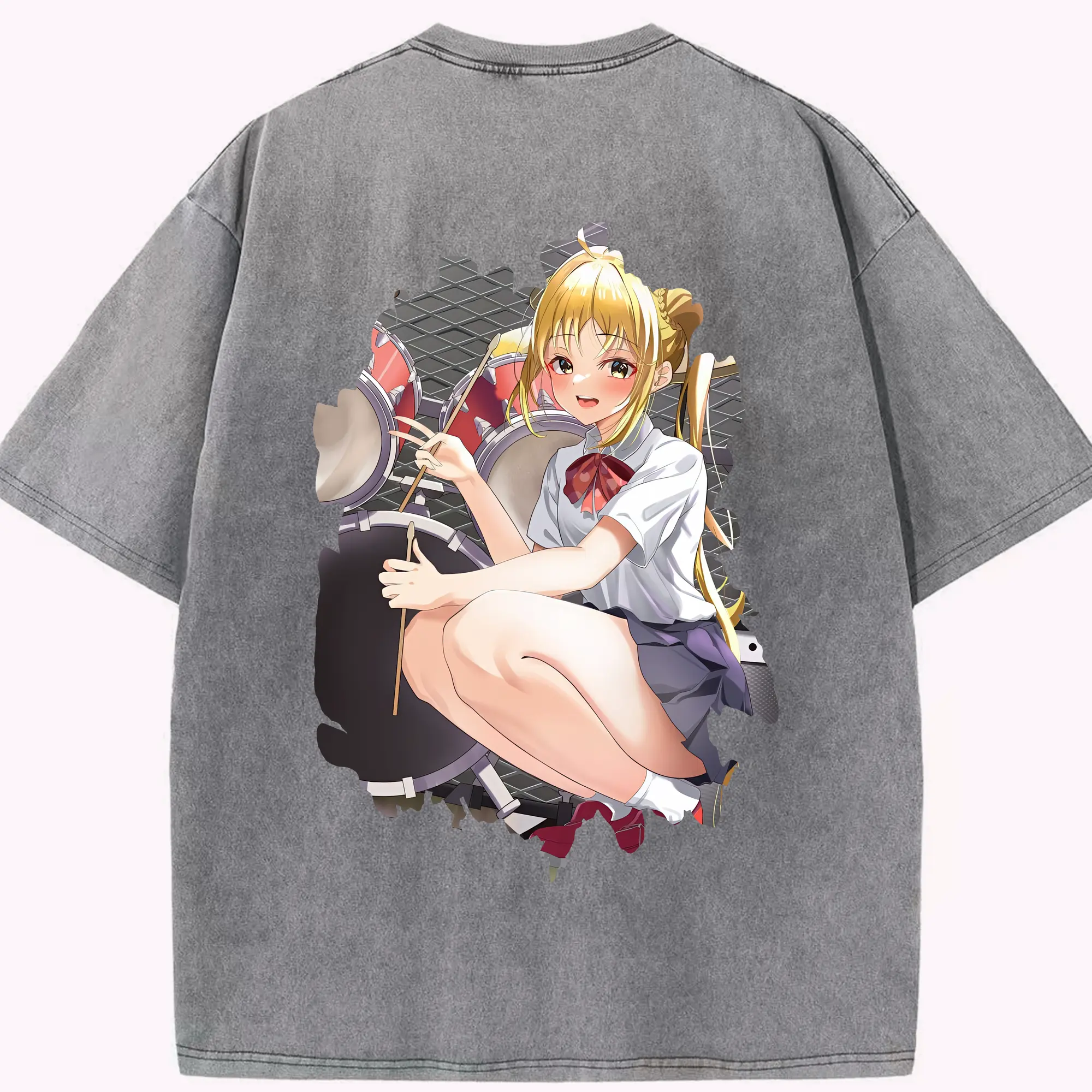 ぼっちざろっく! グッズ,伊地知虹夏 - 綿100% ヴィンテージ風 半袖Tシャツ ・ フロントプリント ・ 柔らか肌触り ・ 通気性 快適 ・ スポーツ カジュアル 外出用