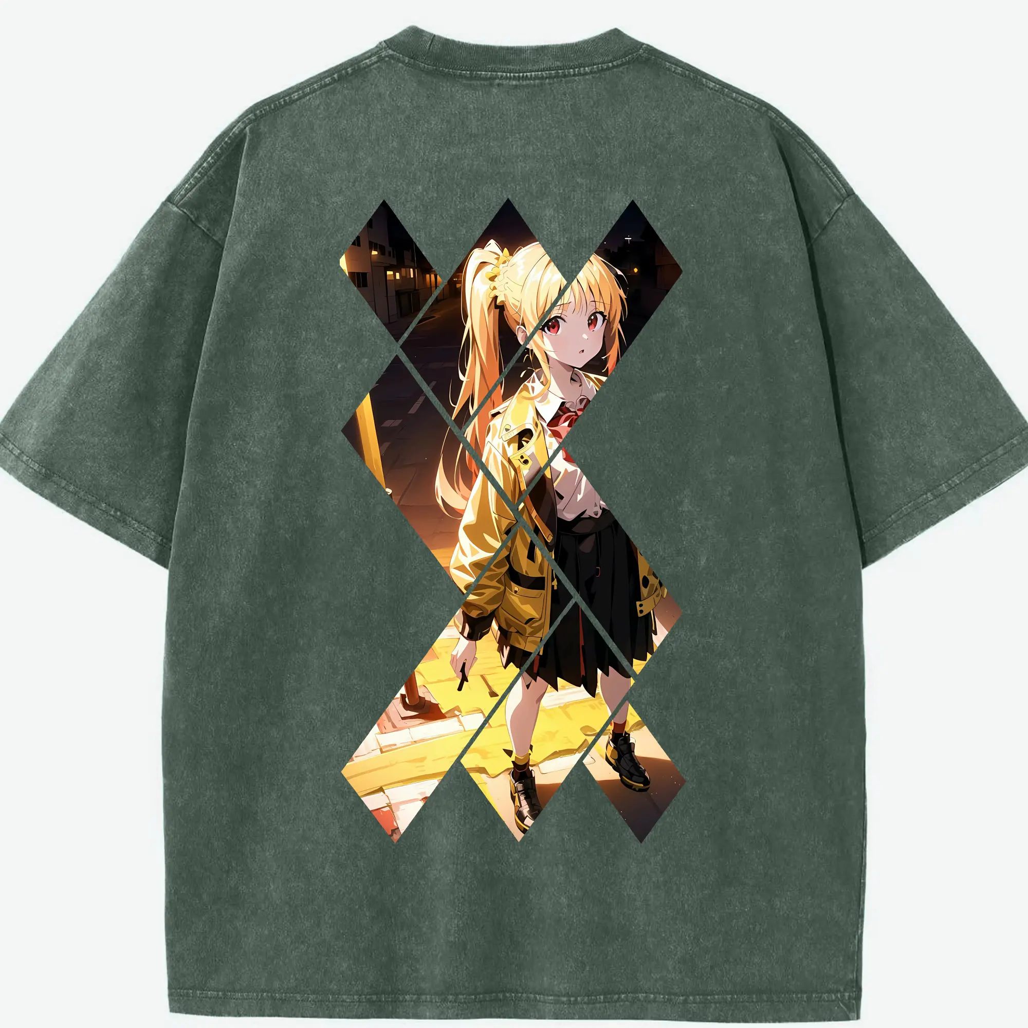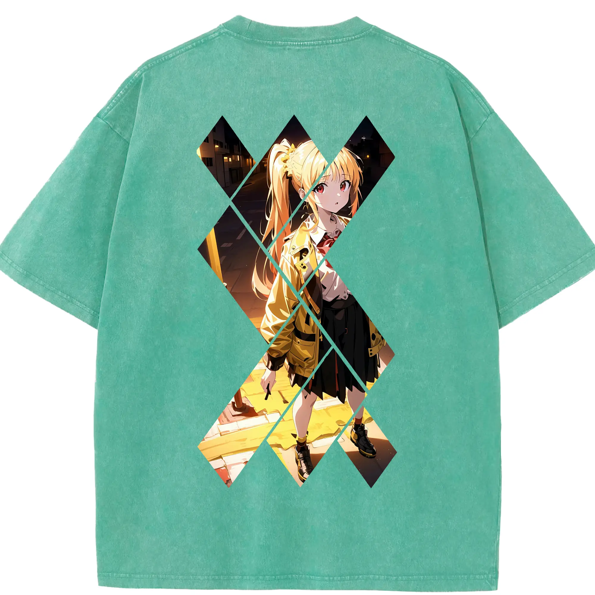 ブルーアーカイブ グッズ 空崎ヒナ - 綿100% ヴィンテージ風 半袖Tシャツ ・ 背面プリント ・ 柔らか肌触り ・ 通気性 快適 ・ スポーツ カジュアル 外出用