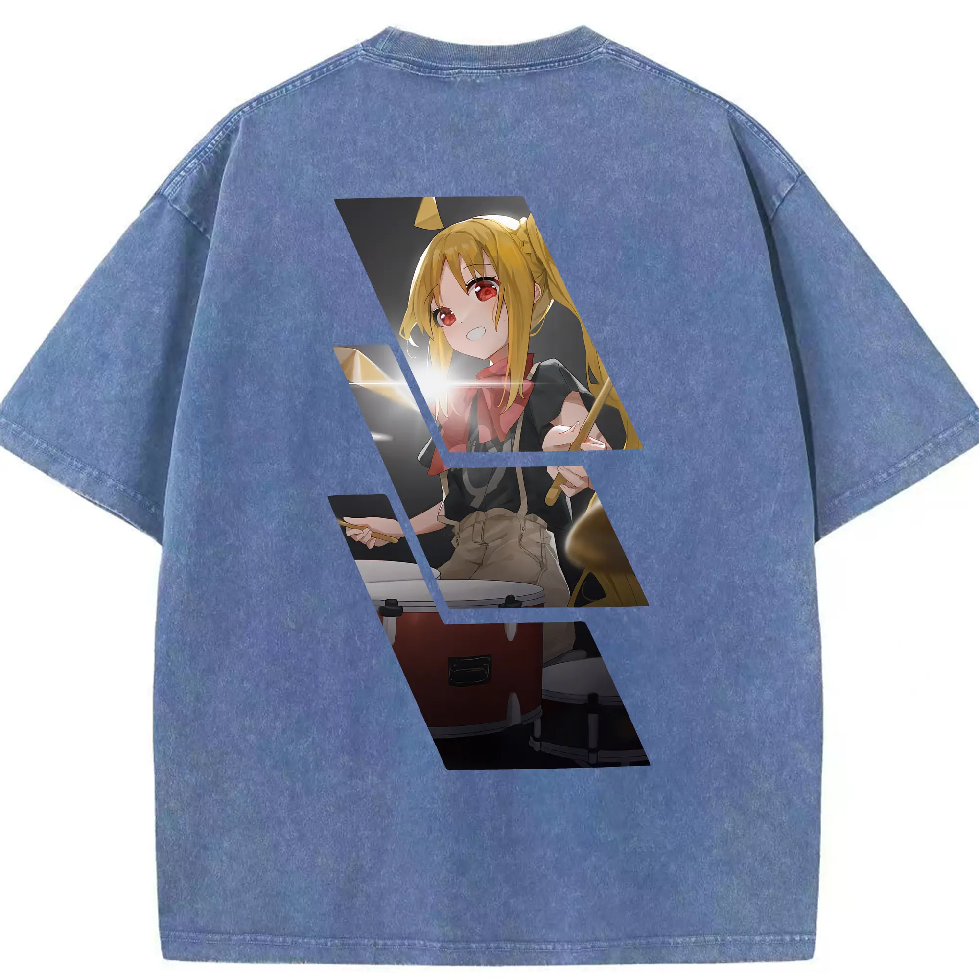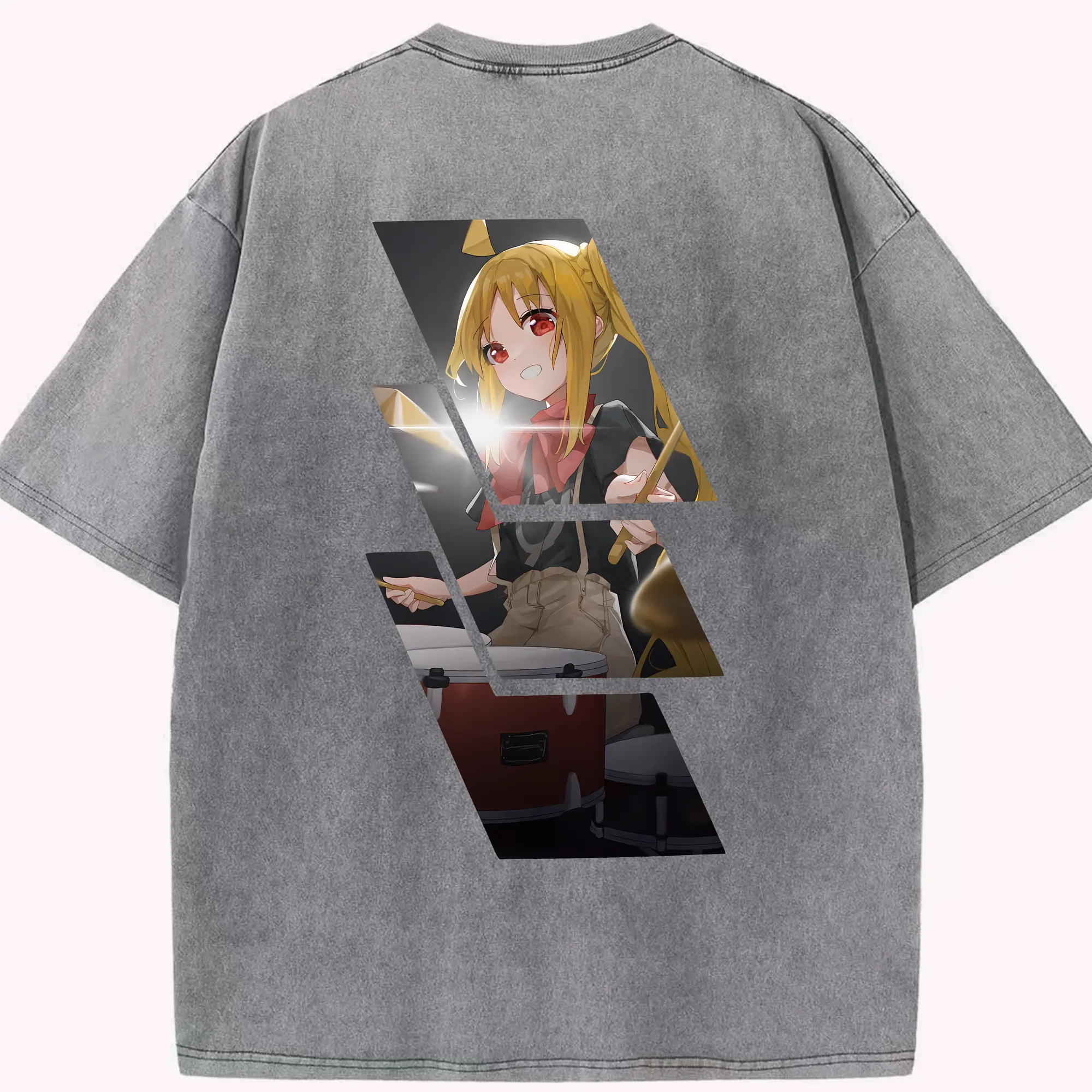ぼっちざろっく! グッズ,伊地知虹夏 - 綿100% ヴィンテージ風 半袖Tシャツ ・ フロントプリント ・ 柔らか肌触り ・ 通気性 快適 ・ スポーツ カジュアル 外出用