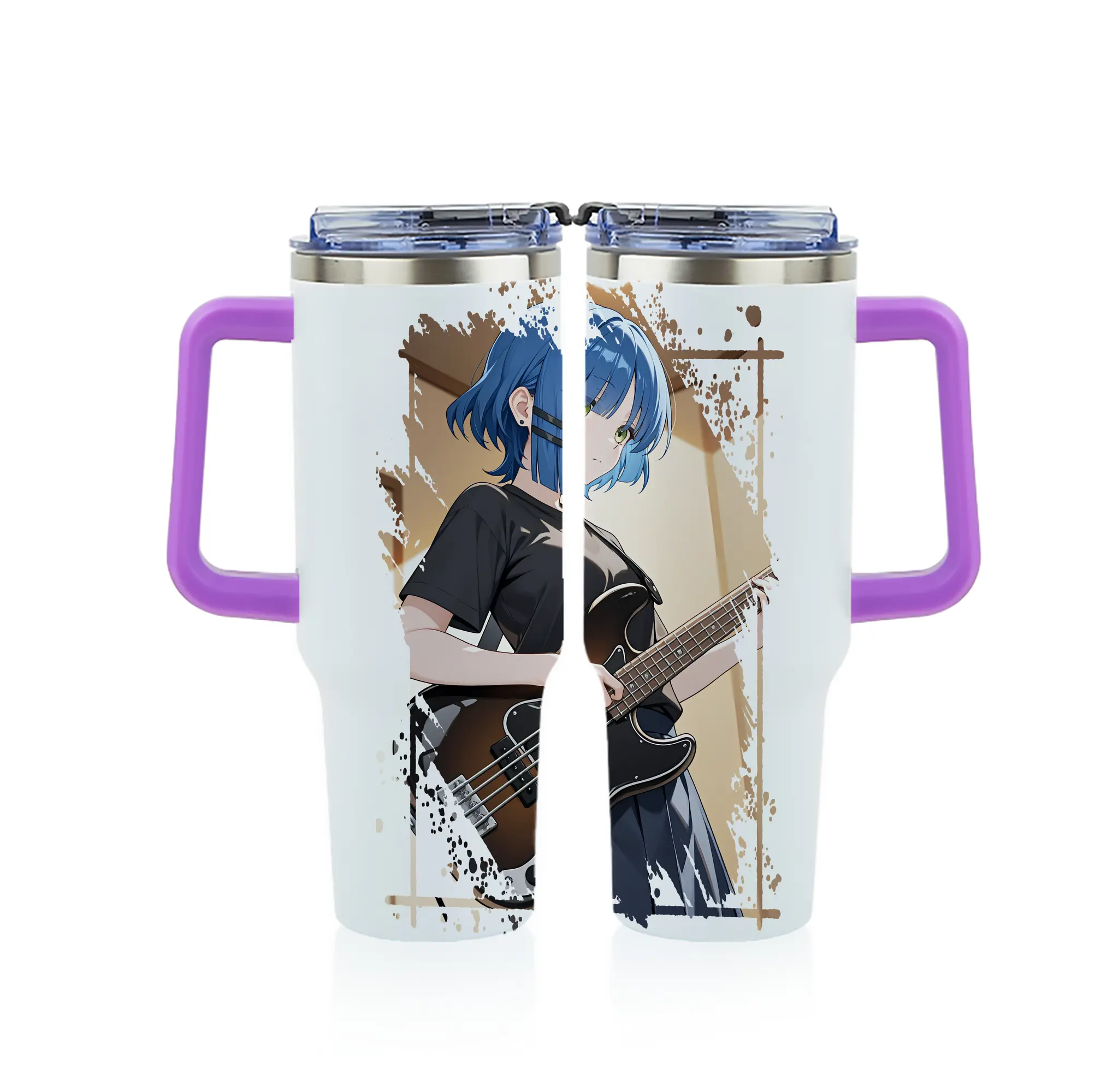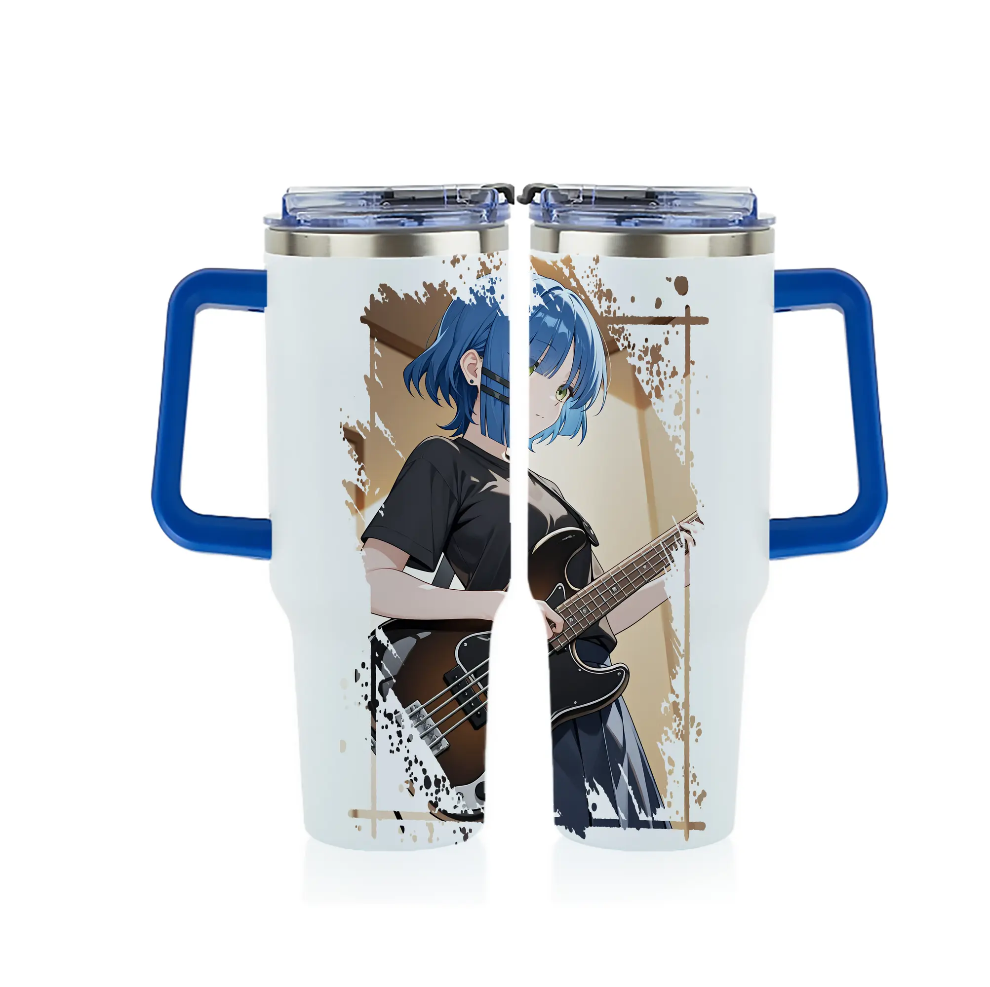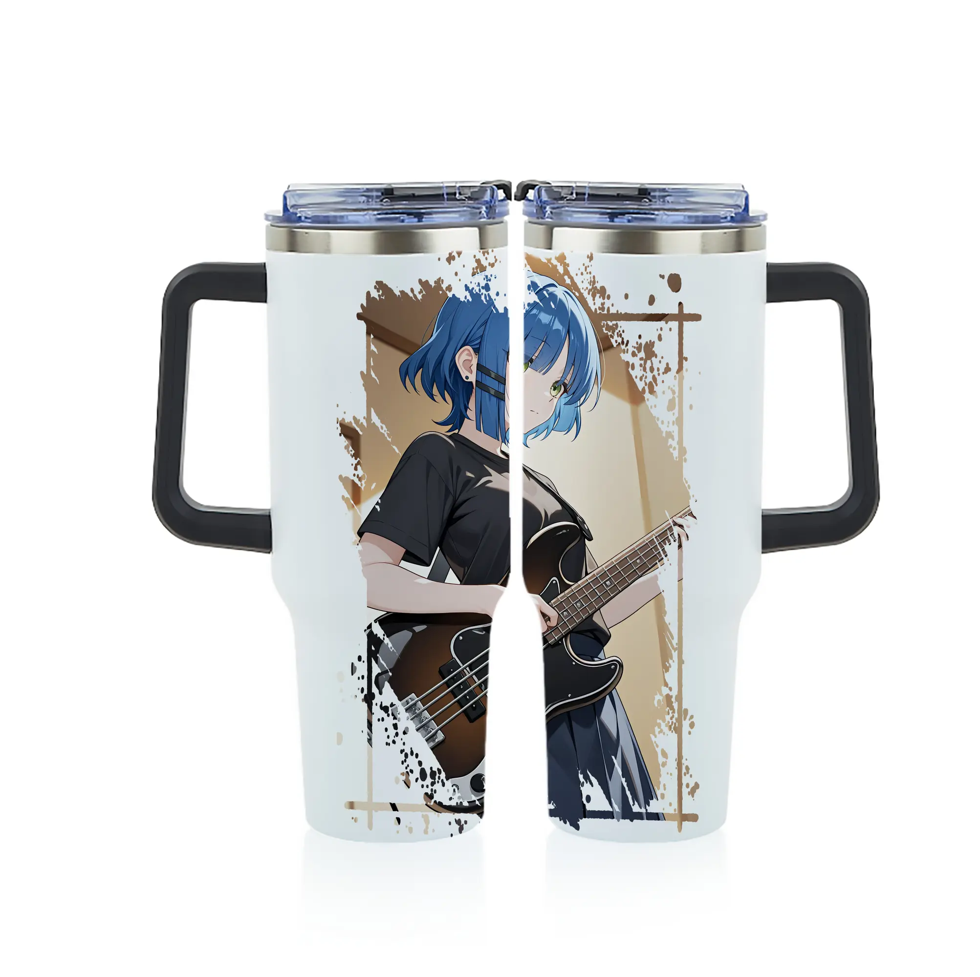ぼっちざろっく! グッズ,山田リョウ - 1200mL フルプリント車用タンブラー ・ 304ステンレス 内側 ・ 201ステンレス 外側 ・ 保温 保冷 ・ 通勤 ドライブ アウトドア用