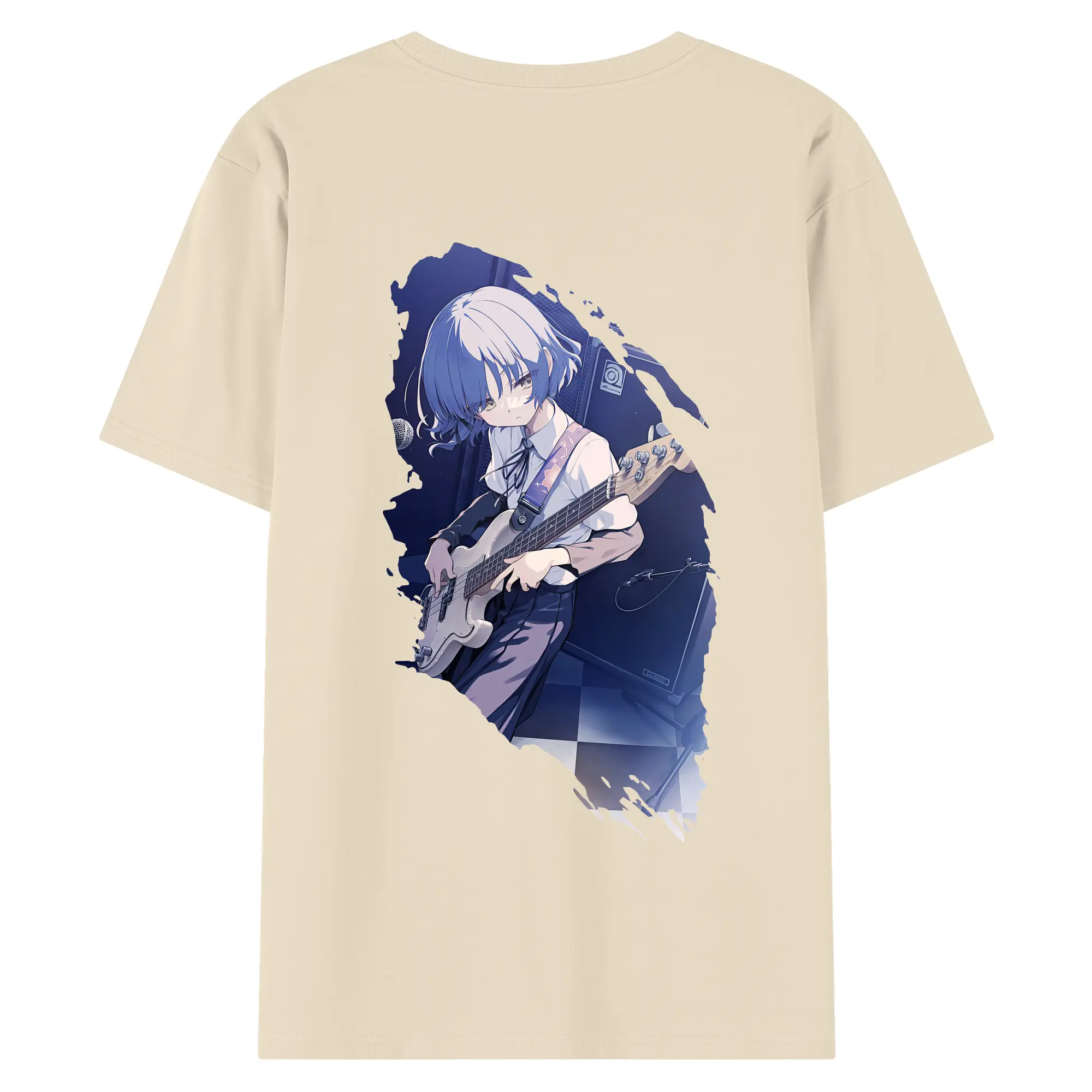 ぼっちざろっく! グッズ,山田リョウ - 綿100% ヴィンテージ風 半袖Tシャツ ・ 背面プリント ・ 柔らか肌触り ・ 通気性 快適 ・ スポーツ カジュアル 外出用