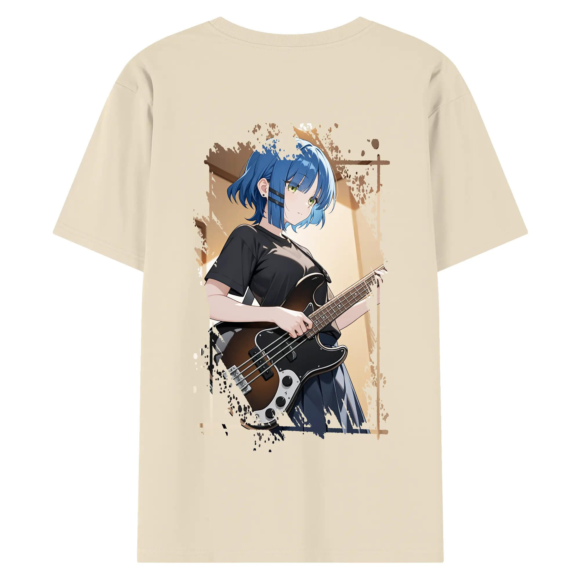 ぼっちざろっく! グッズ,山田リョウ - 綿100% ヴィンテージ風 半袖Tシャツ ・ 背面プリント ・ 柔らか肌触り ・ 通気性 快適 ・ スポーツ カジュアル 外出用