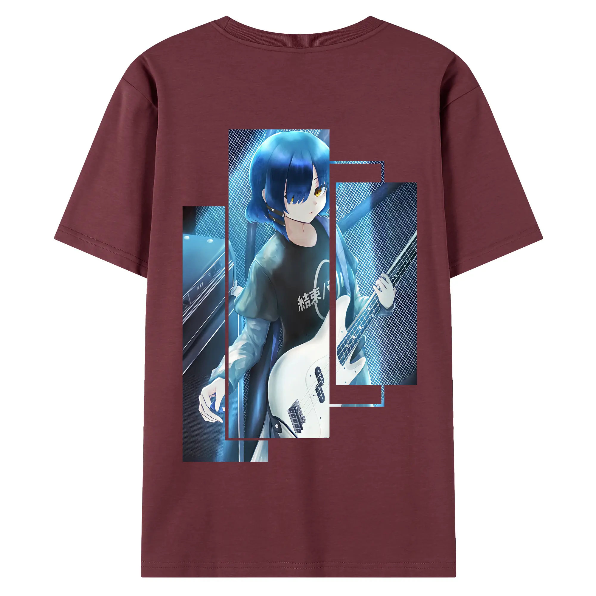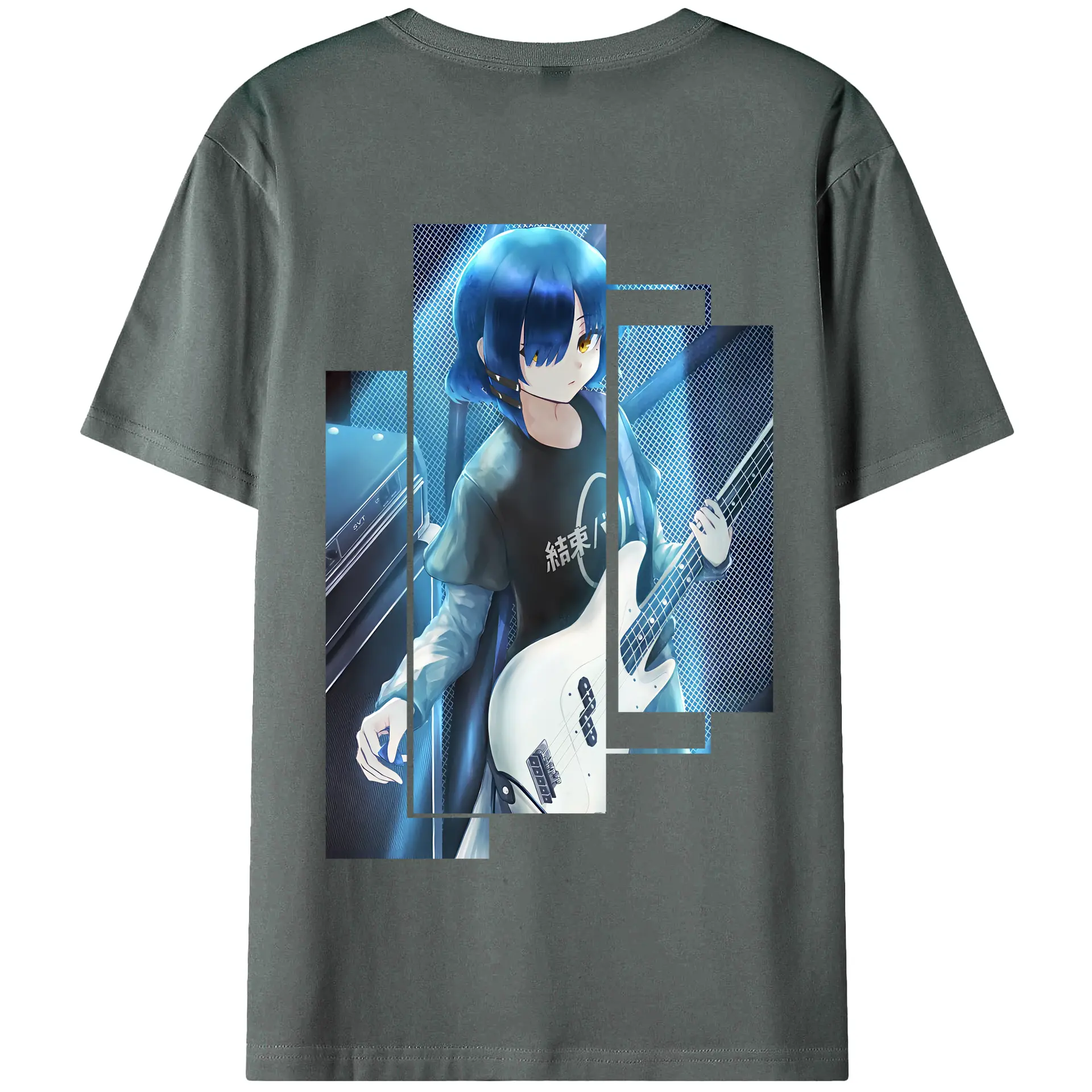 ぼっちざろっく! グッズ,山田リョウ - 綿100% ヴィンテージ風 半袖Tシャツ ・ 背面プリント ・ 柔らか肌触り ・ 通気性 快適 ・ スポーツ カジュアル 外出用