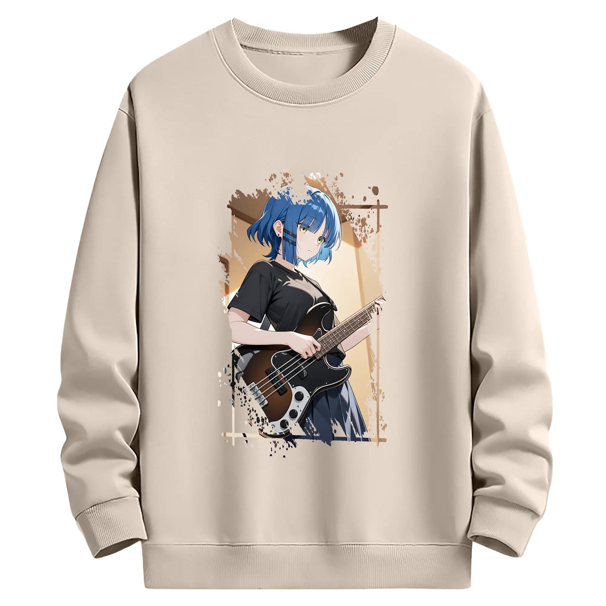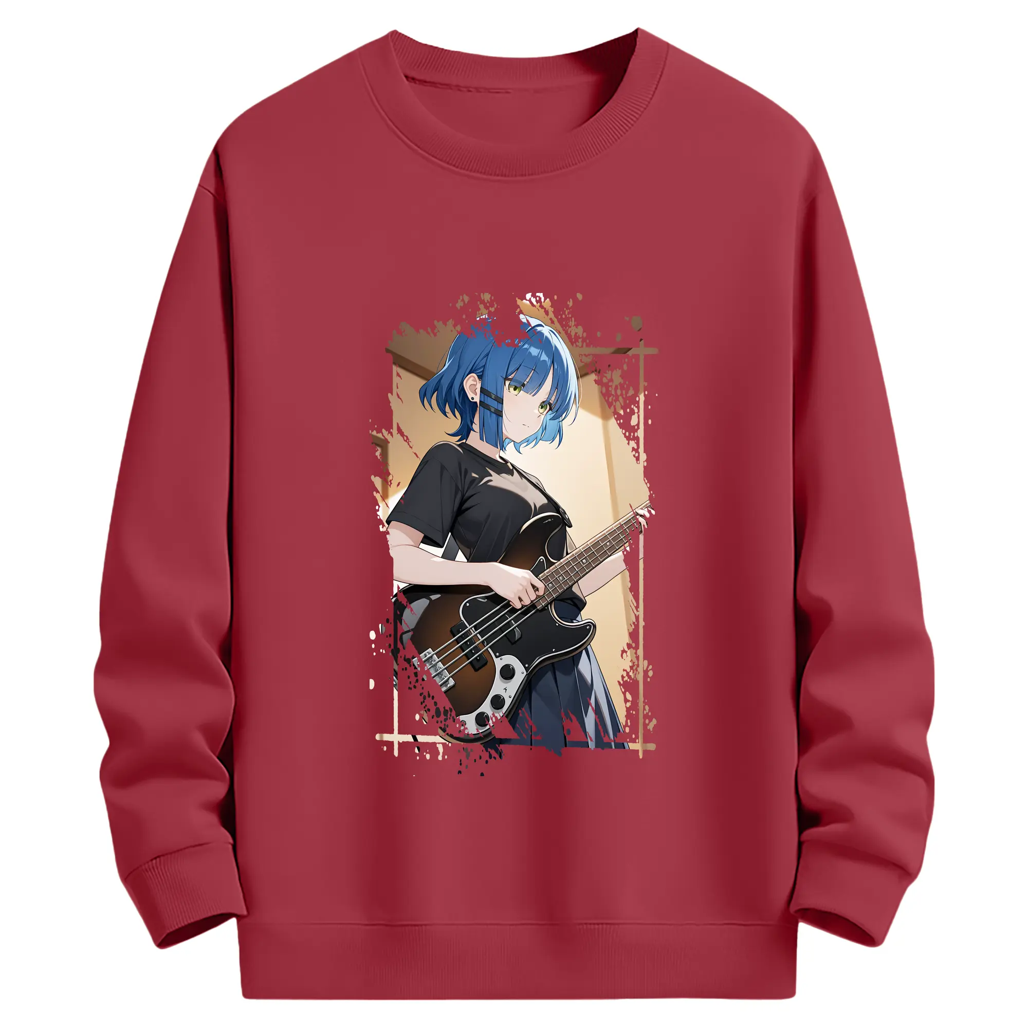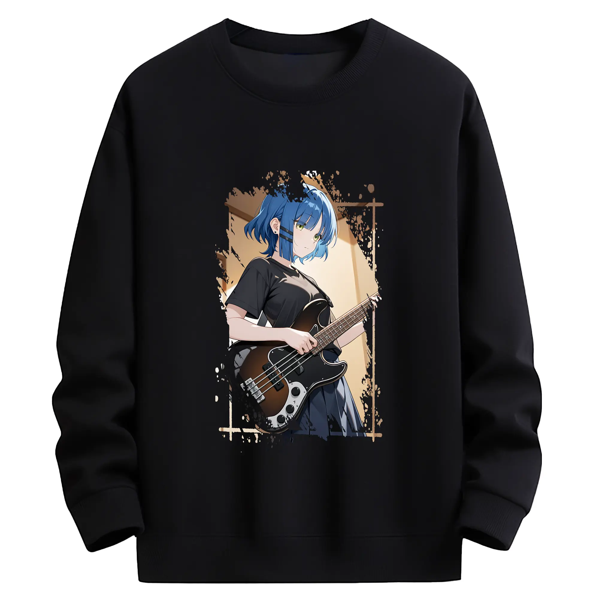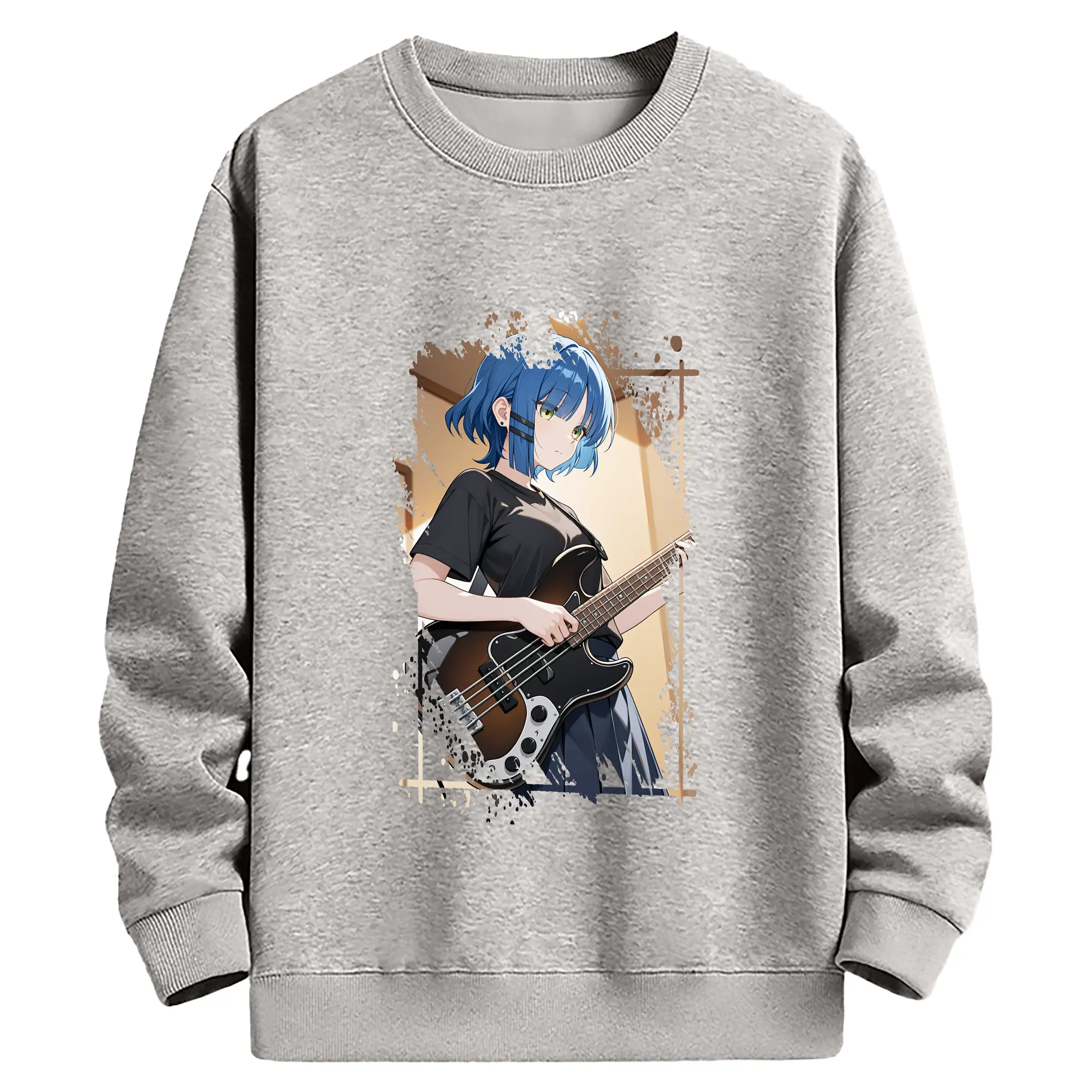 ぼっちざろっく! グッズ,山田リョウ - 薄手 クルーネック スウェット 裏毛260g · ポリエステル 春秋向け カジュアル 男女兼用 · トレーナー デイリー スポーツ 散歩に最適