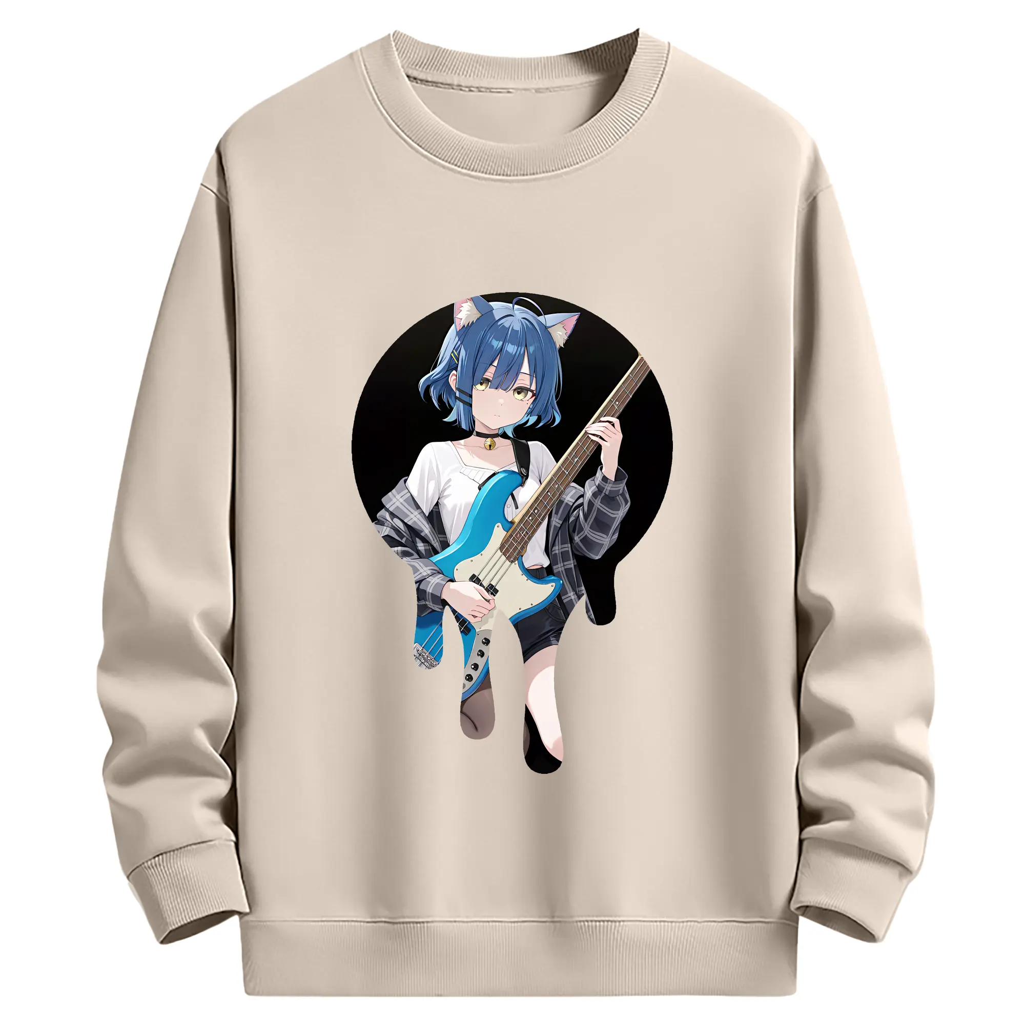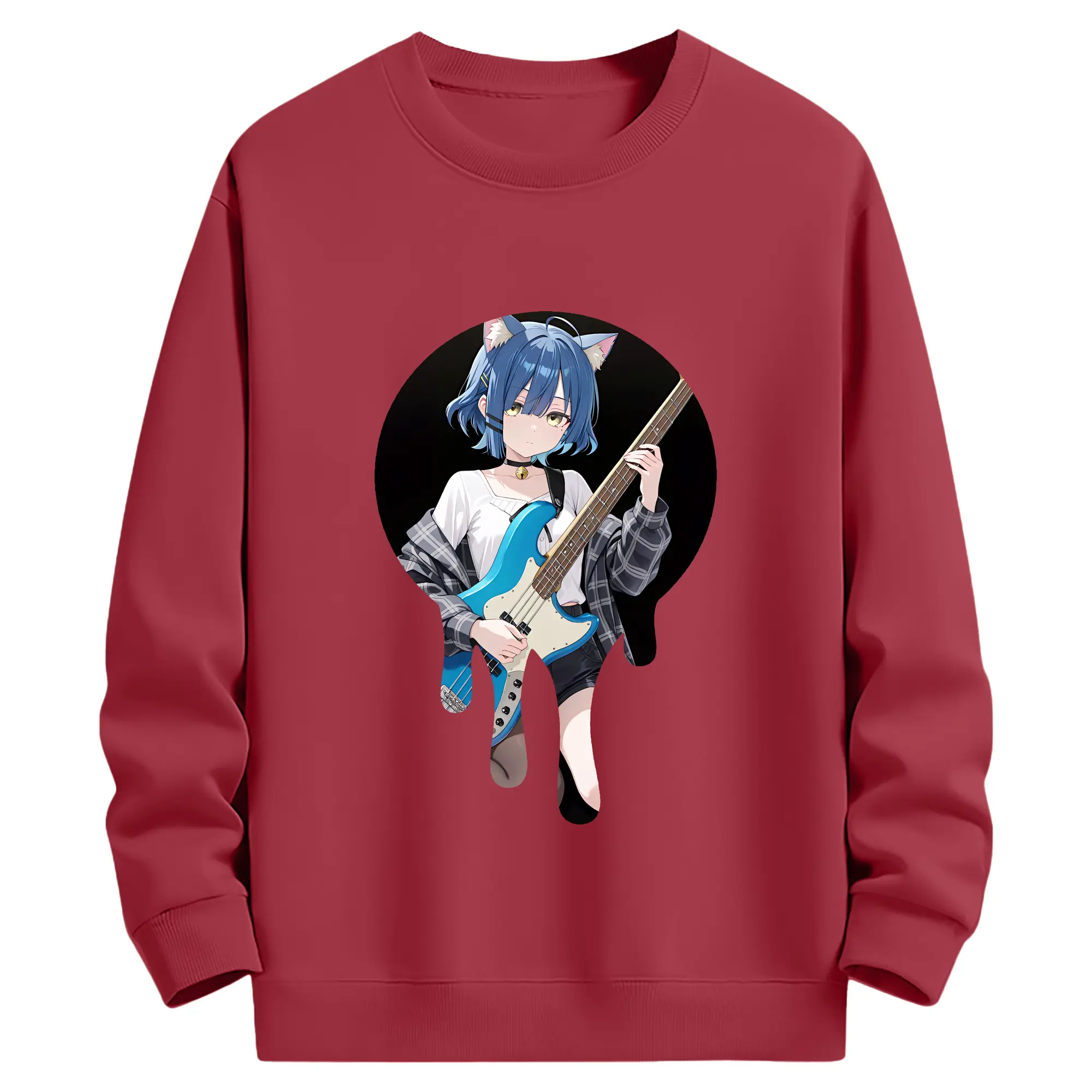 ぼっちざろっく! グッズ,山田リョウ - 薄手 クルーネック スウェット 裏毛260g · ポリエステル 春秋向け カジュアル 男女兼用 · トレーナー デイリー スポーツ 散歩に最適