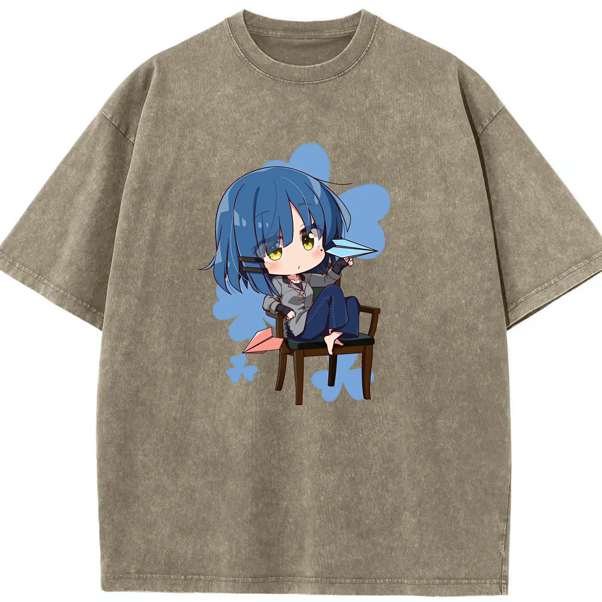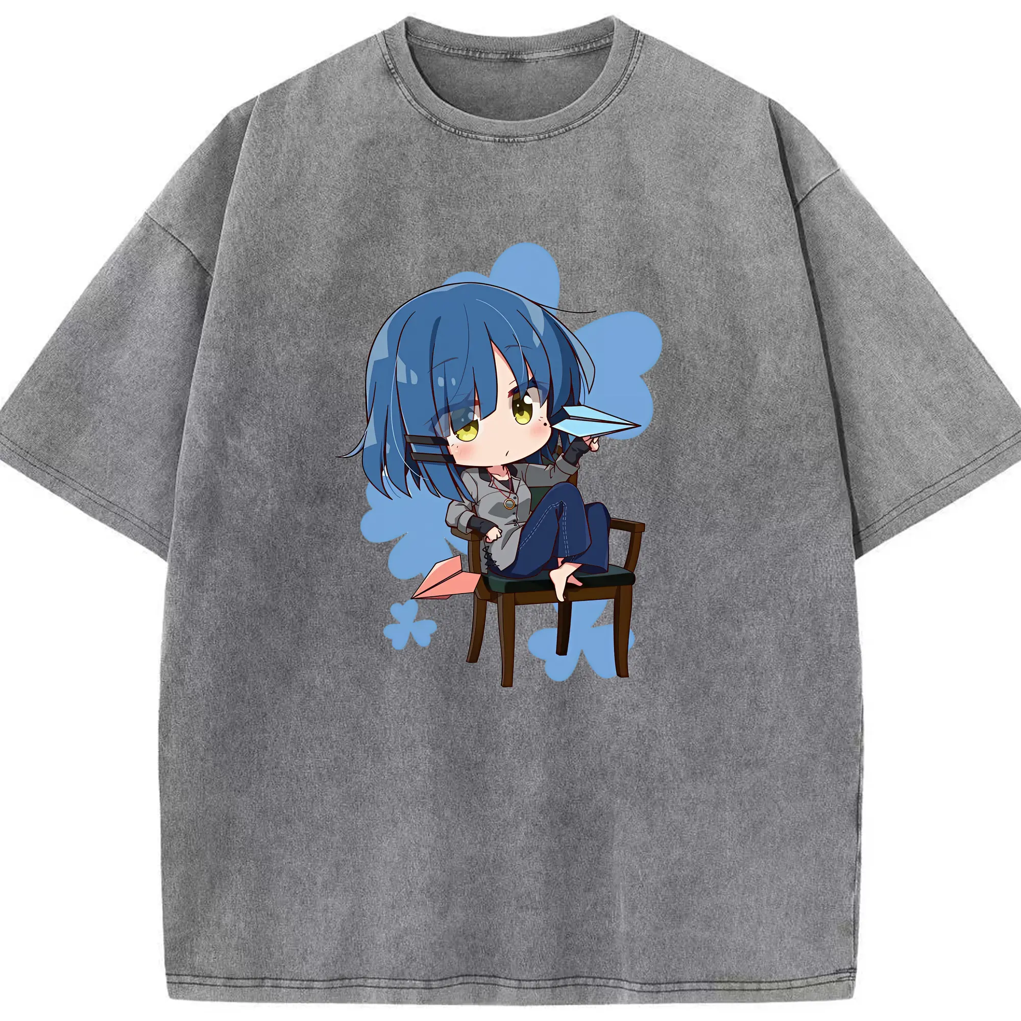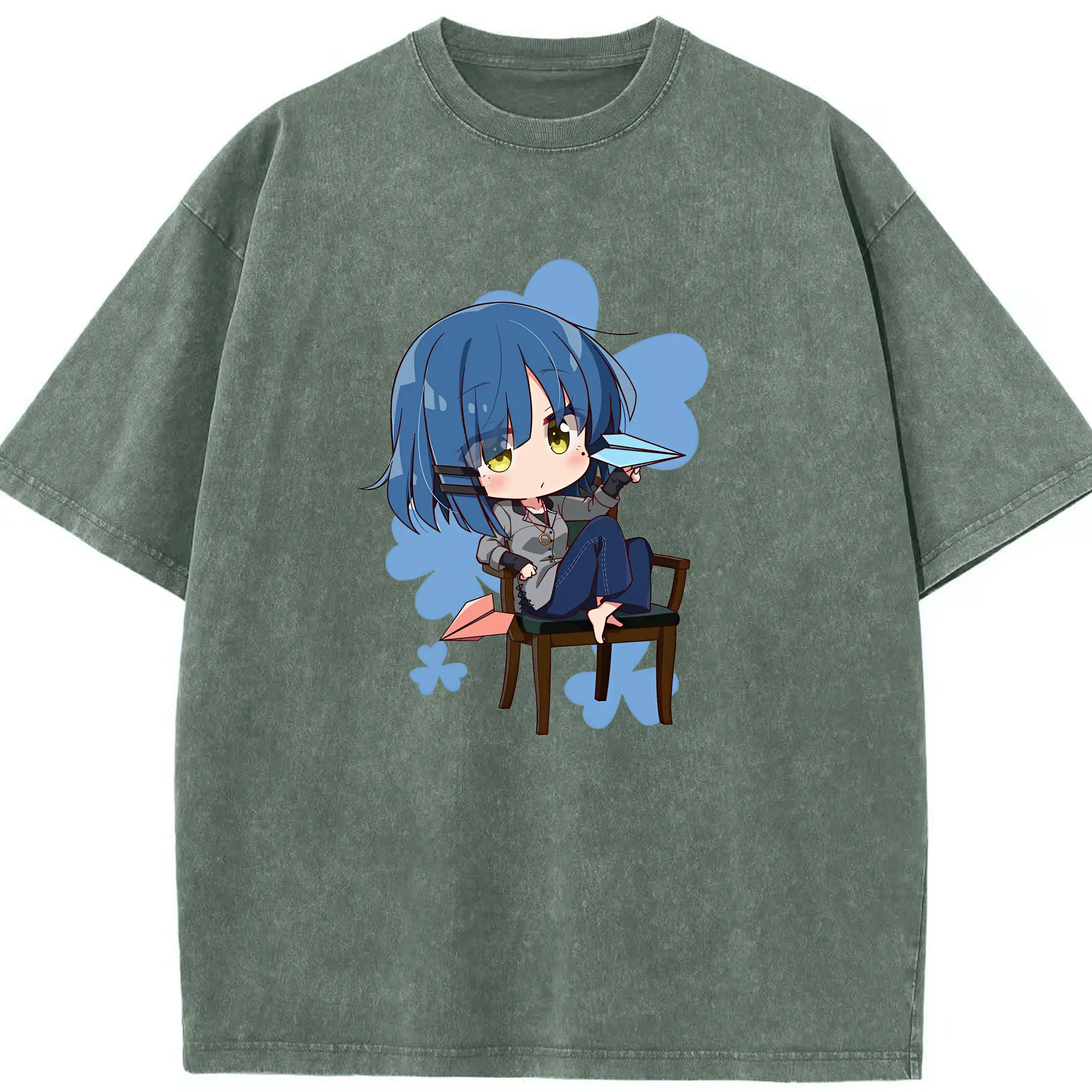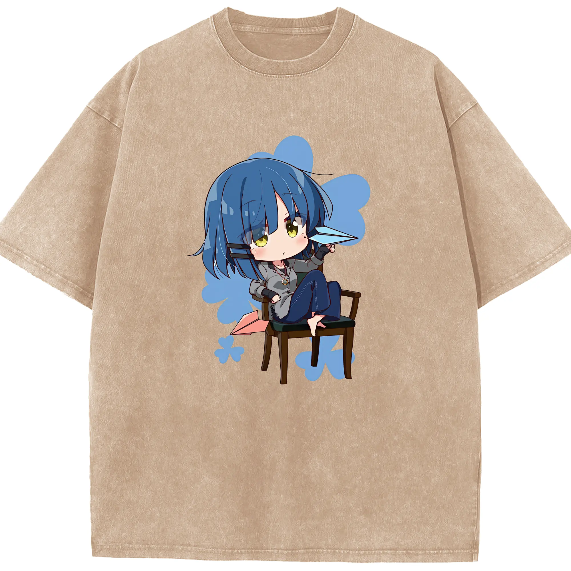 ぼっちざろっく! グッズ,山田リョウ - 綿100% ヴィンテージ風 半袖Tシャツ ・ 背面プリント ・ 柔らか肌触り ・ 通気性 快適 ・ スポーツ カジュアル 外出用