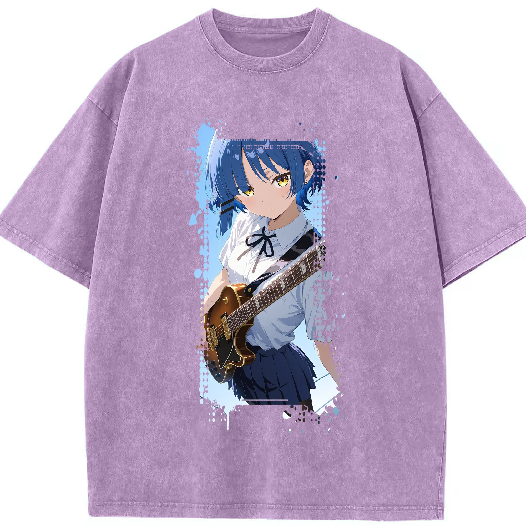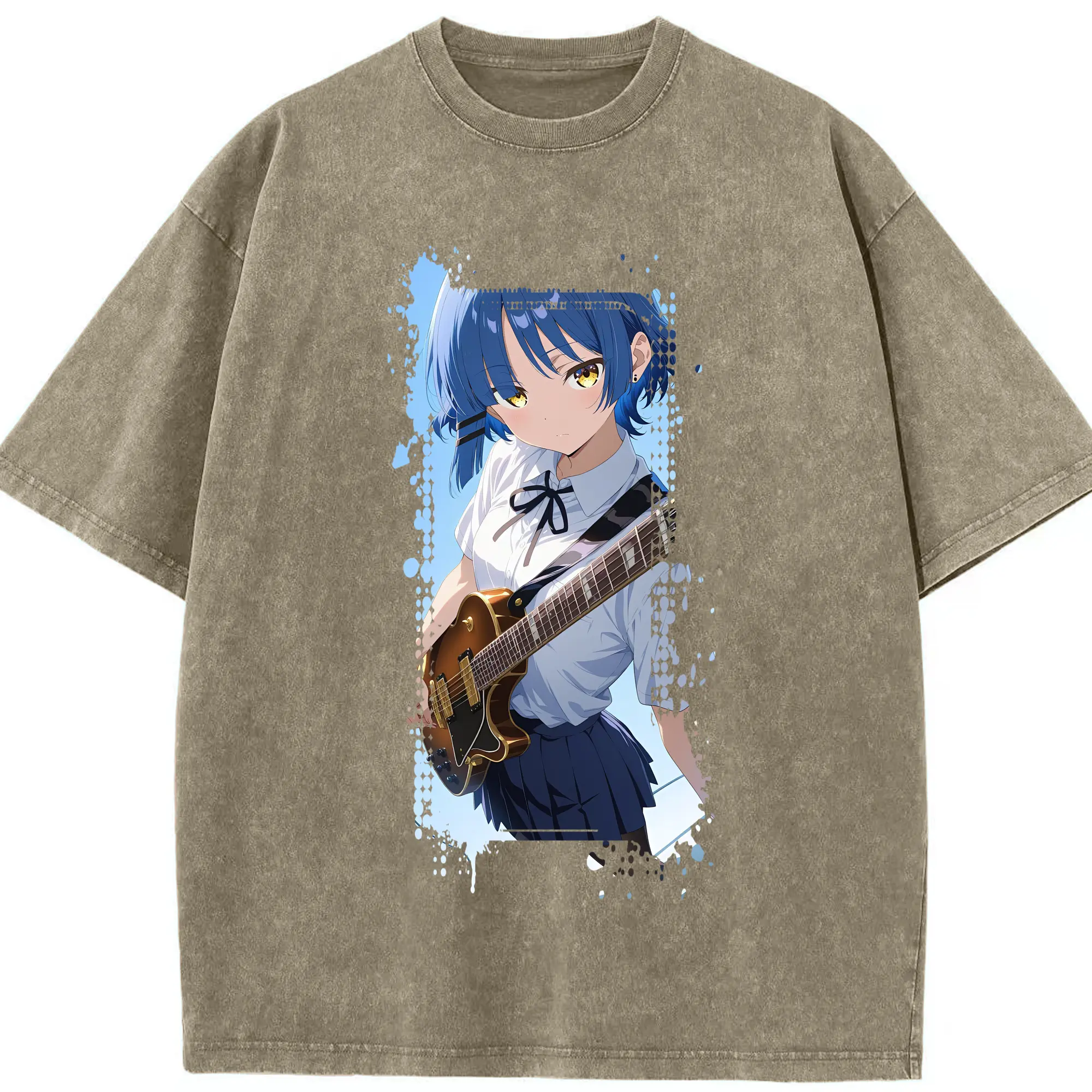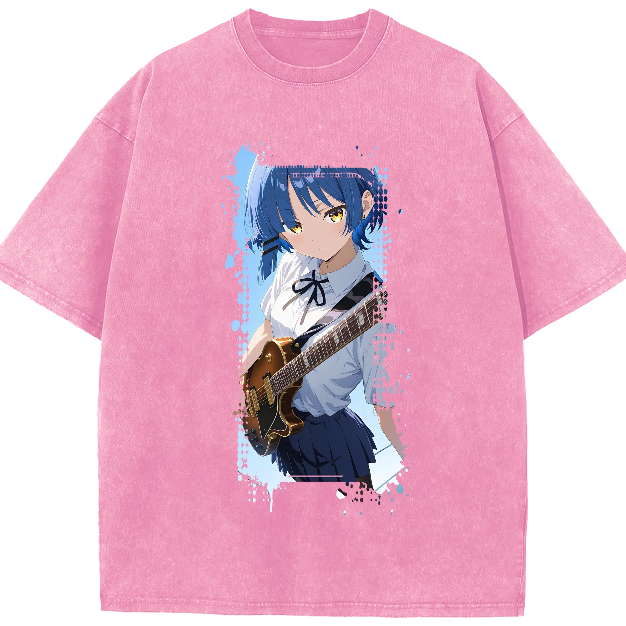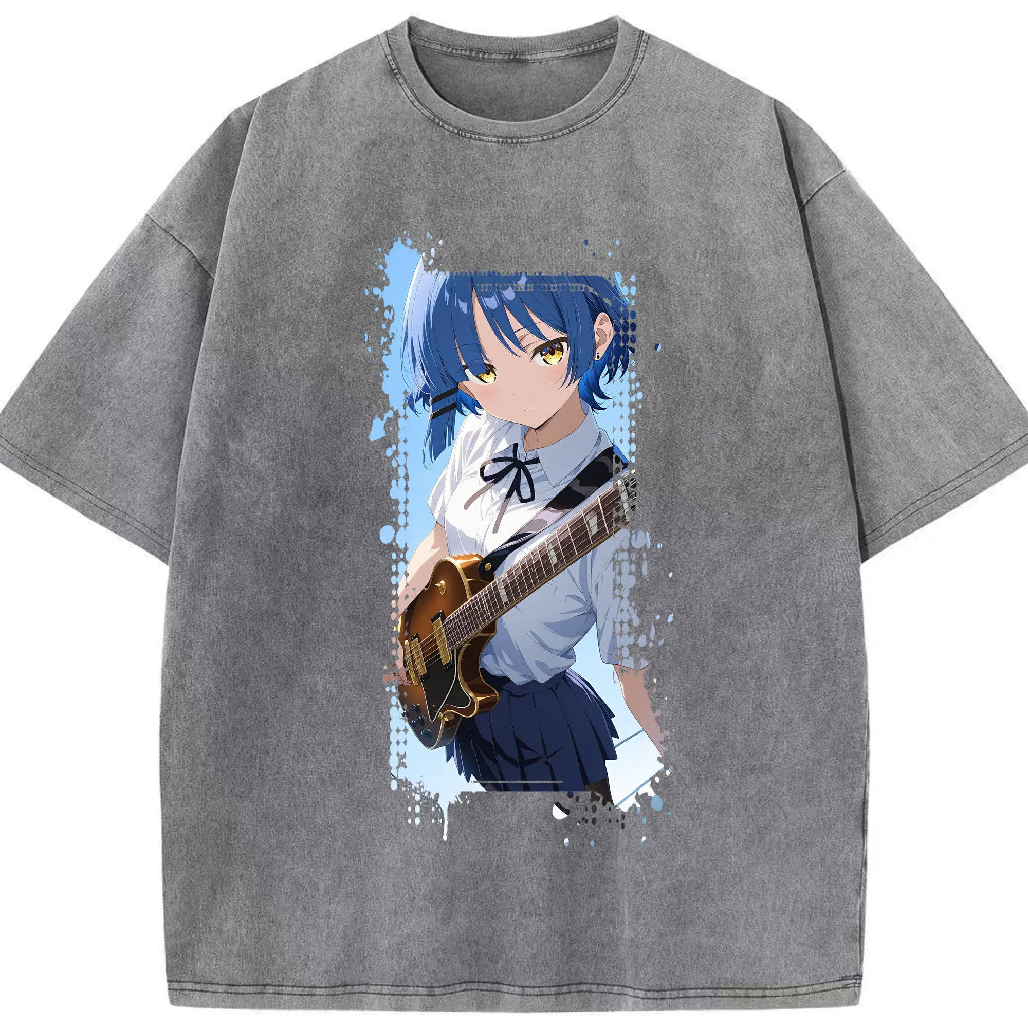 ぼっちざろっく! グッズ,山田リョウ - 綿100% ヴィンテージ風 半袖Tシャツ ・ 背面プリント ・ 柔らか肌触り ・ 通気性 快適 ・ スポーツ カジュアル 外出用