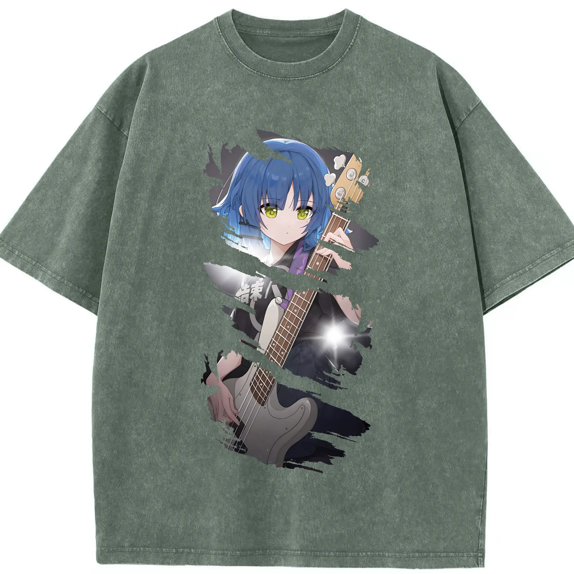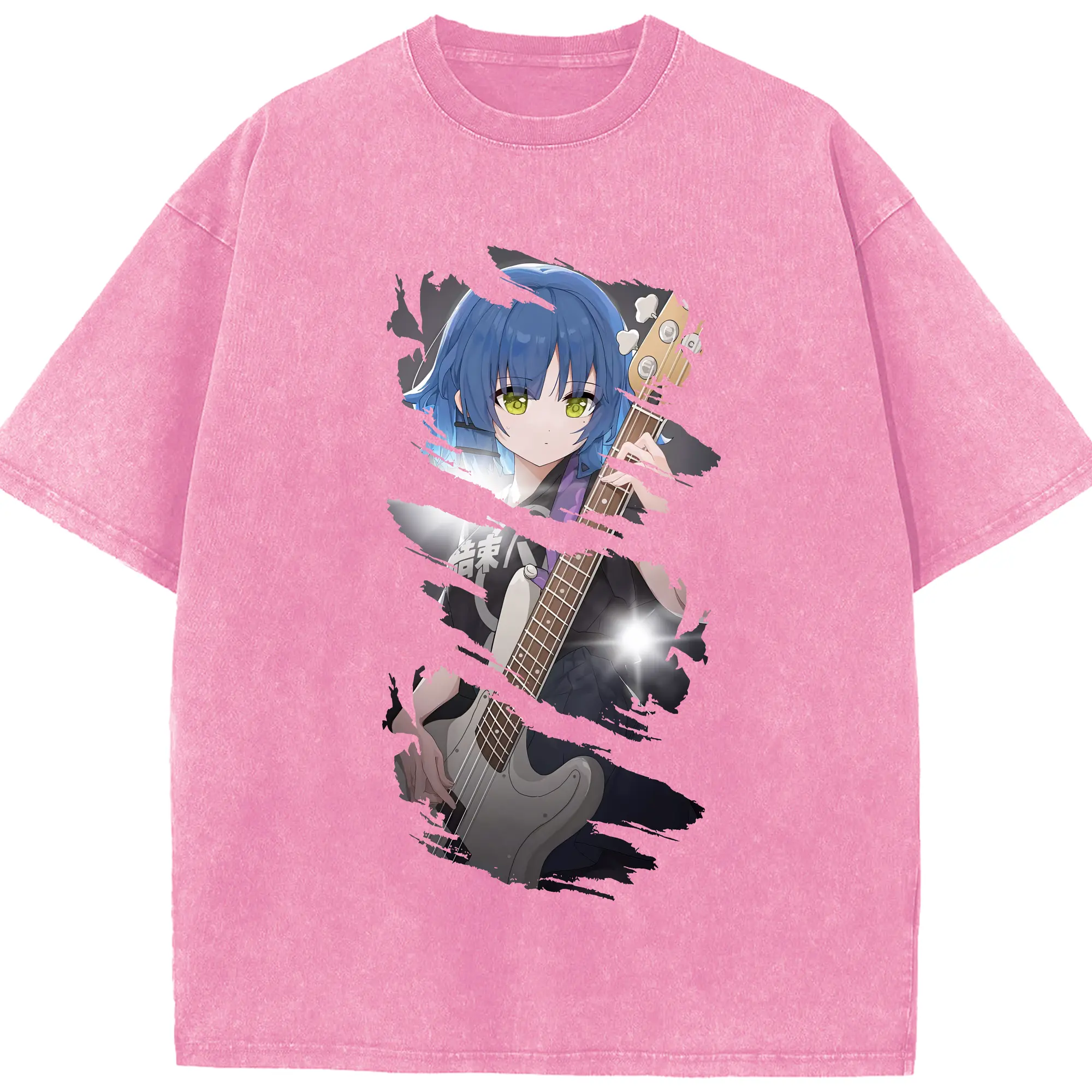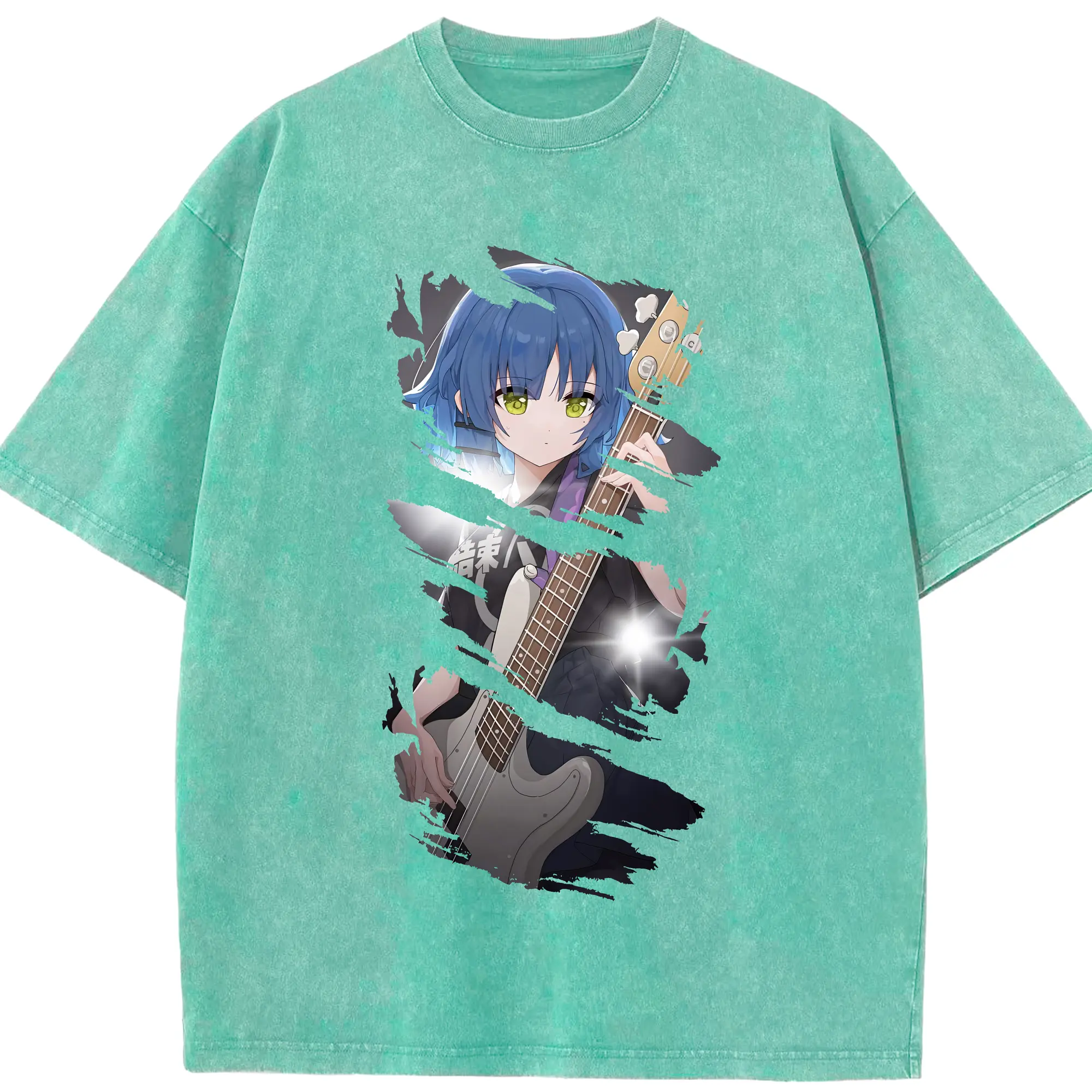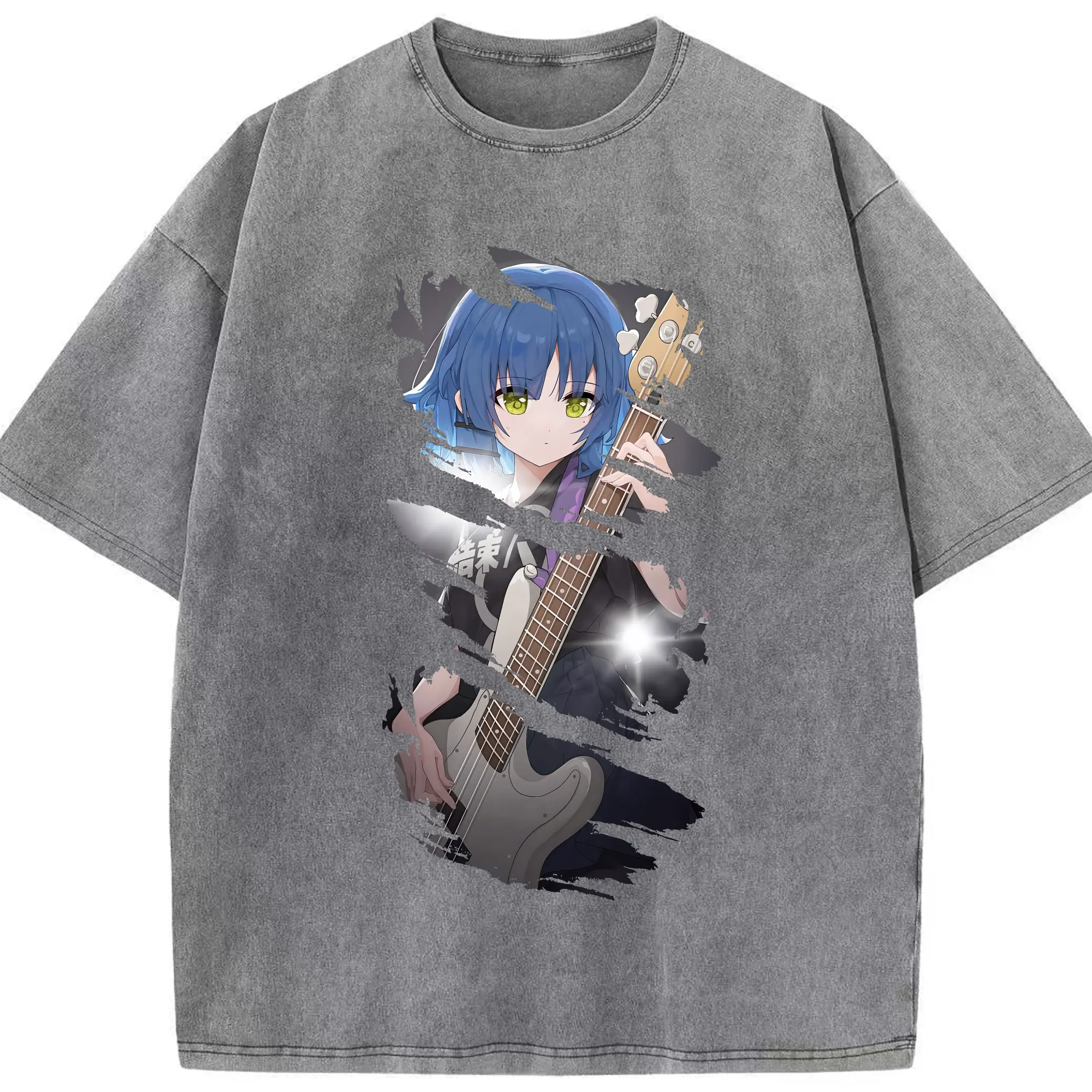 ぼっちざろっく! グッズ,山田リョウ - 綿100% ヴィンテージ風 半袖Tシャツ ・ 背面プリント ・ 柔らか肌触り ・ 通気性 快適 ・ スポーツ カジュアル 外出用