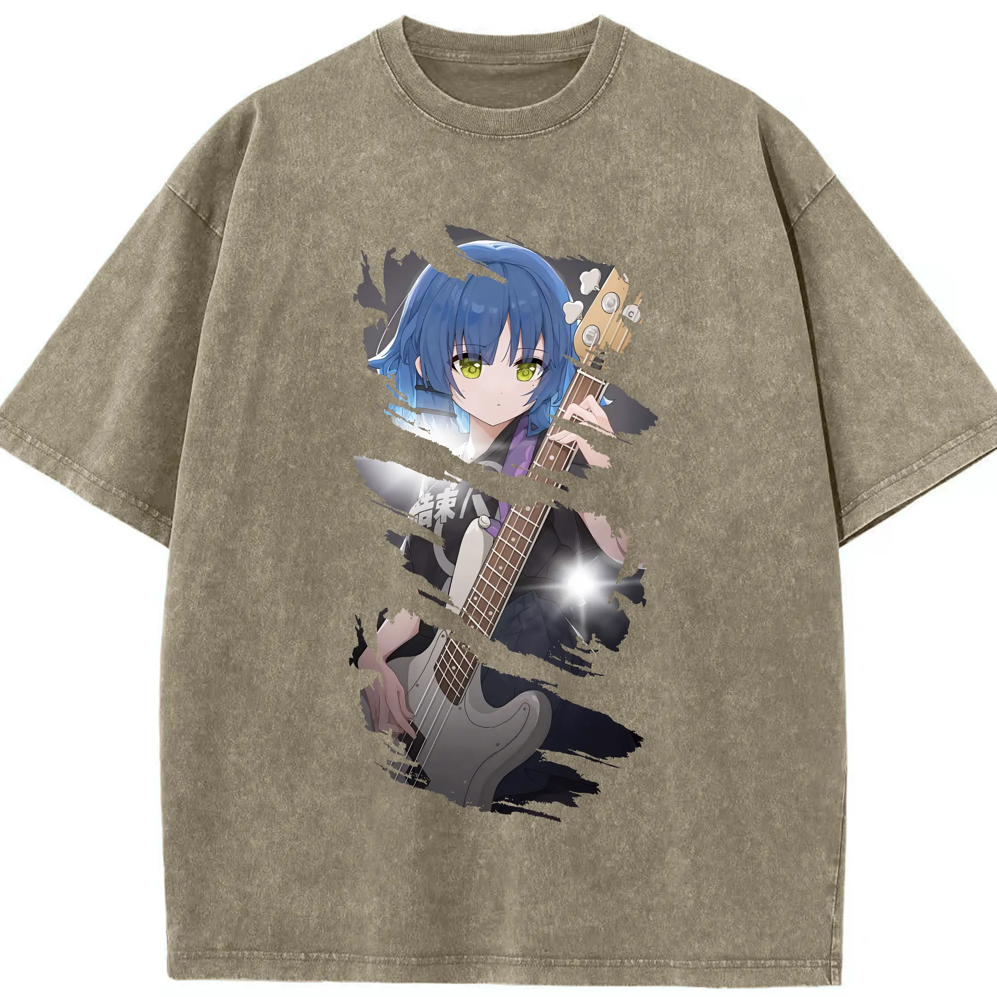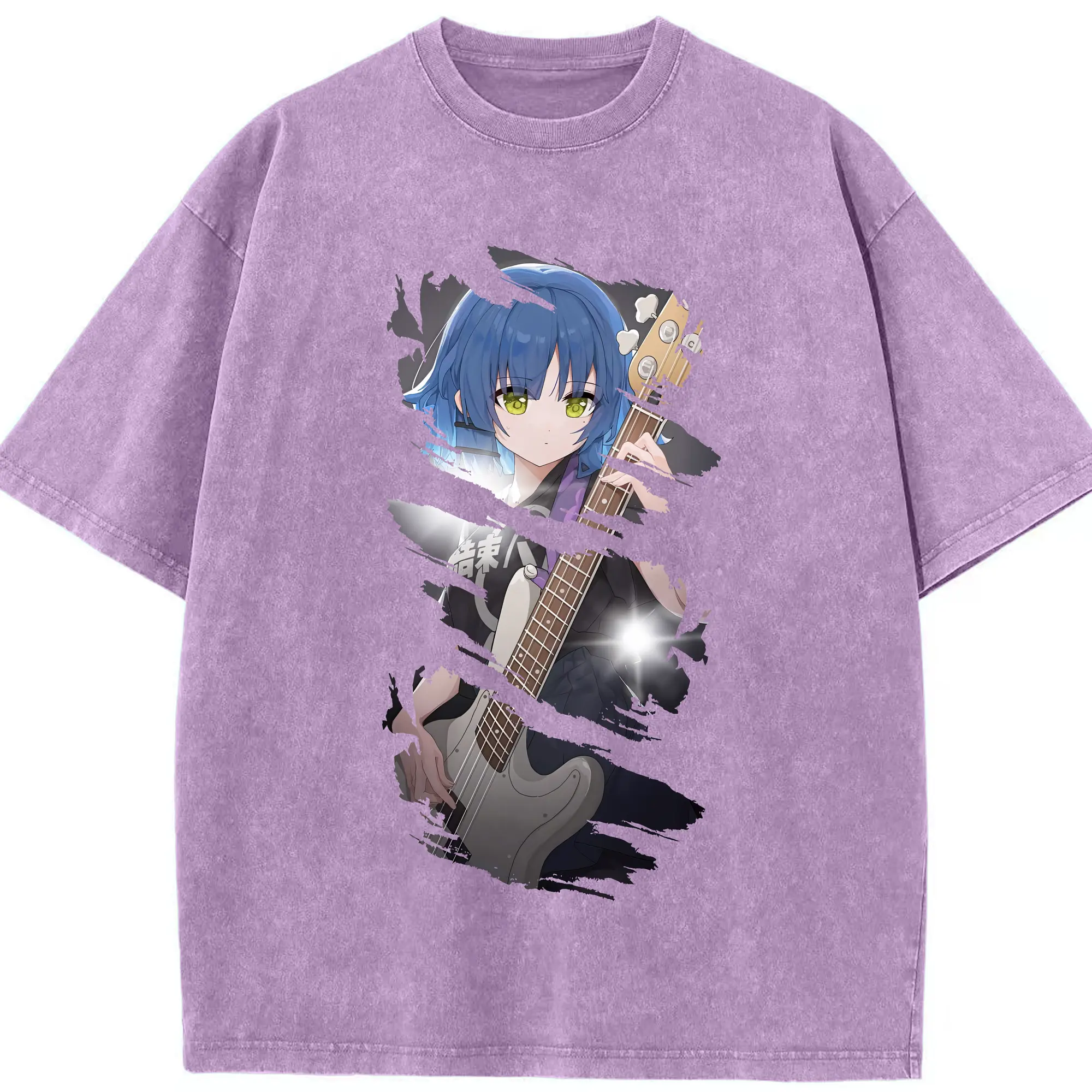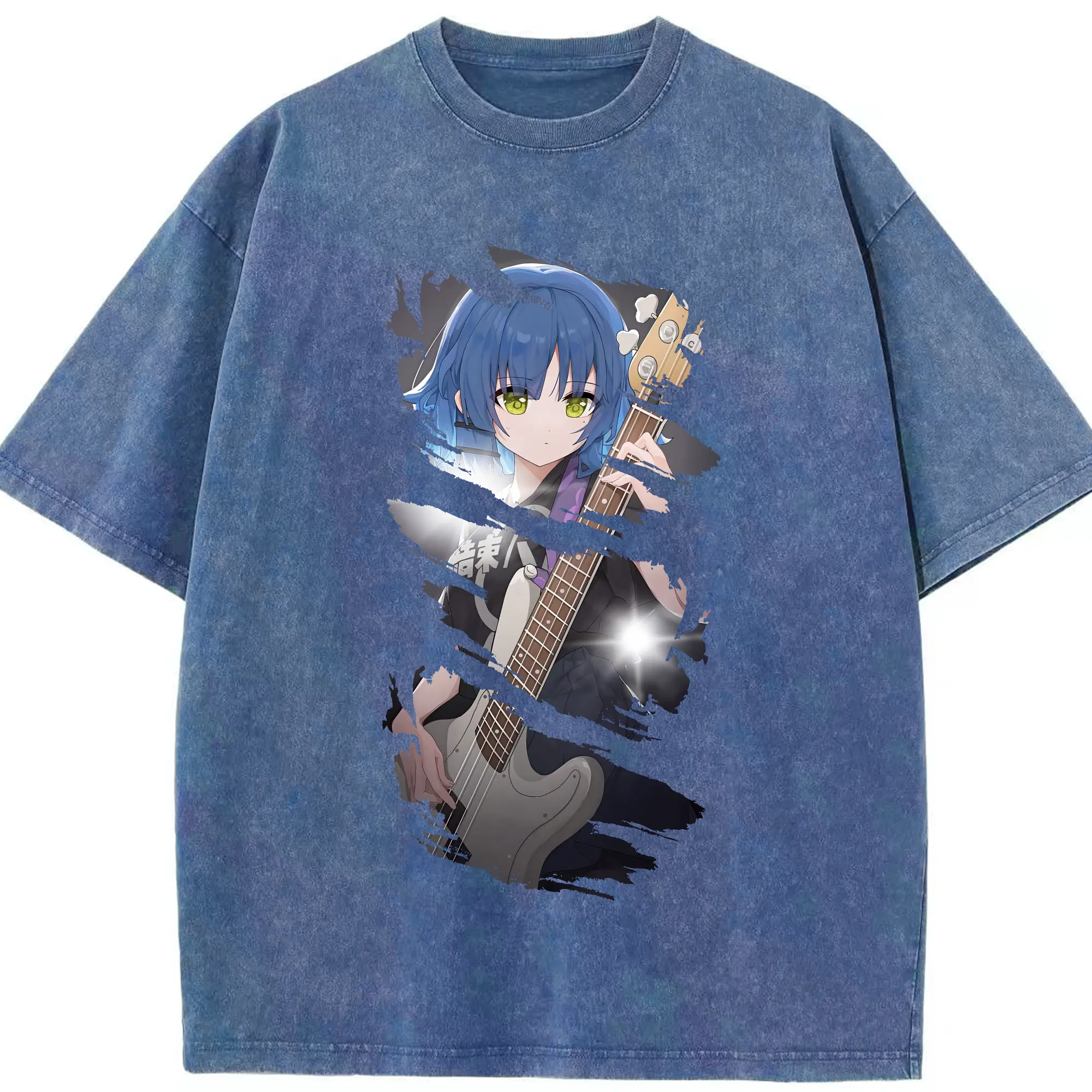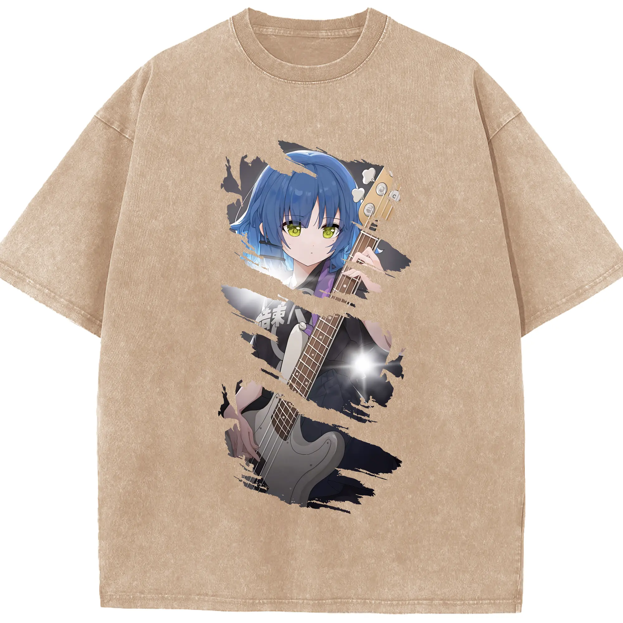 ぼっちざろっく! グッズ,山田リョウ - 綿100% ヴィンテージ風 半袖Tシャツ ・ 背面プリント ・ 柔らか肌触り ・ 通気性 快適 ・ スポーツ カジュアル 外出用