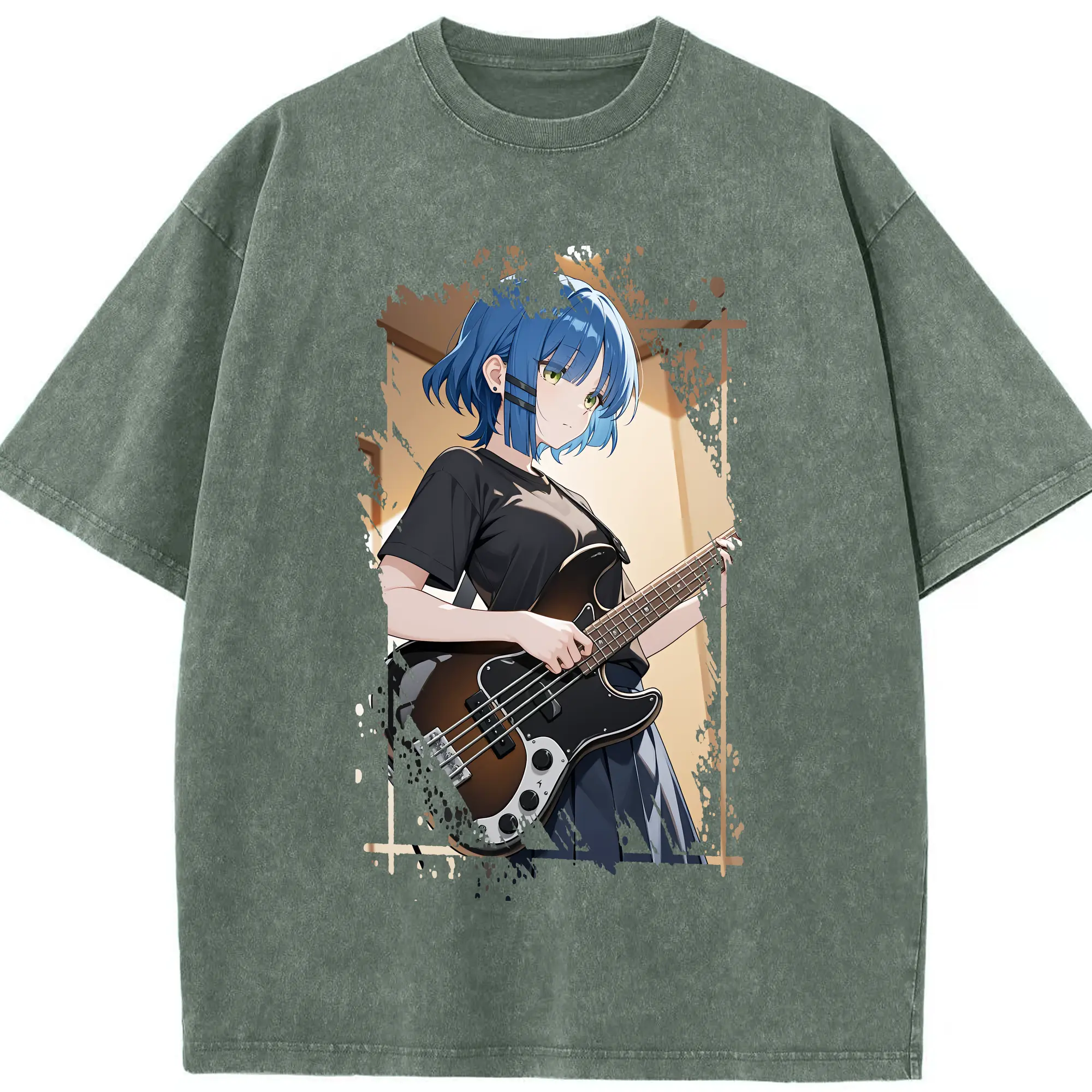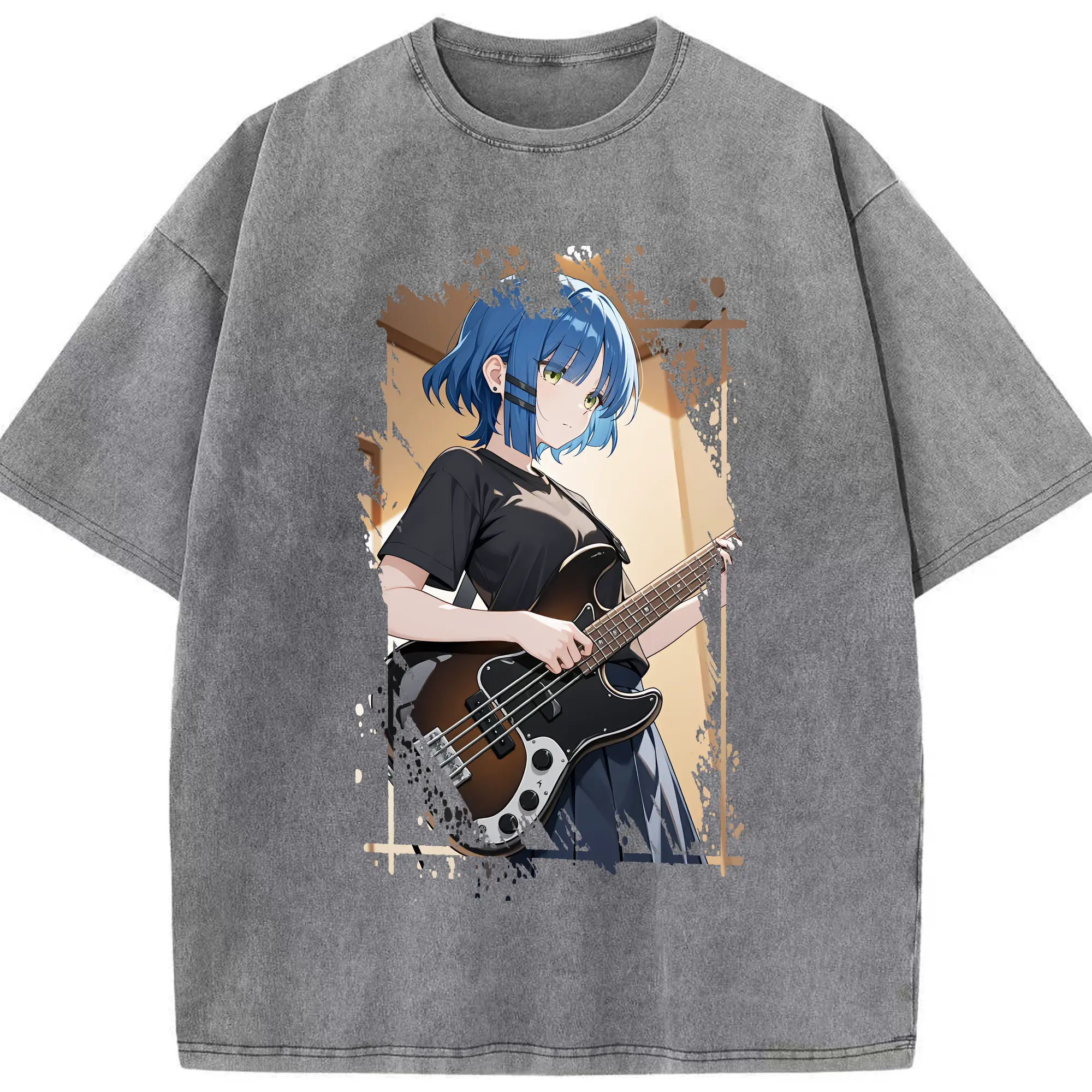 ぼっちざろっく! グッズ,山田リョウ - 綿100% ヴィンテージ風 半袖Tシャツ ・ 背面プリント ・ 柔らか肌触り ・ 通気性 快適 ・ スポーツ カジュアル 外出用