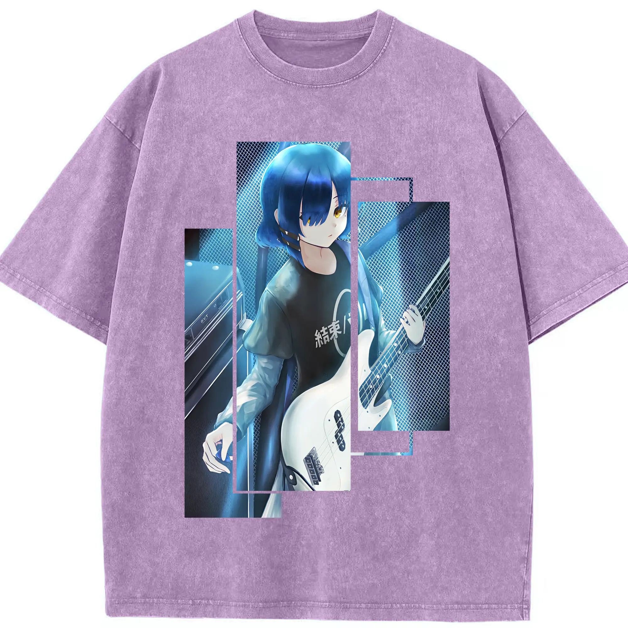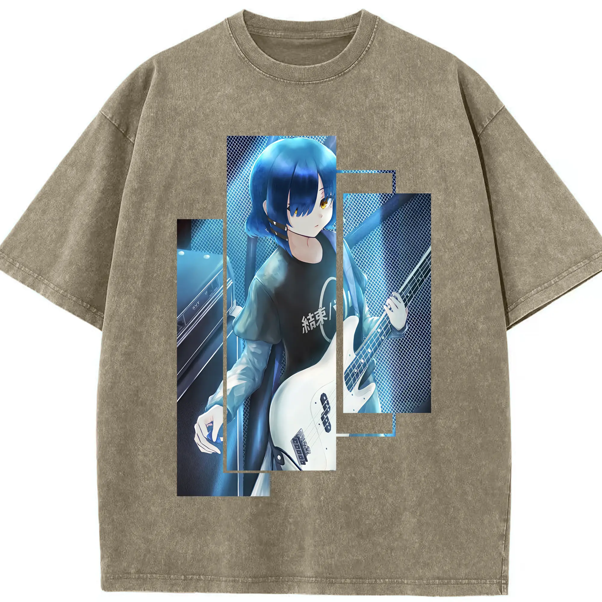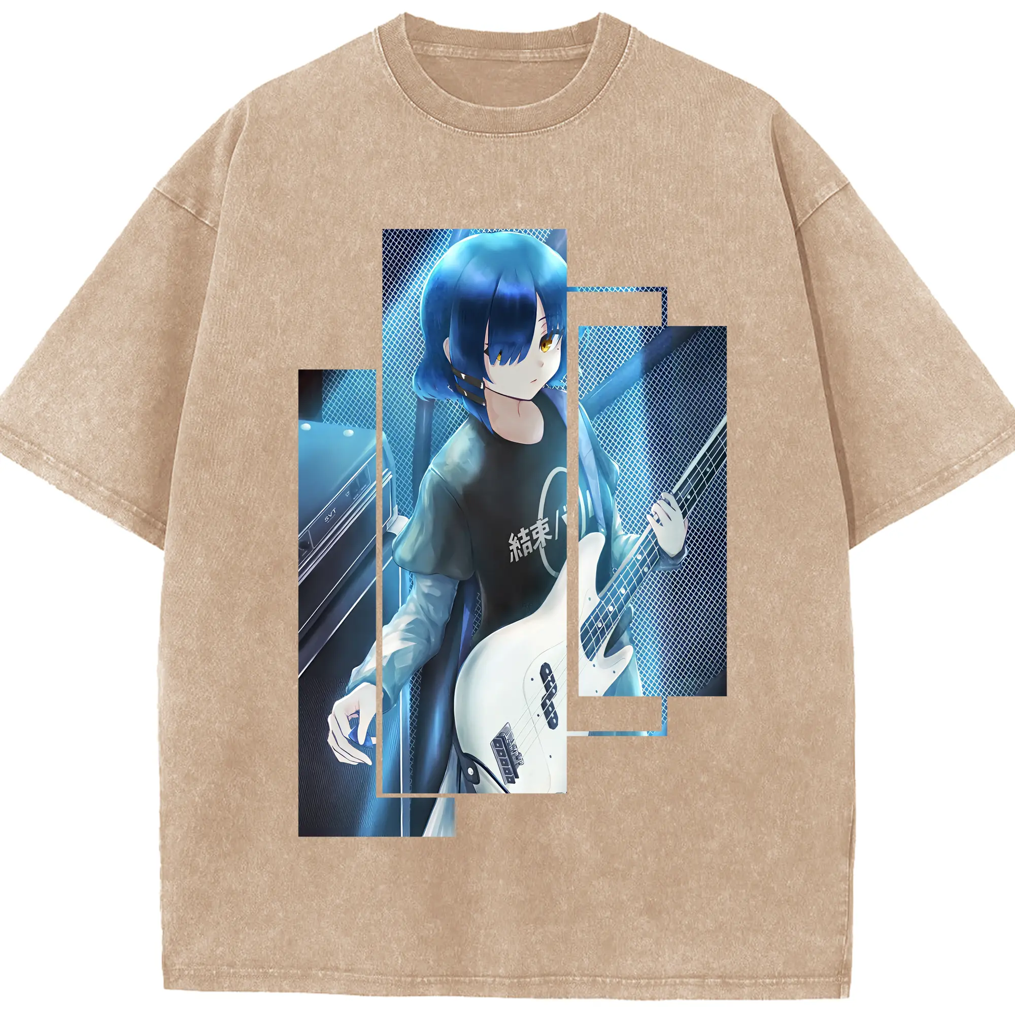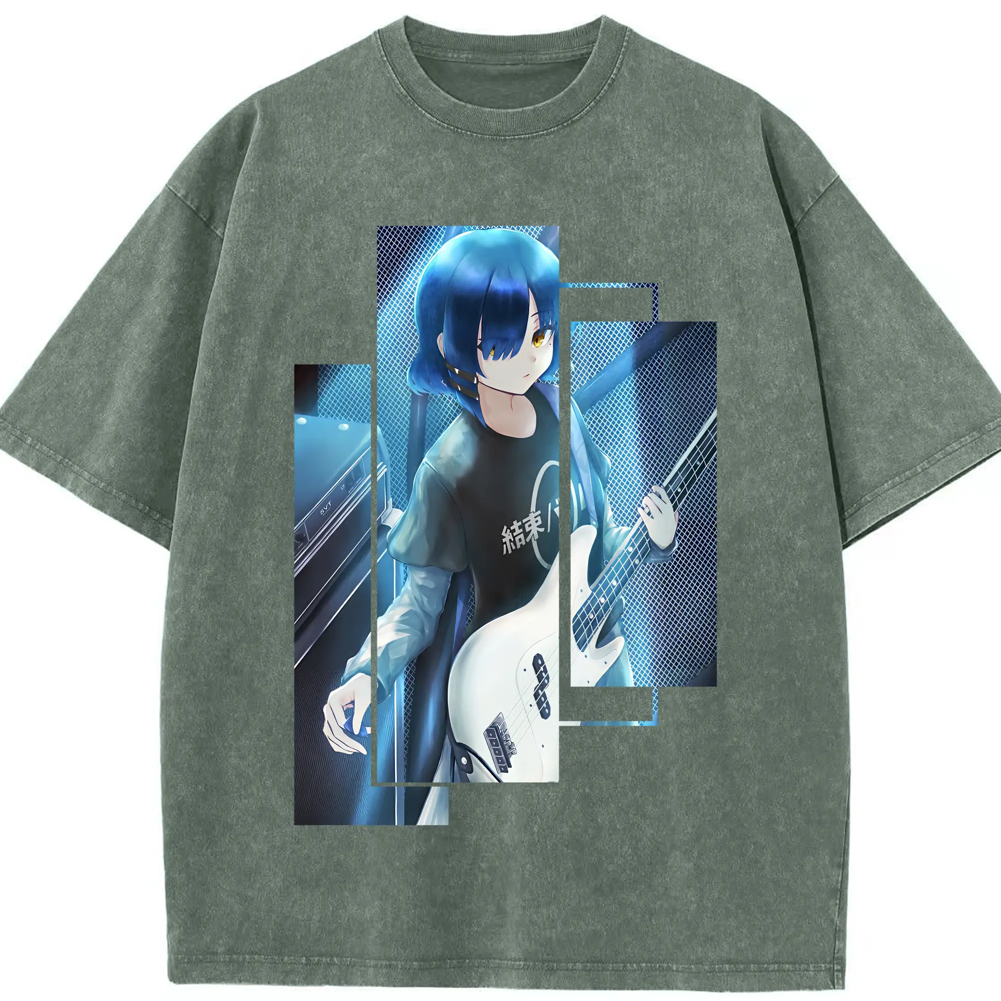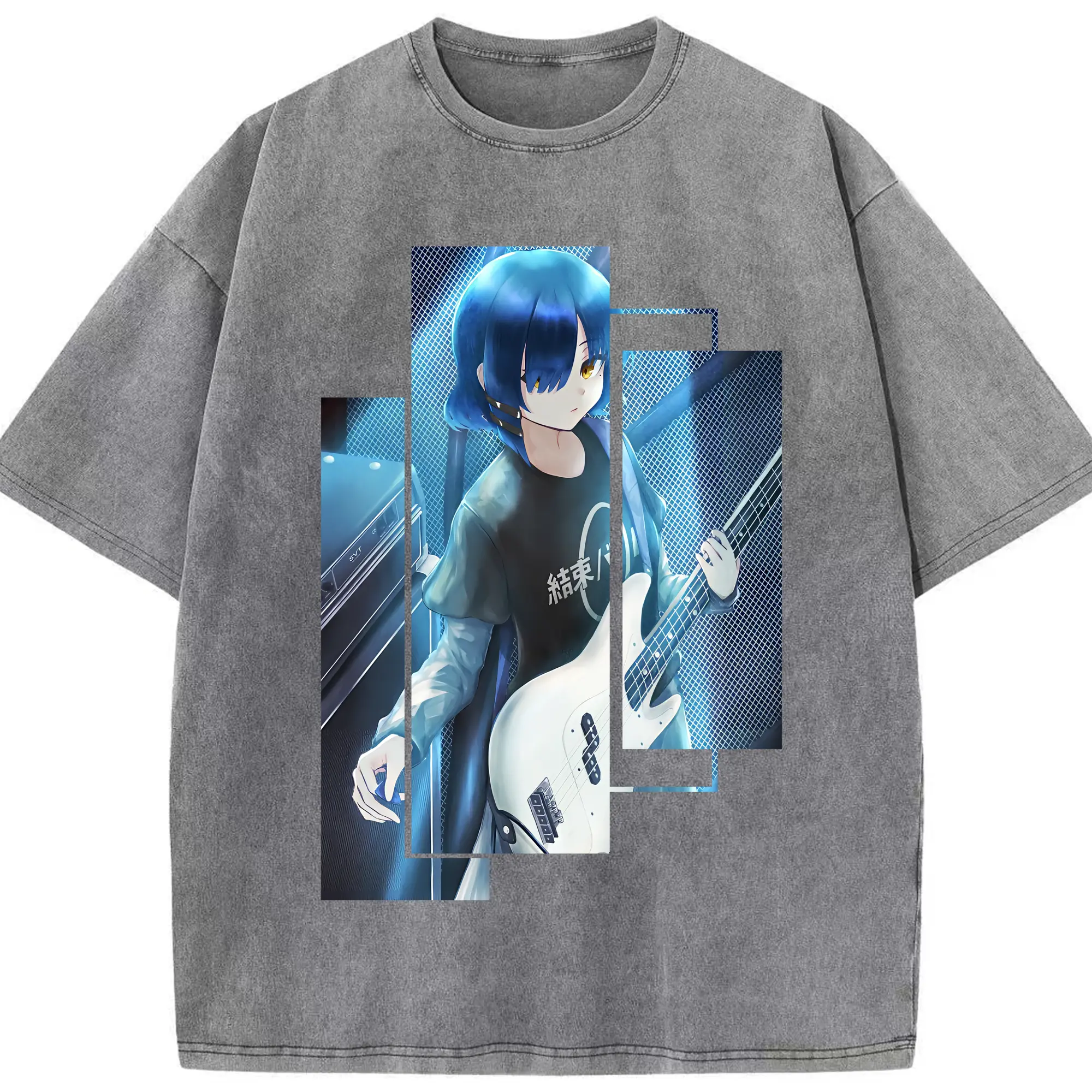 ぼっちざろっく! グッズ,山田リョウ - 綿100% ヴィンテージ風 半袖Tシャツ ・ 背面プリント ・ 柔らか肌触り ・ 通気性 快適 ・ スポーツ カジュアル 外出用