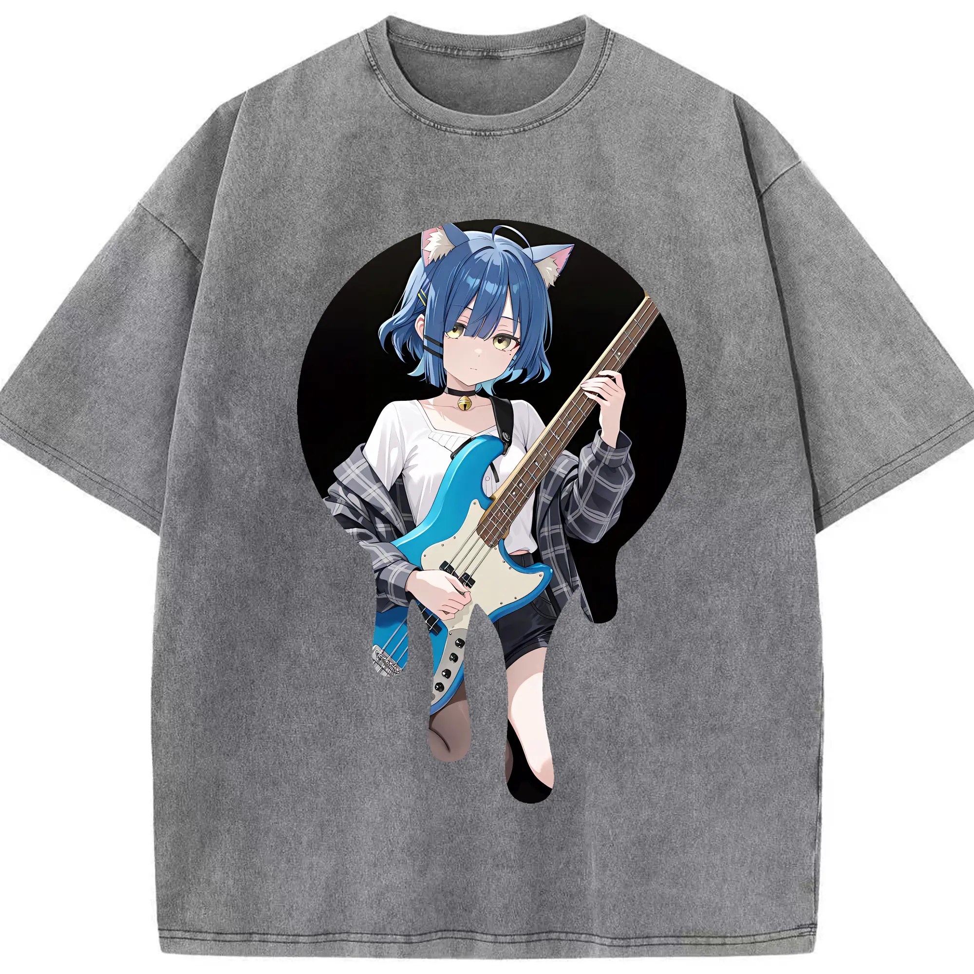 ぼっちざろっく! グッズ,山田リョウ - 綿100% ヴィンテージ風 半袖Tシャツ ・ 背面プリント ・ 柔らか肌触り ・ 通気性 快適 ・ スポーツ カジュアル 外出用