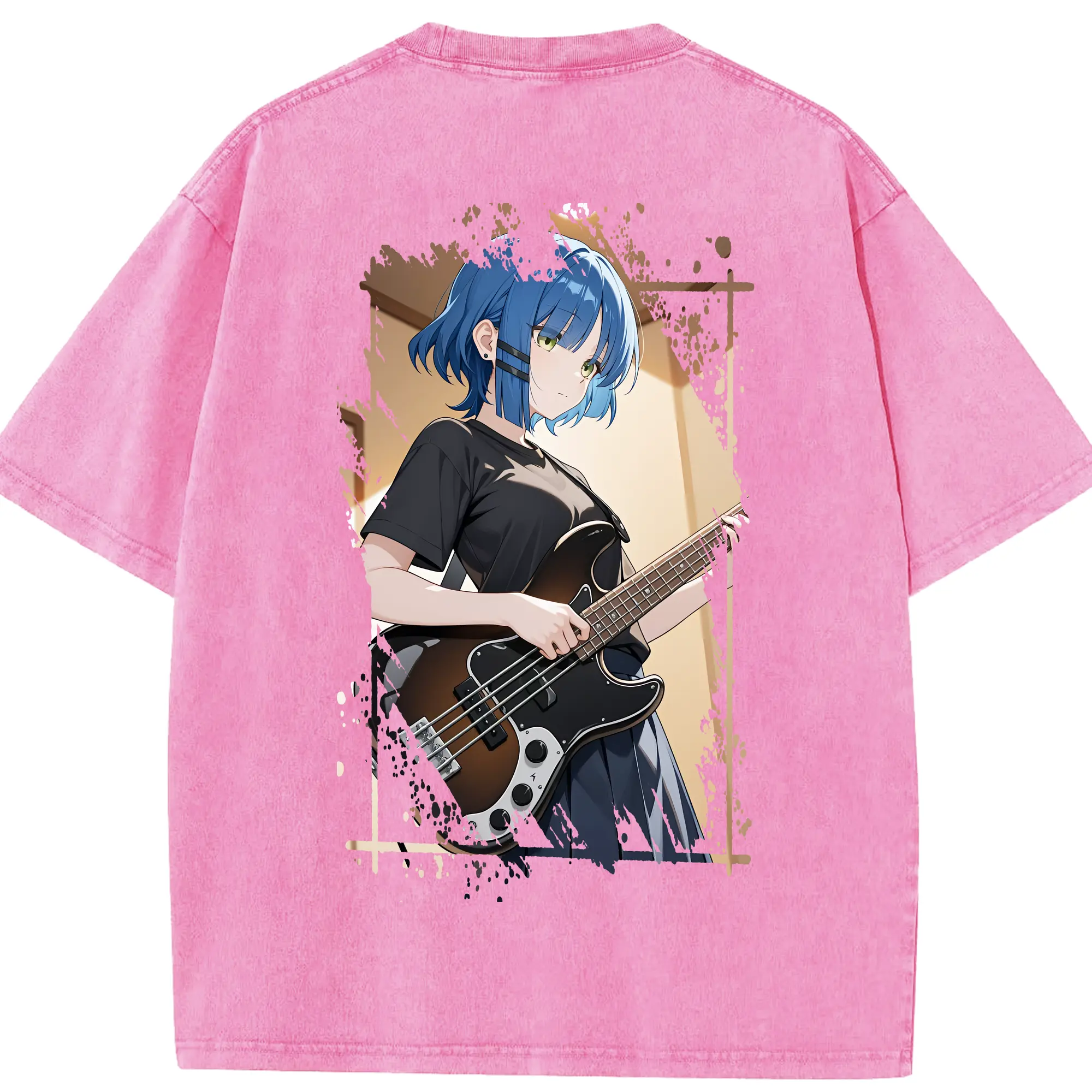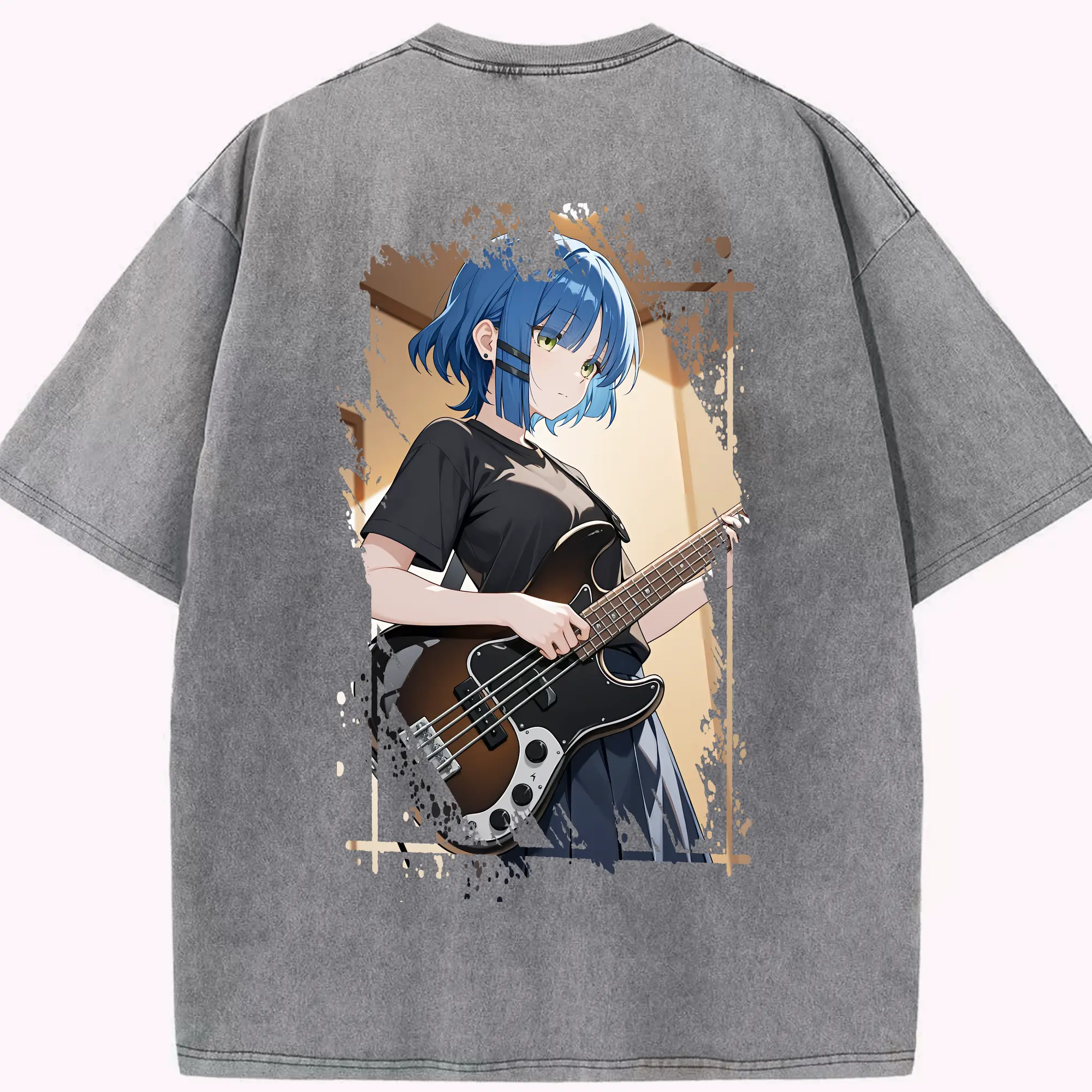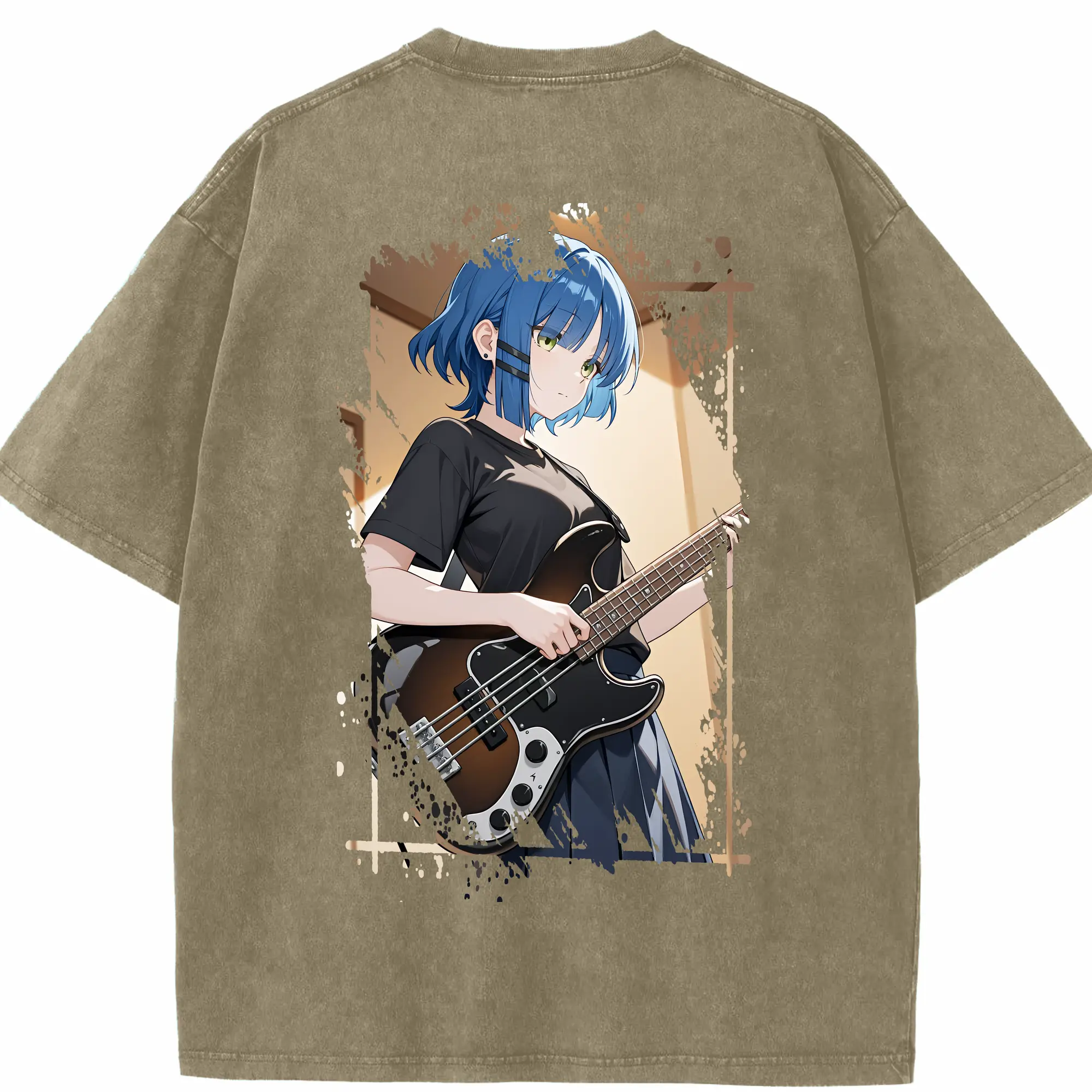 ぼっちざろっく! グッズ,山田リョウ - 綿100% ヴィンテージ風 半袖Tシャツ ・ フロントプリント ・ 柔らか肌触り ・ 通気性 快適 ・ スポーツ カジュアル 外出用