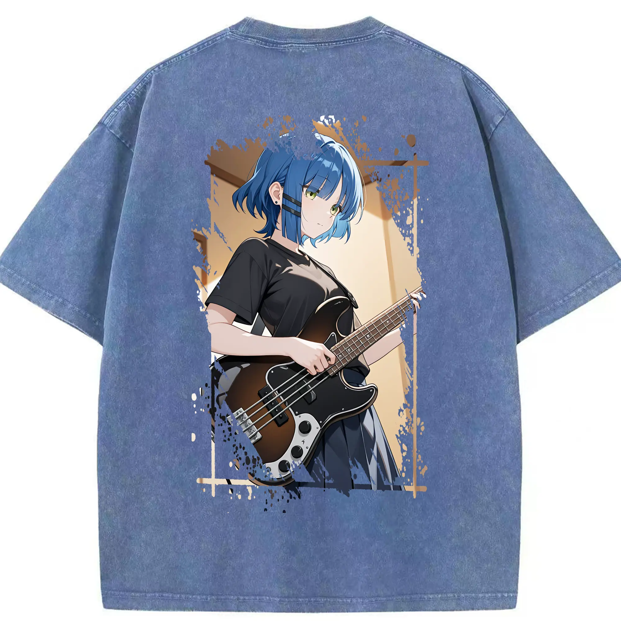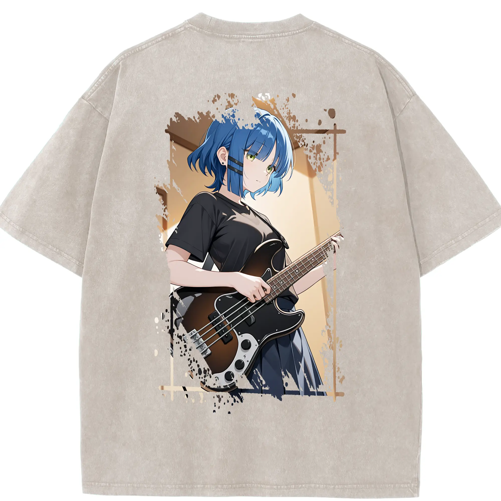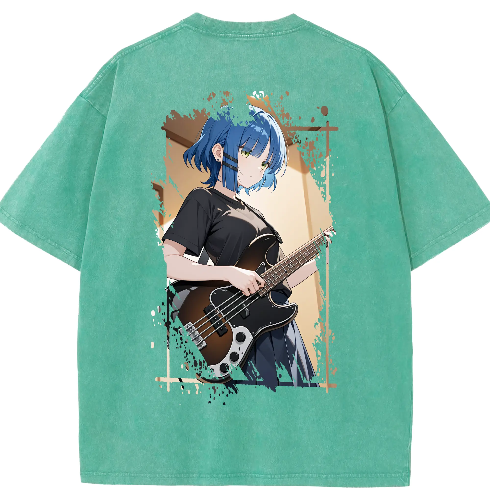 ぼっちざろっく! グッズ,山田リョウ - 綿100% ヴィンテージ風 半袖Tシャツ ・ フロントプリント ・ 柔らか肌触り ・ 通気性 快適 ・ スポーツ カジュアル 外出用