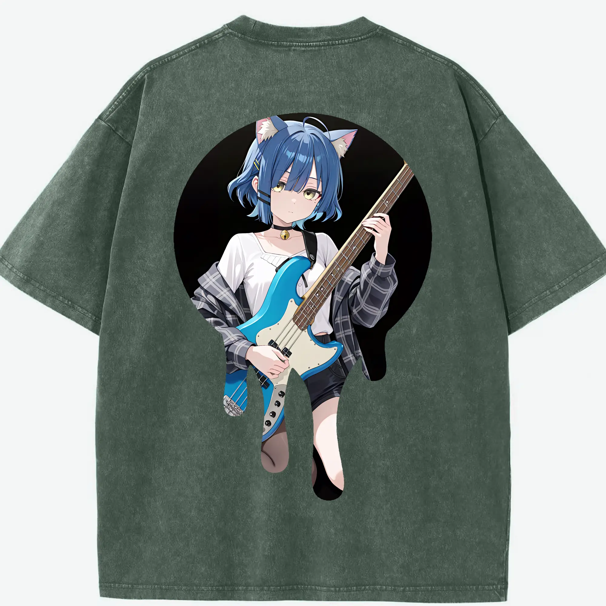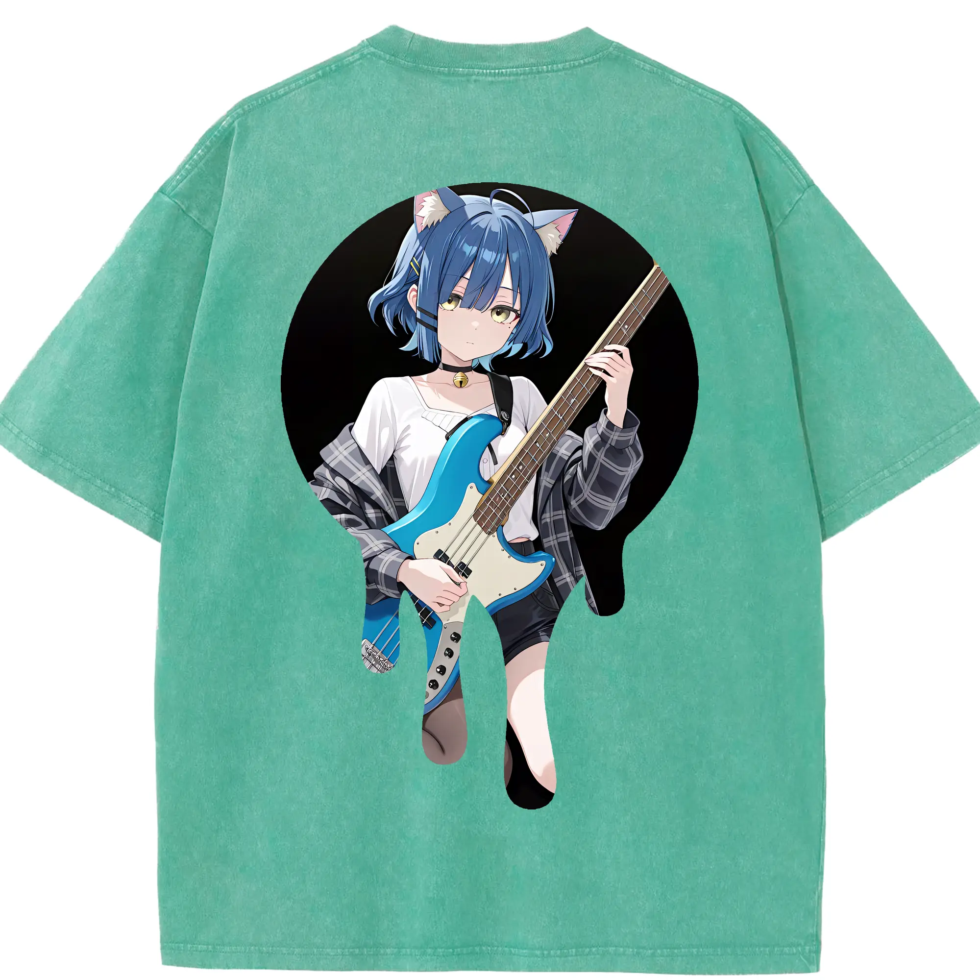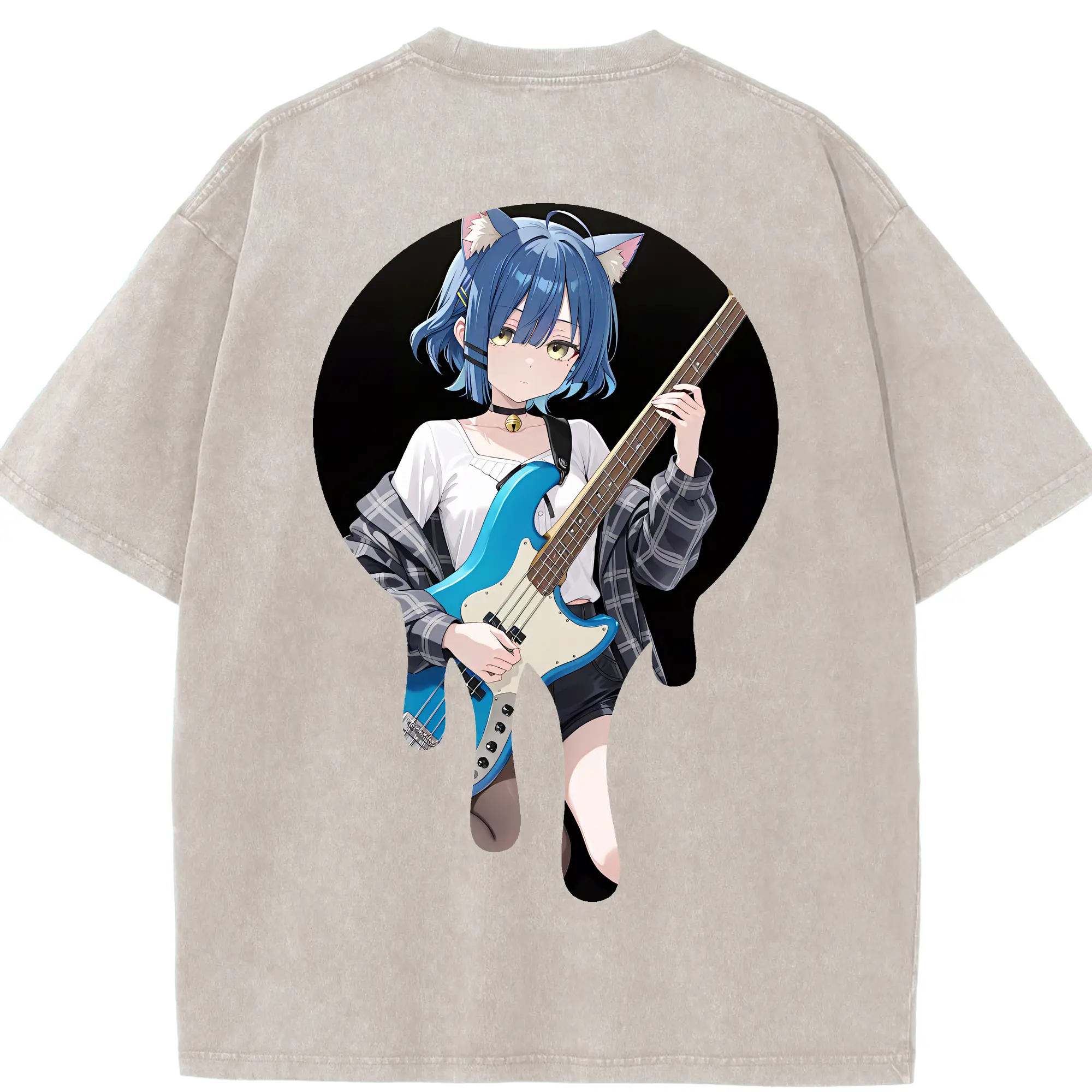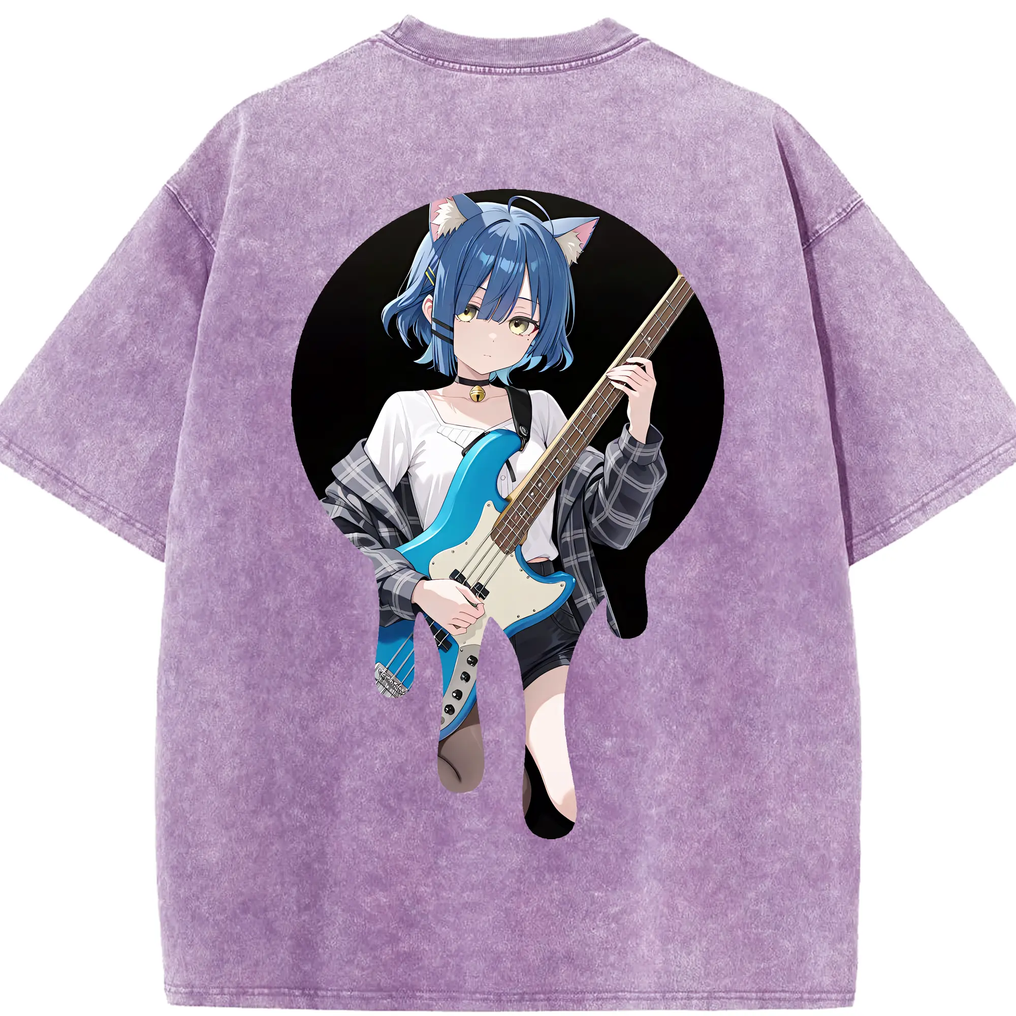 ぼっちざろっく! グッズ,山田リョウ - 綿100% ヴィンテージ風 半袖Tシャツ ・ 背面プリント ・ 柔らか肌触り ・ 通気性 快適 ・ スポーツ カジュアル 外出用