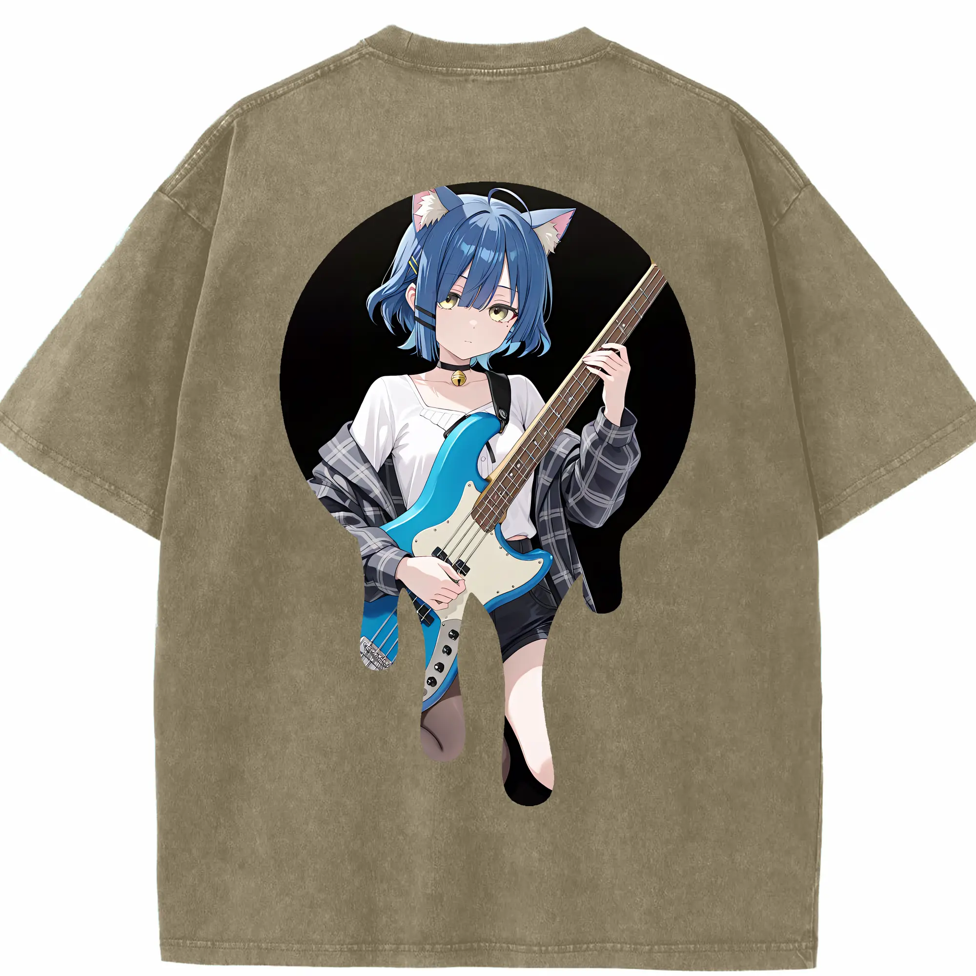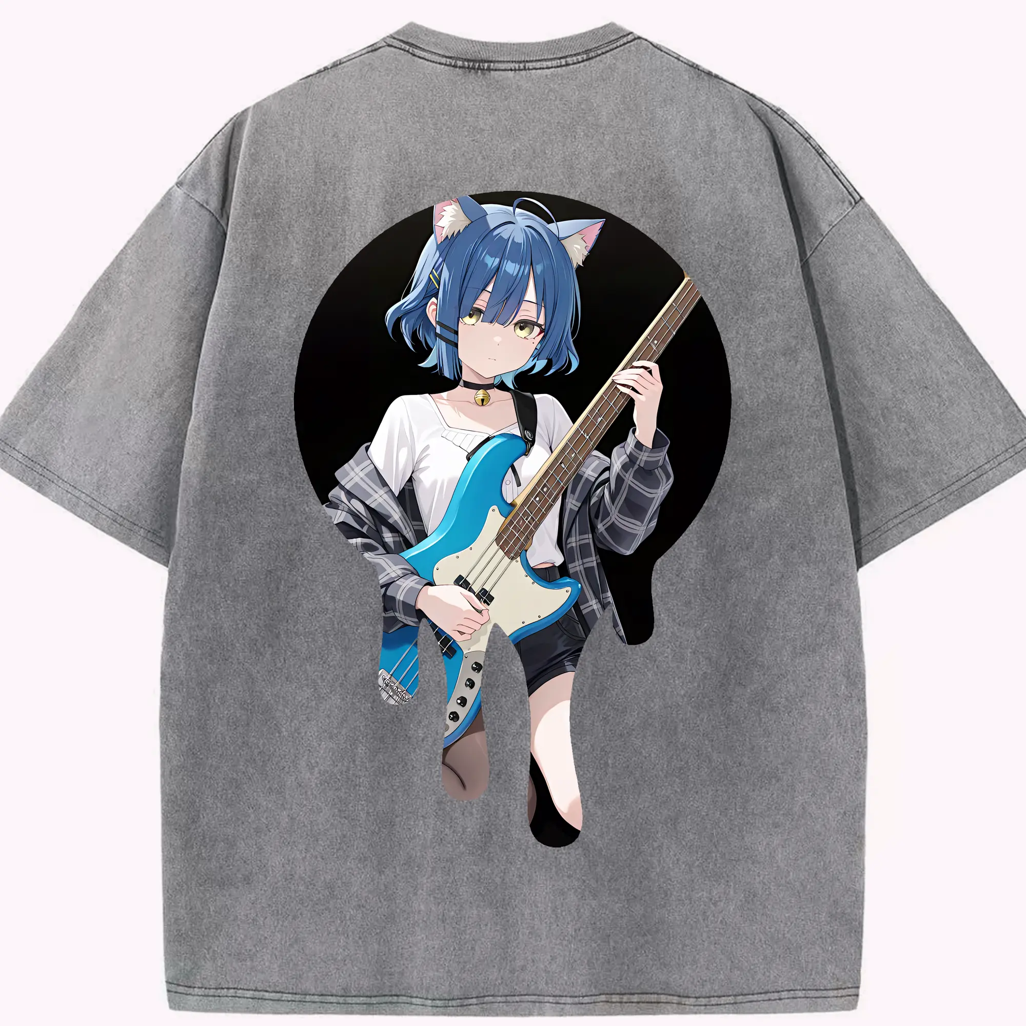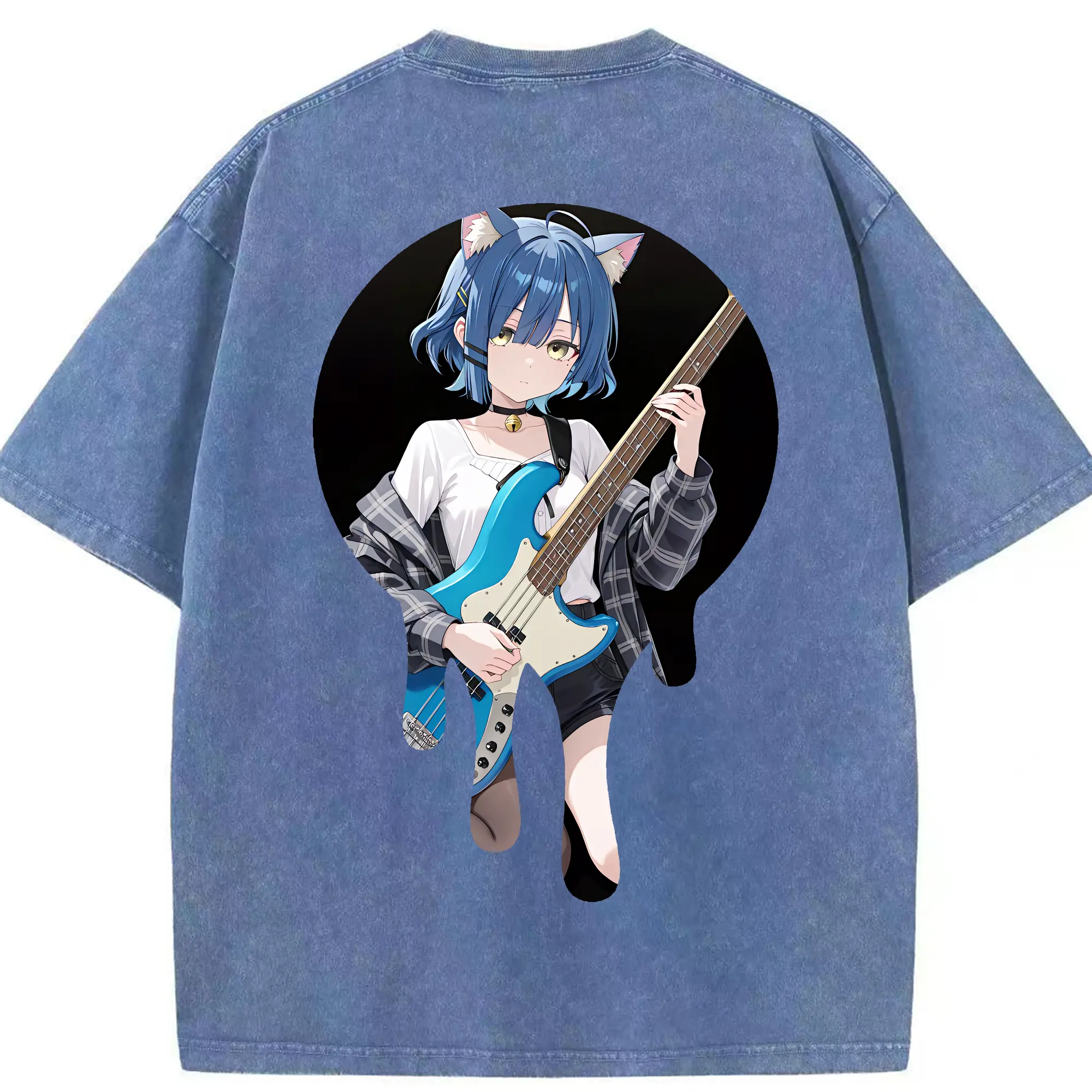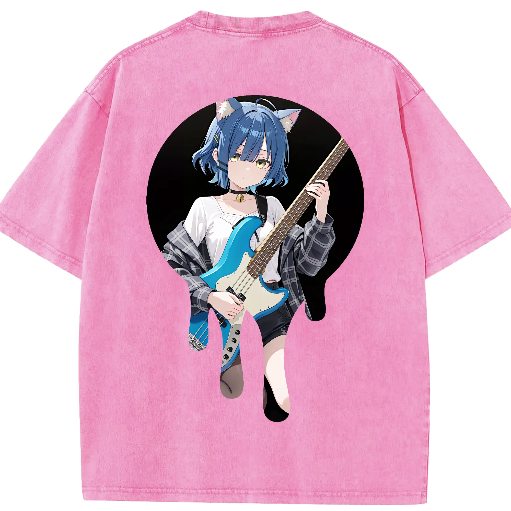 ぼっちざろっく! グッズ,山田リョウ - 綿100% ヴィンテージ風 半袖Tシャツ ・ フロントプリント ・ 柔らか肌触り ・ 通気性 快適 ・ スポーツ カジュアル 外出用