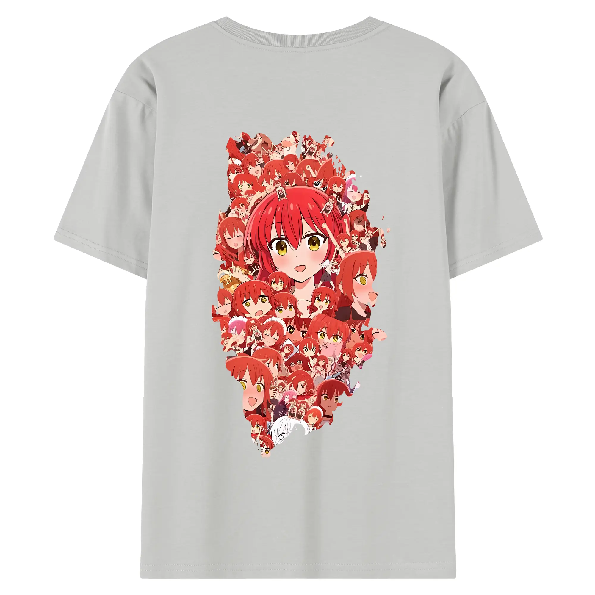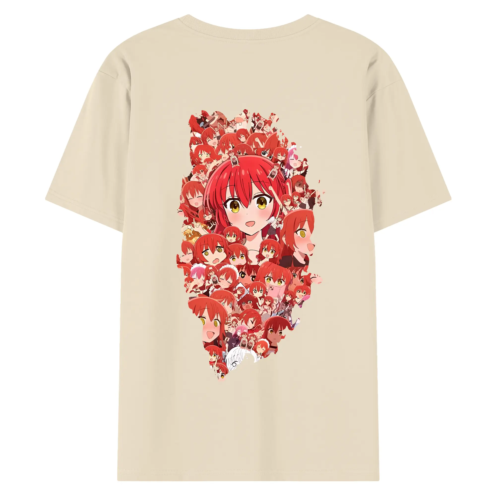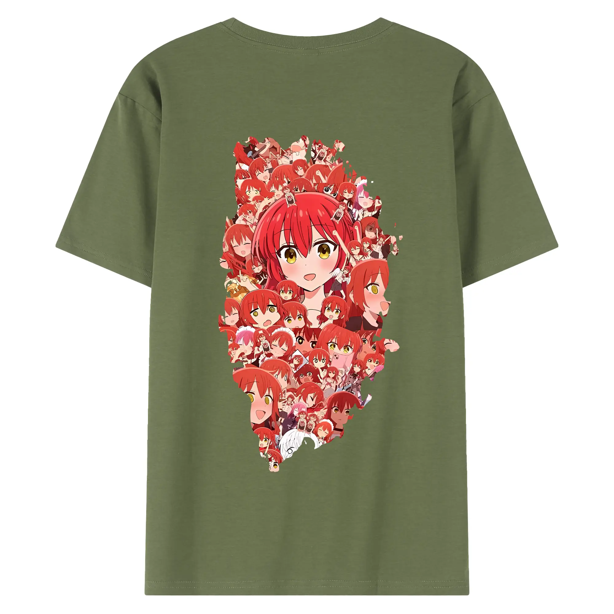 ぼっちざろっく! グッズ,喜多郁代 - 綿100% ヴィンテージ風 半袖Tシャツ ・ 背面プリント ・ 柔らか肌触り ・ 通気性 快適 ・ スポーツ カジュアル 外出用