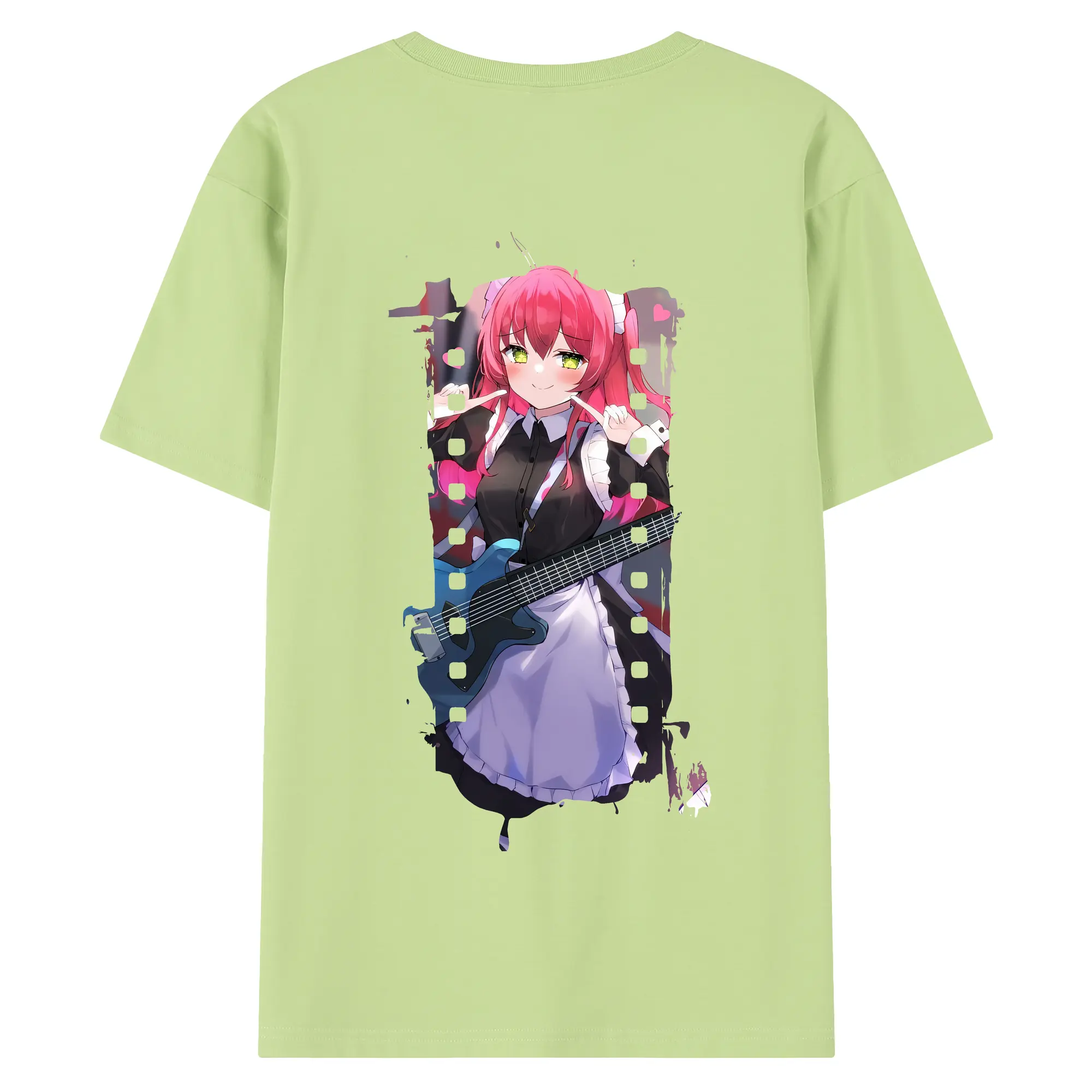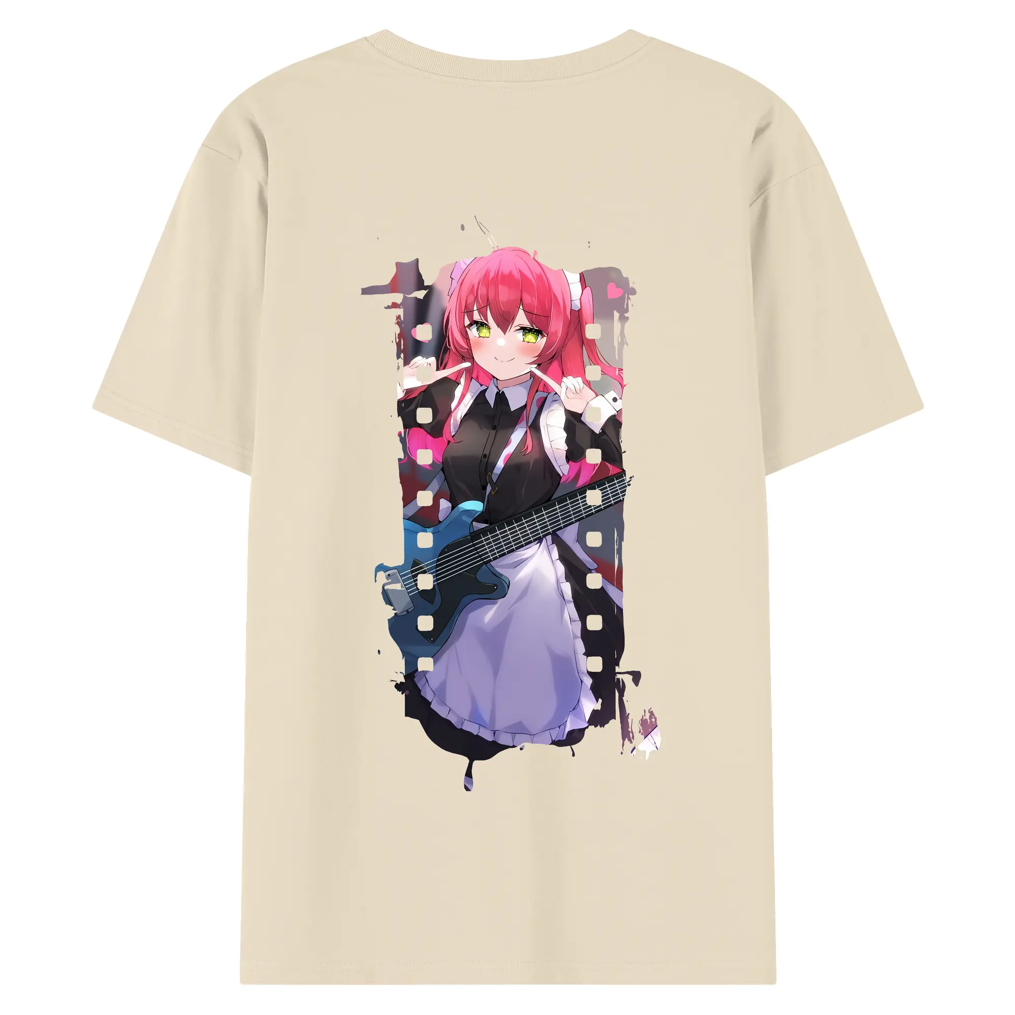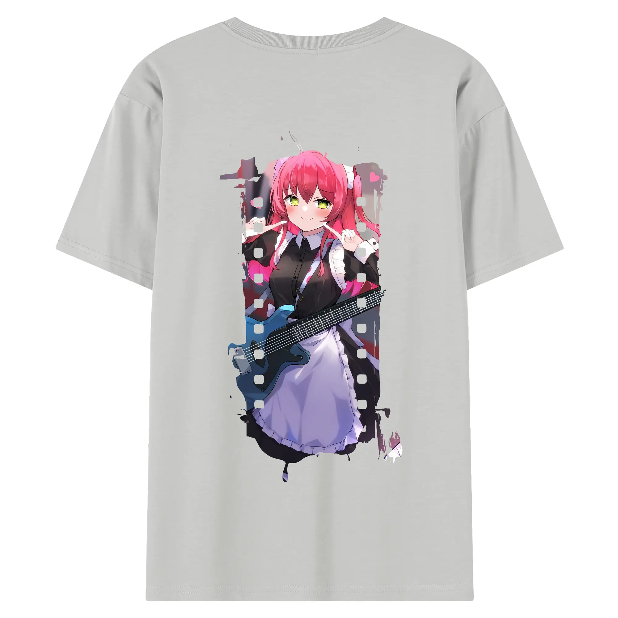 ぼっちざろっく! グッズ,喜多郁代 - 綿100% ヴィンテージ風 半袖Tシャツ ・ 背面プリント ・ 柔らか肌触り ・ 通気性 快適 ・ スポーツ カジュアル 外出用