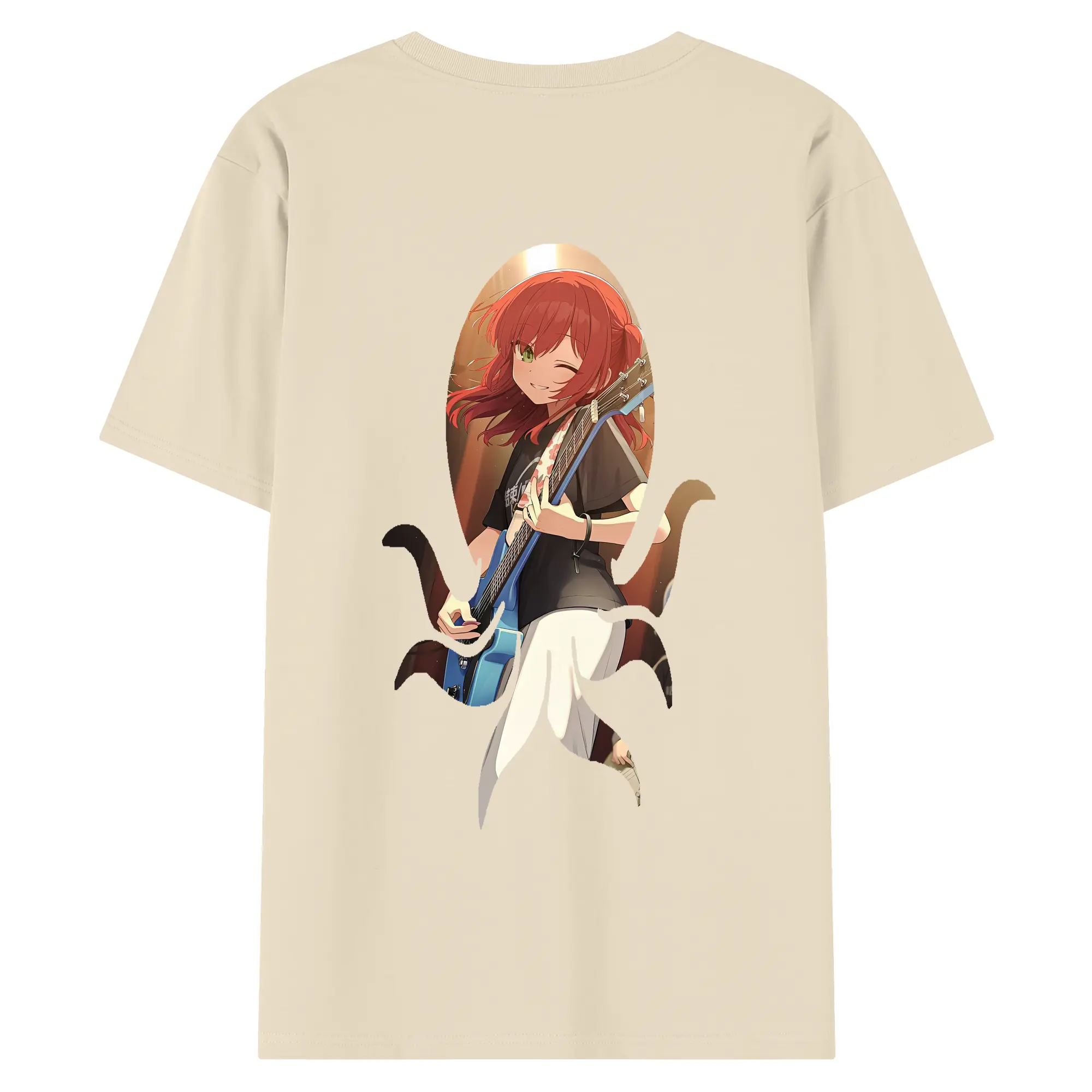 ぼっちざろっく! グッズ,喜多郁代 - 綿100% ヴィンテージ風 半袖Tシャツ ・ 背面プリント ・ 柔らか肌触り ・ 通気性 快適 ・ スポーツ カジュアル 外出用