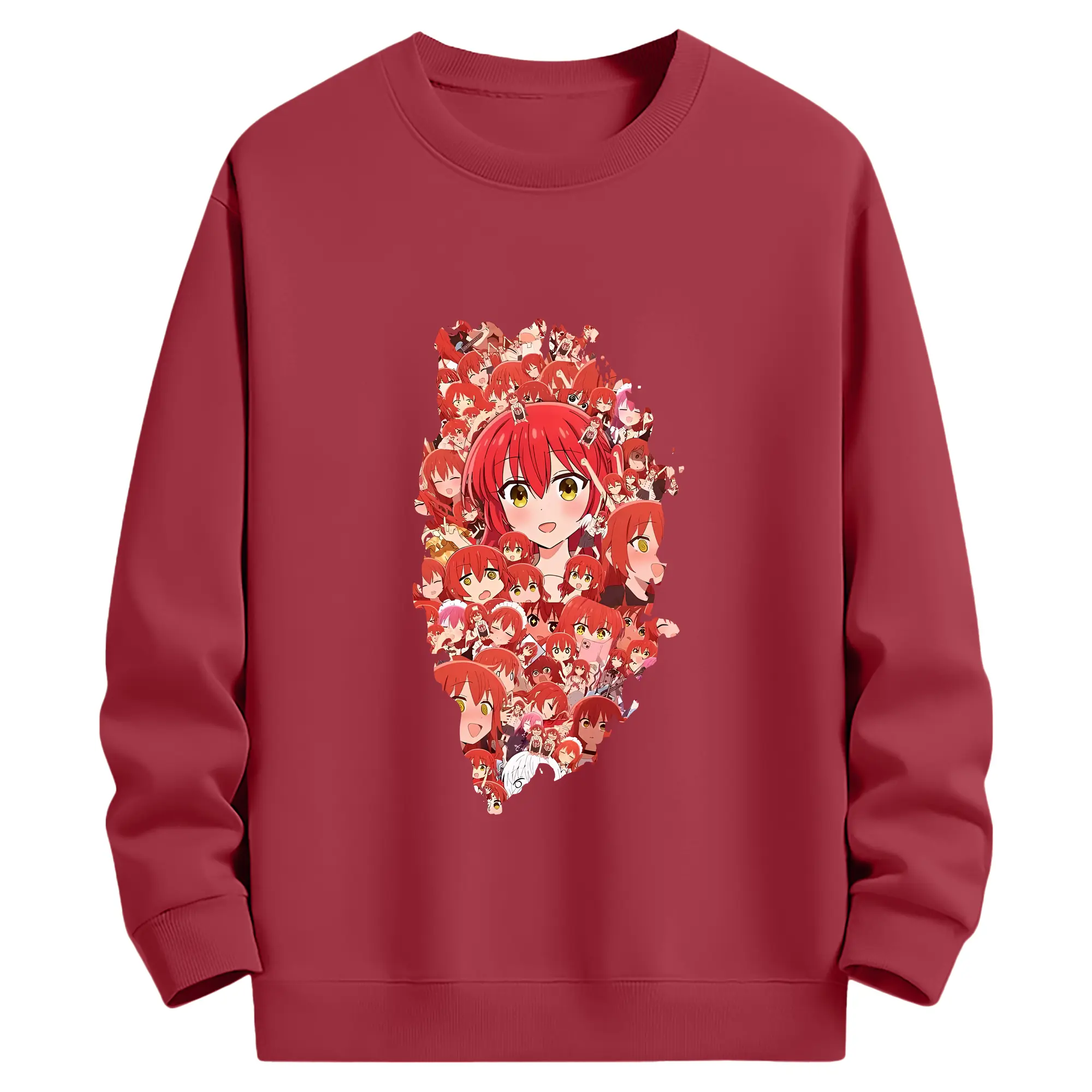 ぼっちざろっく! グッズ,喜多郁代 - 薄手 クルーネック スウェット 裏毛260g · ポリエステル 春秋向け カジュアル 男女兼用 · トレーナー デイリー スポーツ 散歩に最適