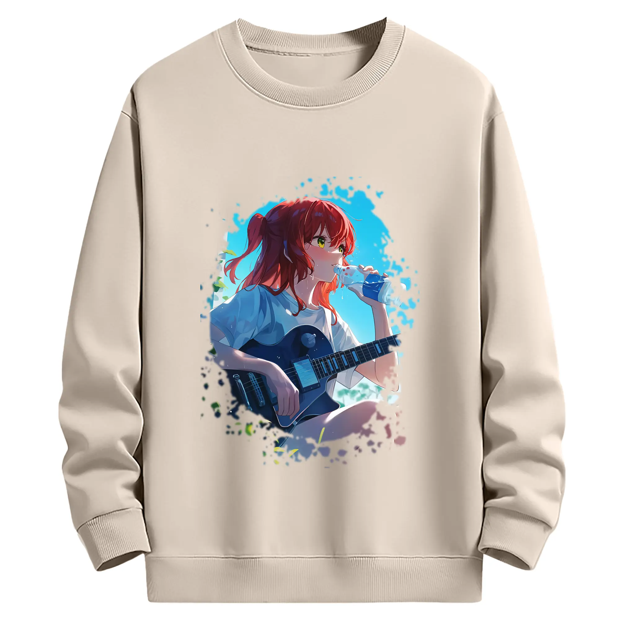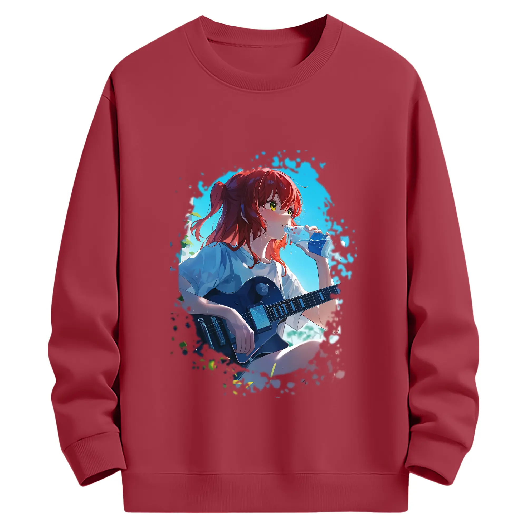ぼっちざろっく! グッズ,喜多郁代 - 薄手 クルーネック スウェット 裏毛260g · ポリエステル 春秋向け カジュアル 男女兼用 · トレーナー デイリー スポーツ 散歩に最適