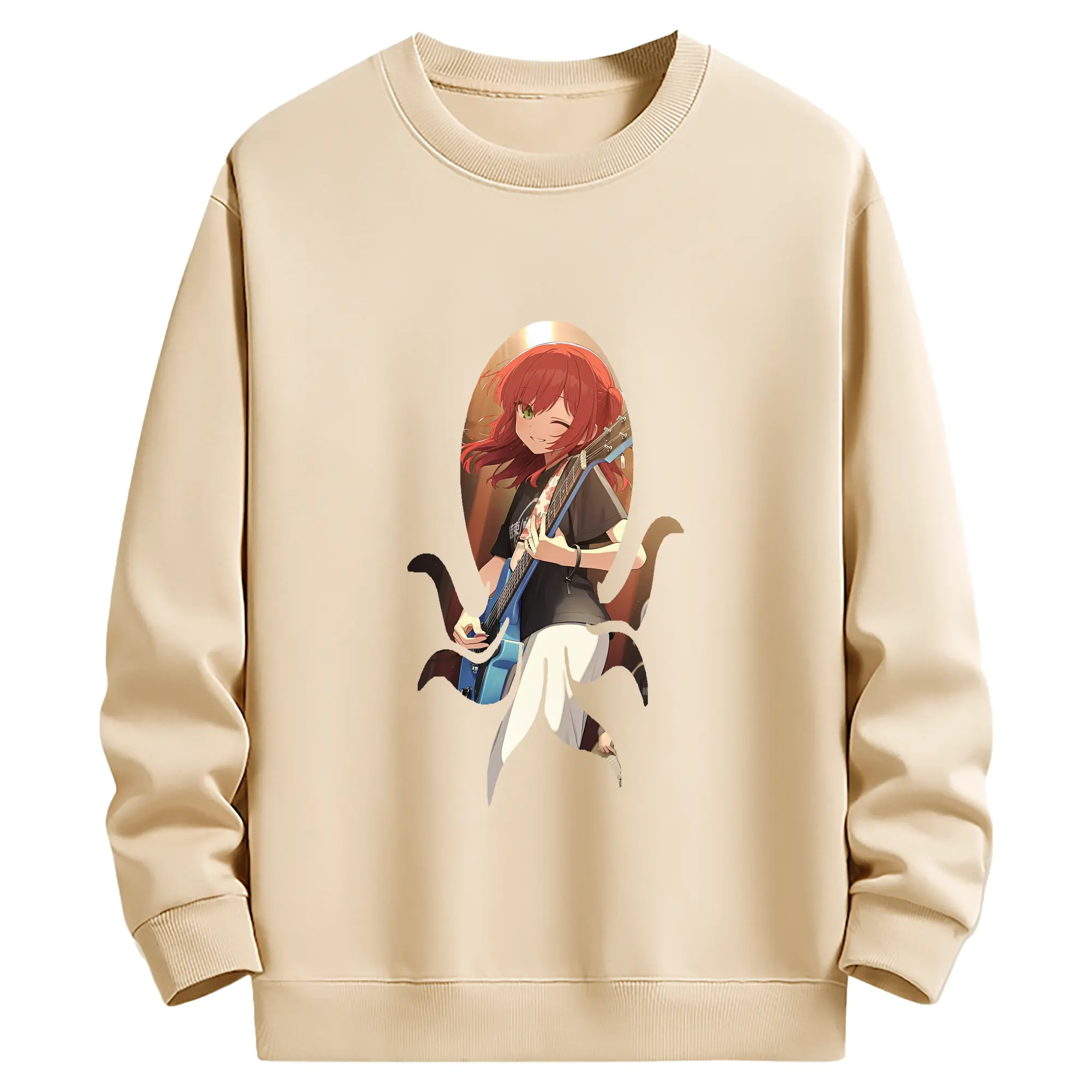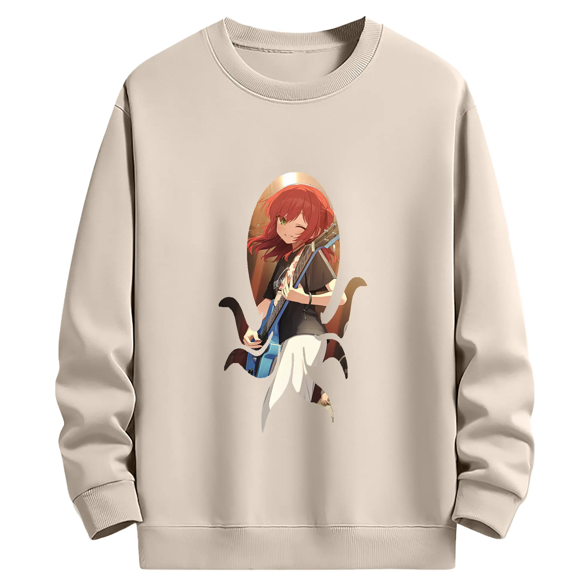 ぼっちざろっく! グッズ,喜多郁代 - 薄手 クルーネック スウェット 裏毛260g · ポリエステル 春秋向け カジュアル 男女兼用 · トレーナー デイリー スポーツ 散歩に最適