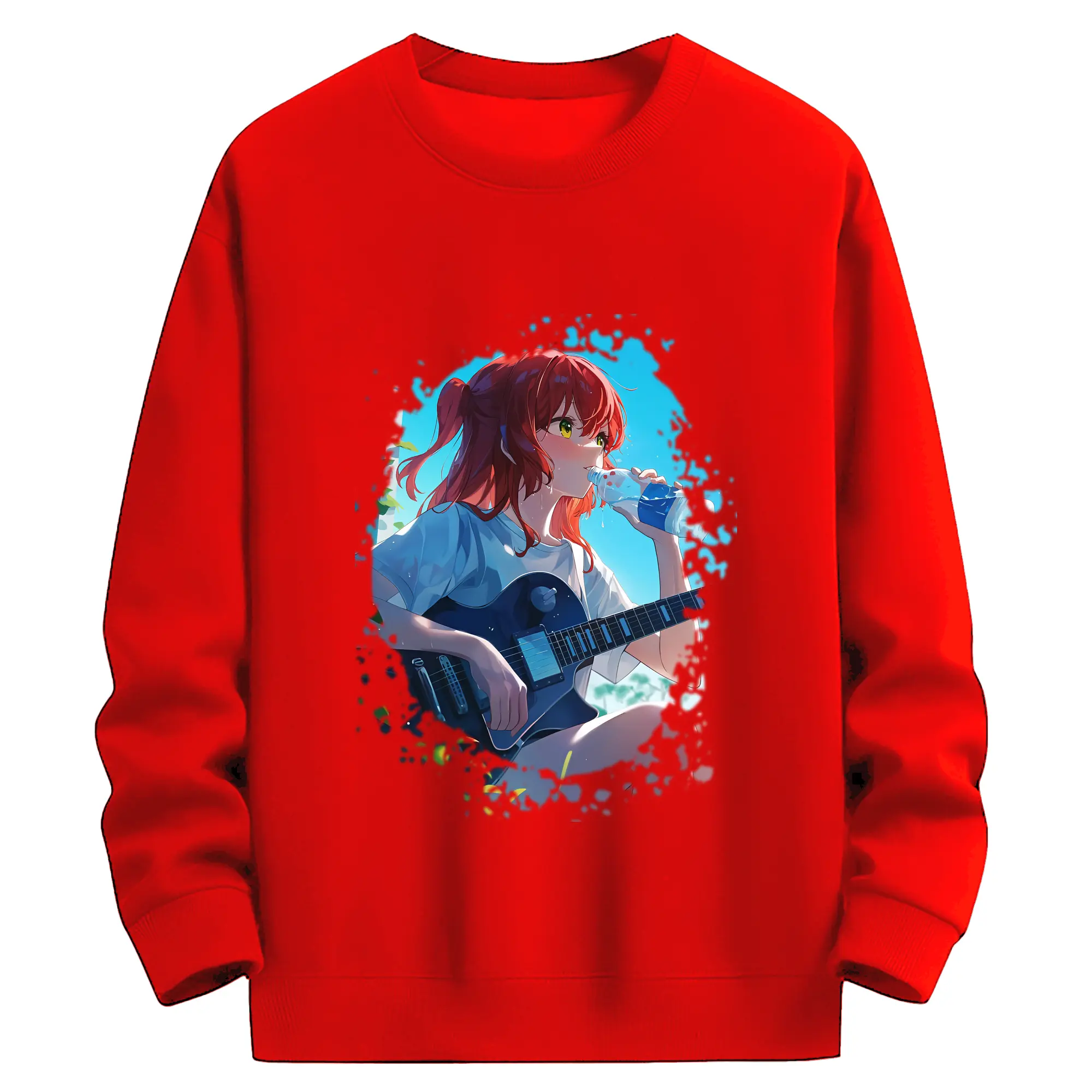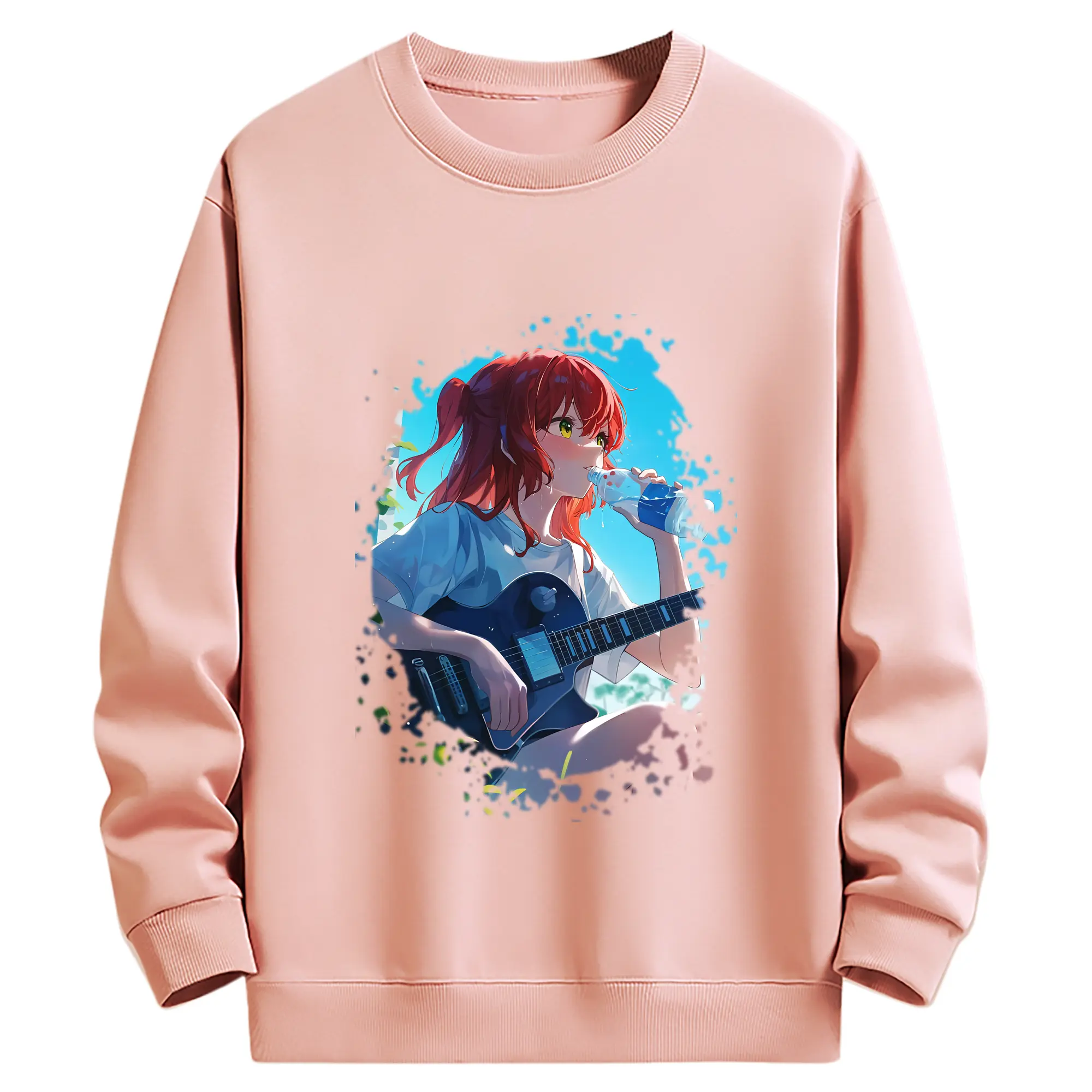 ぼっちざろっく! グッズ,喜多郁代 - 薄手 クルーネック スウェット 裏毛260g · ポリエステル 春秋向け カジュアル 男女兼用 · トレーナー デイリー スポーツ 散歩に最適