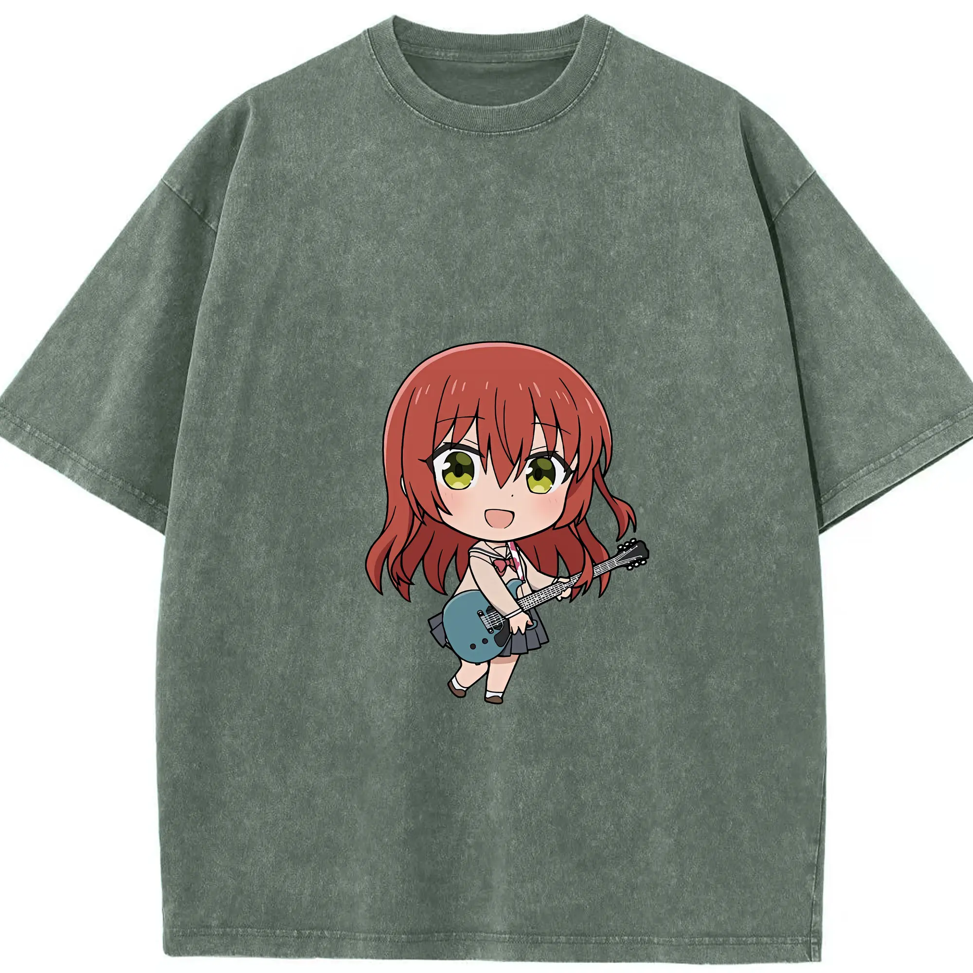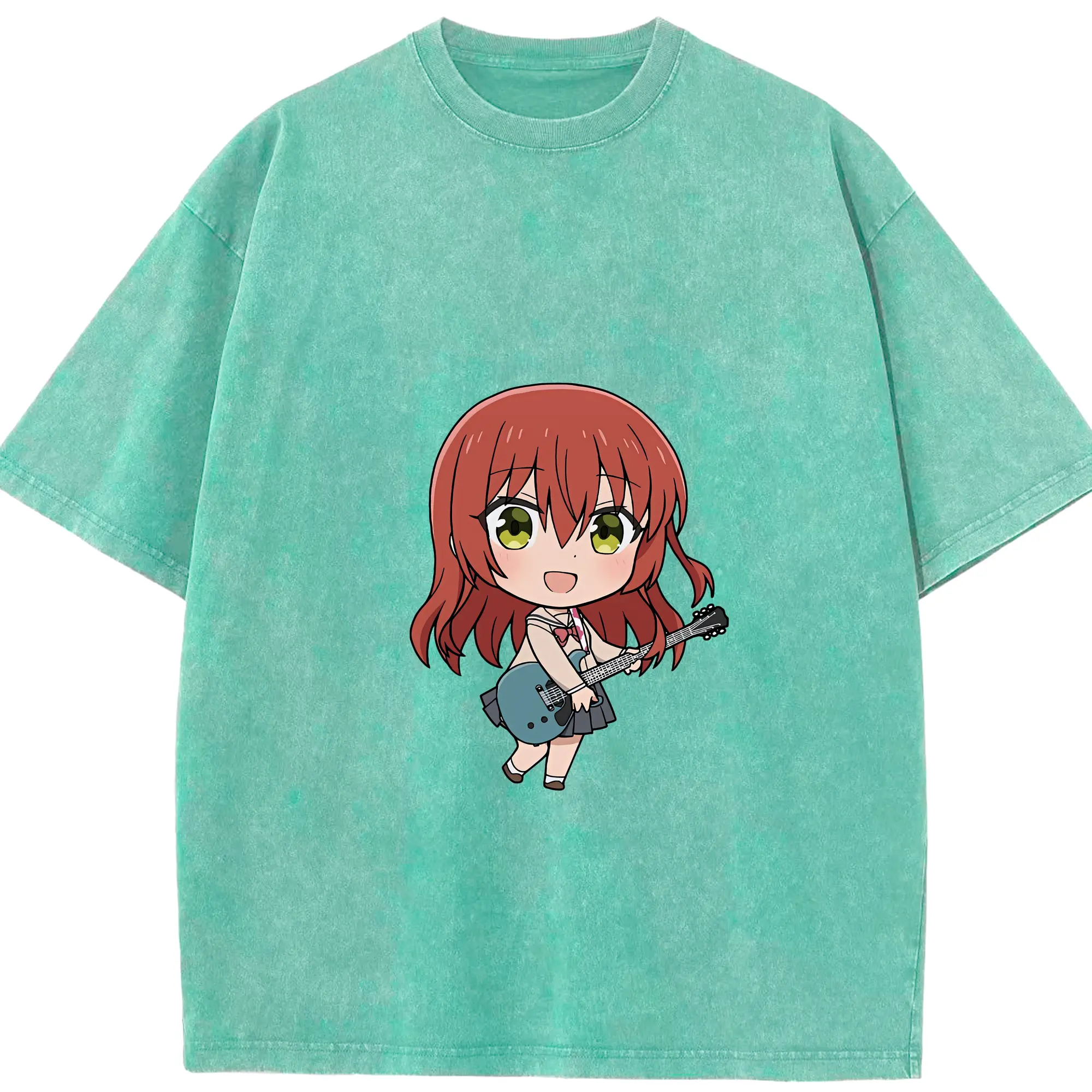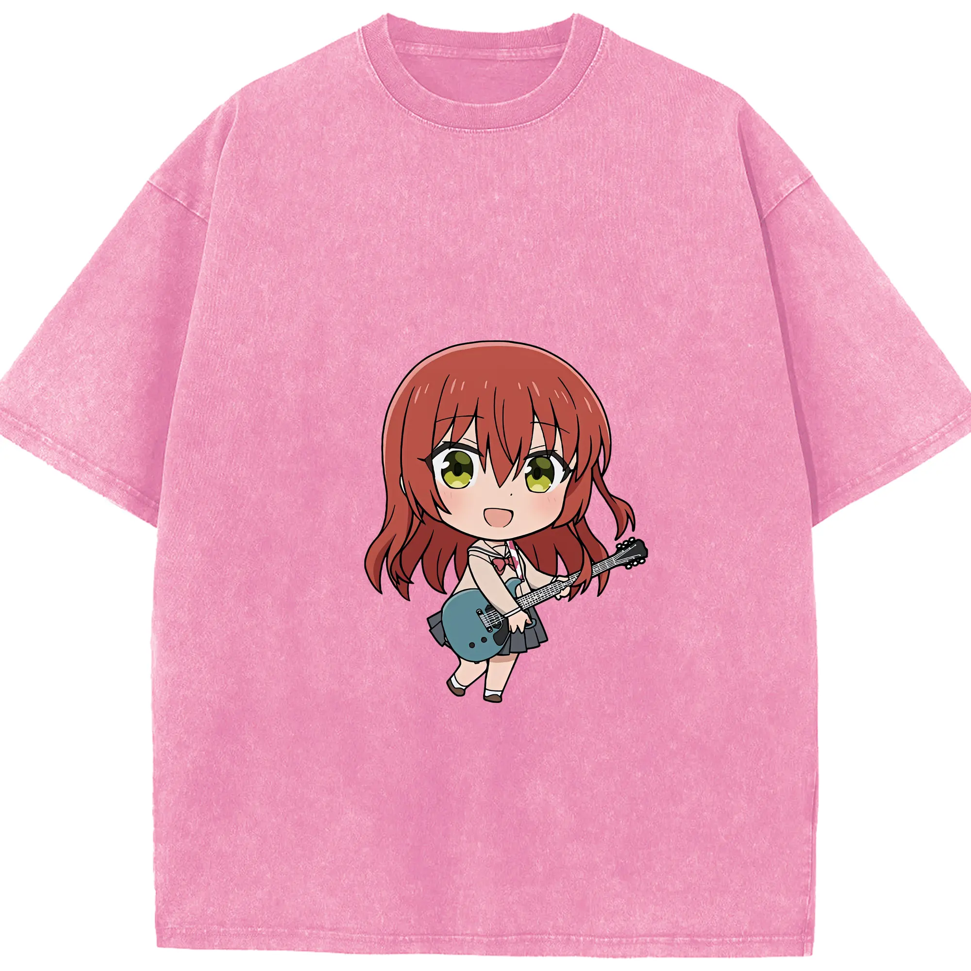 ぼっちざろっく! グッズ,喜多郁代 - 綿100% ヴィンテージ風 半袖Tシャツ ・ 背面プリント ・ 柔らか肌触り ・ 通気性 快適 ・ スポーツ カジュアル 外出用