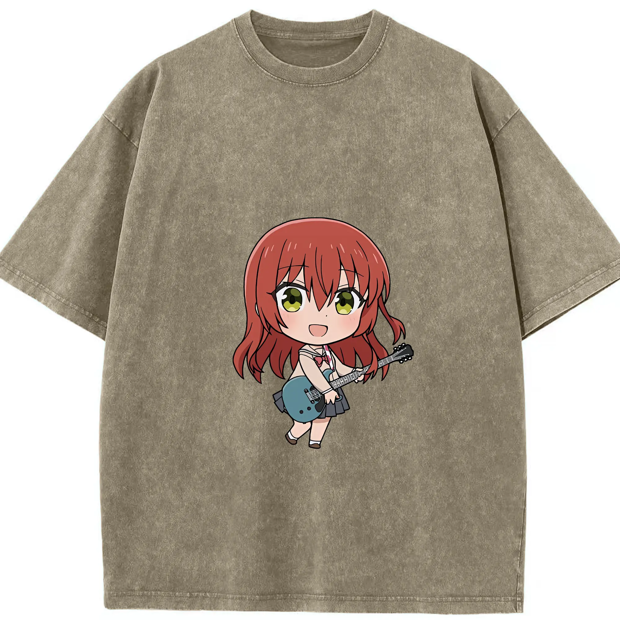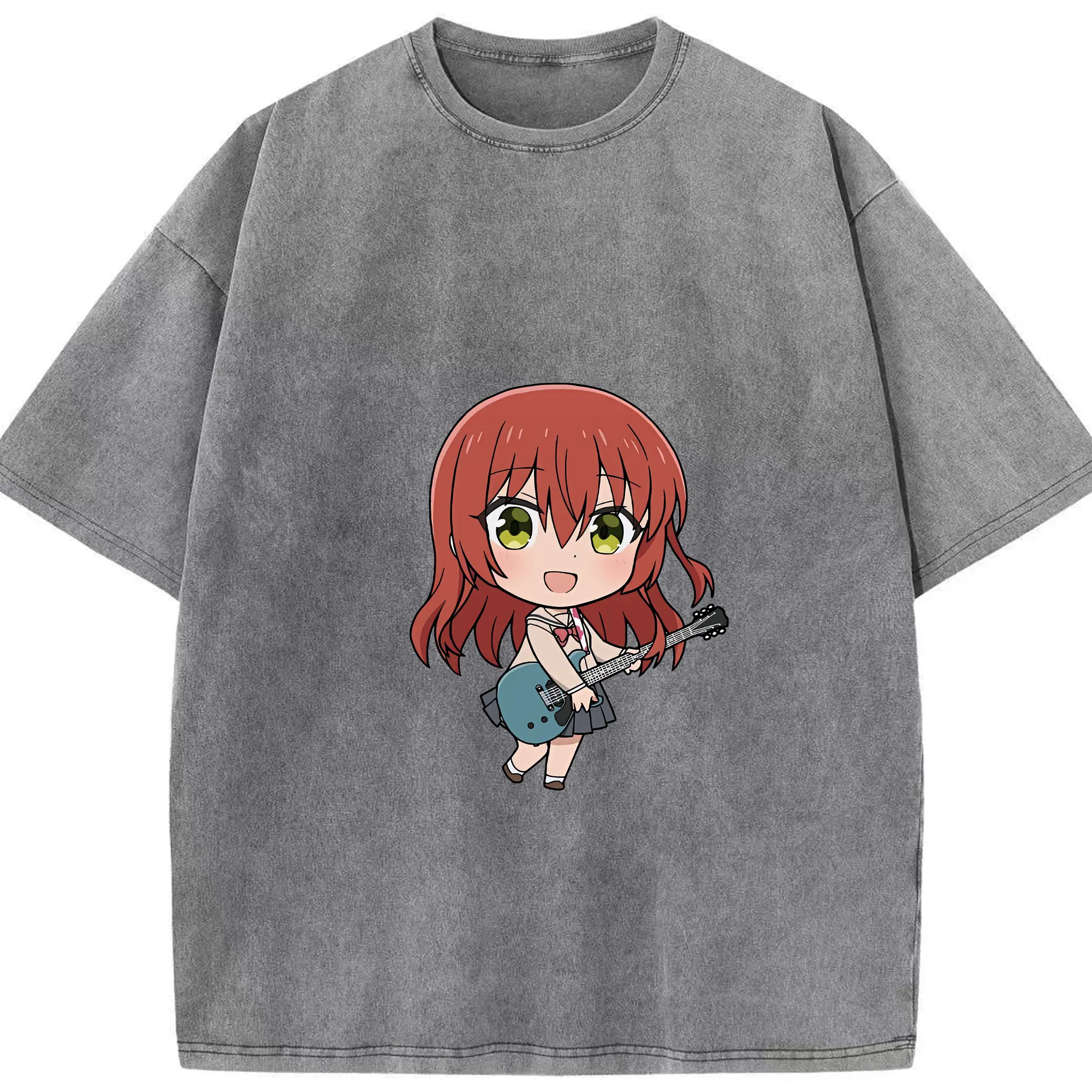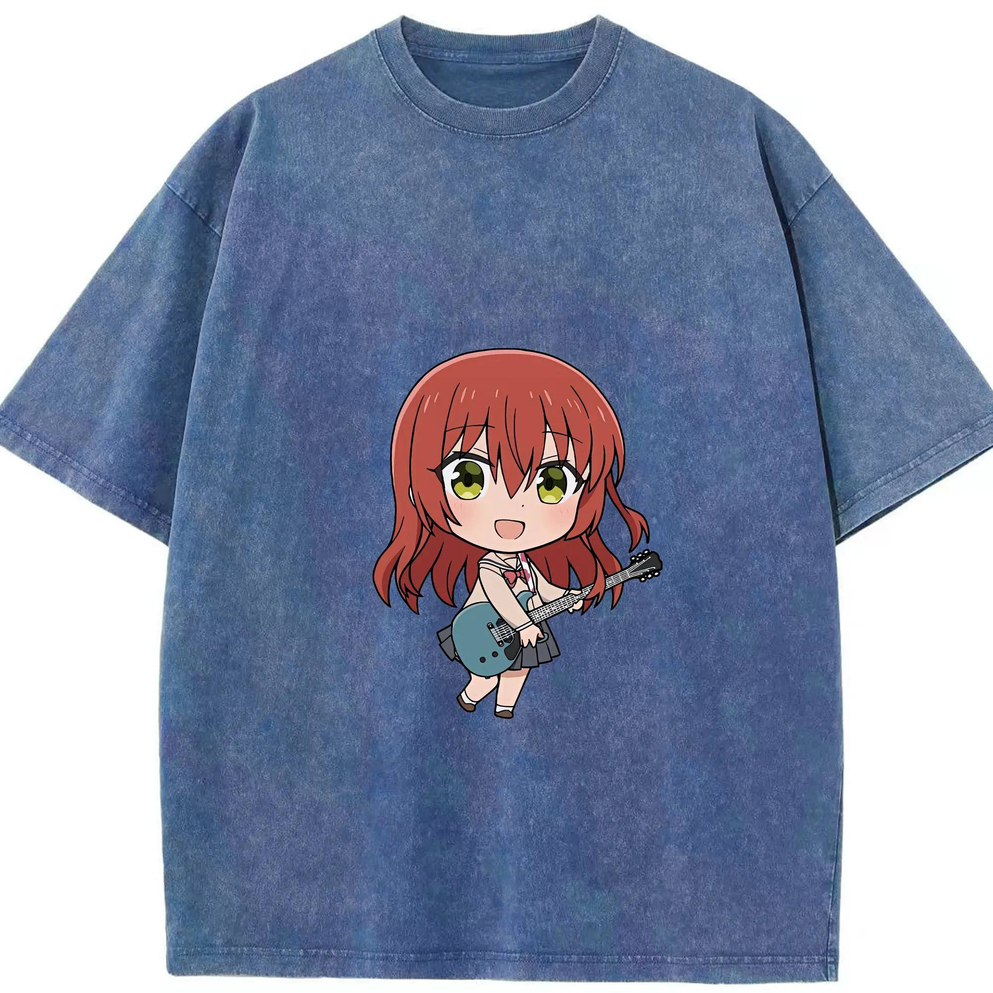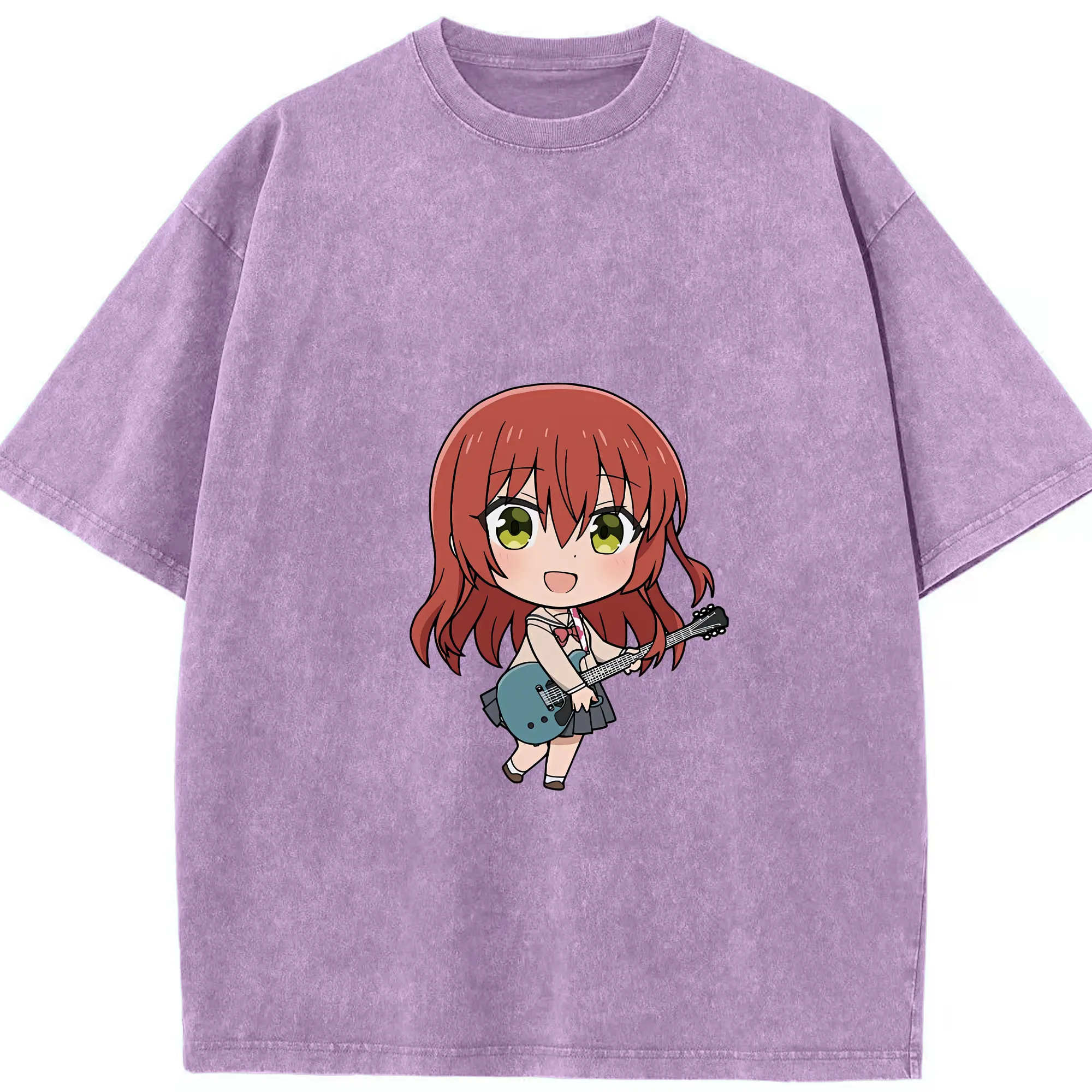 ぼっちざろっく! グッズ,喜多郁代 - 綿100% ヴィンテージ風 半袖Tシャツ ・ 背面プリント ・ 柔らか肌触り ・ 通気性 快適 ・ スポーツ カジュアル 外出用