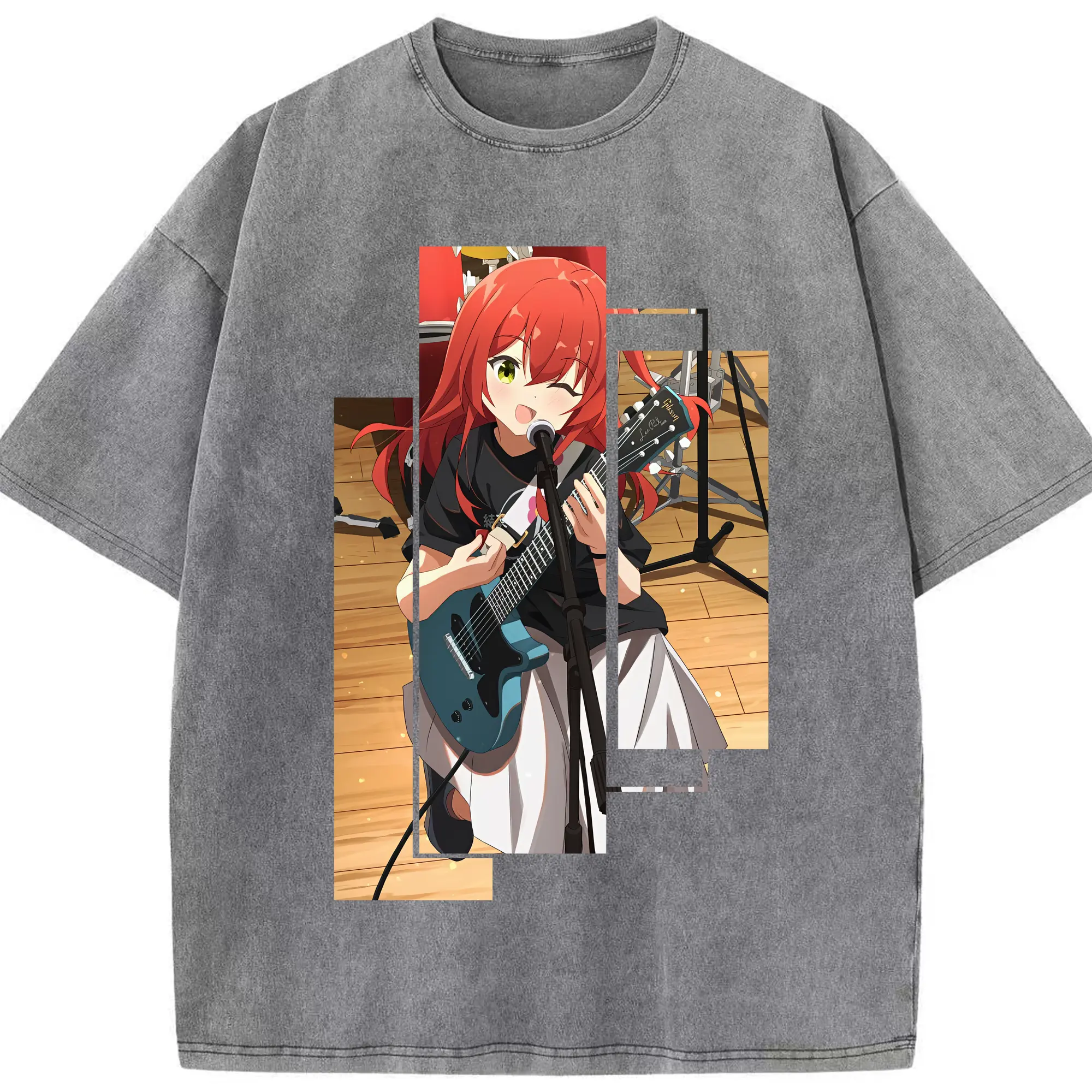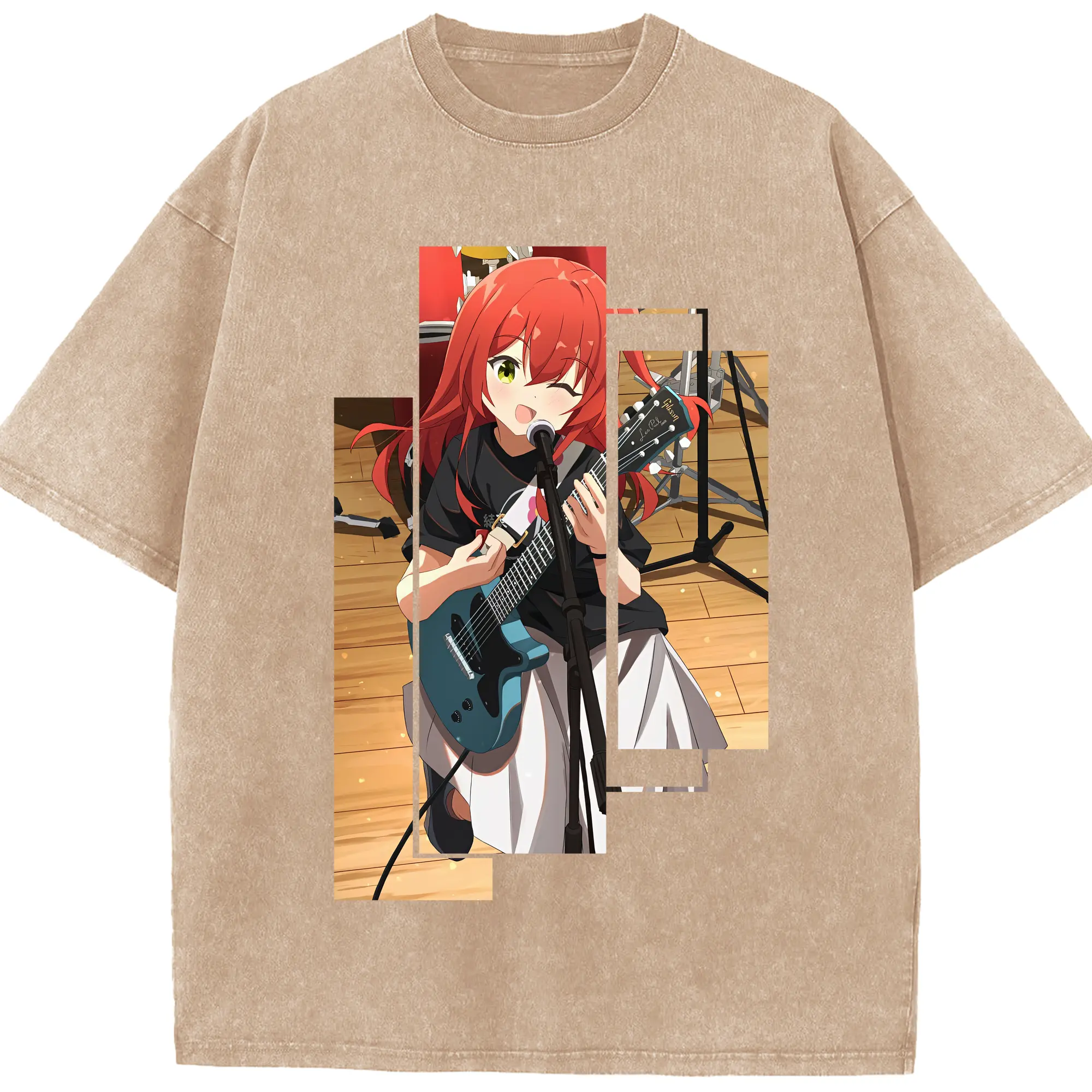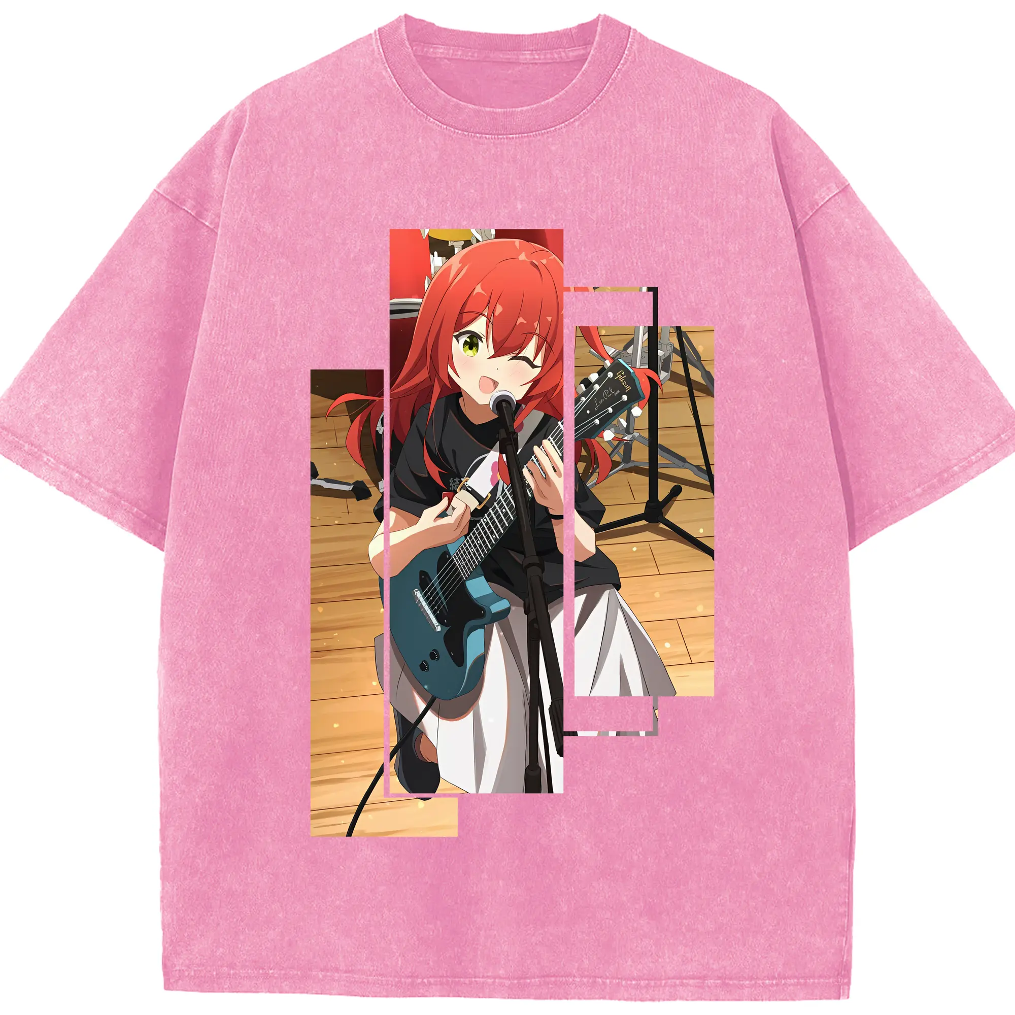 ぼっちざろっく! グッズ,喜多郁代 - 綿100% ヴィンテージ風 半袖Tシャツ ・ 背面プリント ・ 柔らか肌触り ・ 通気性 快適 ・ スポーツ カジュアル 外出用