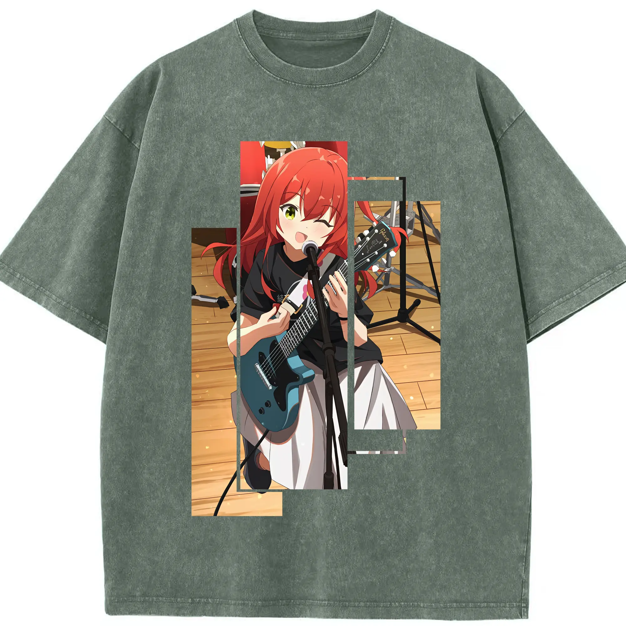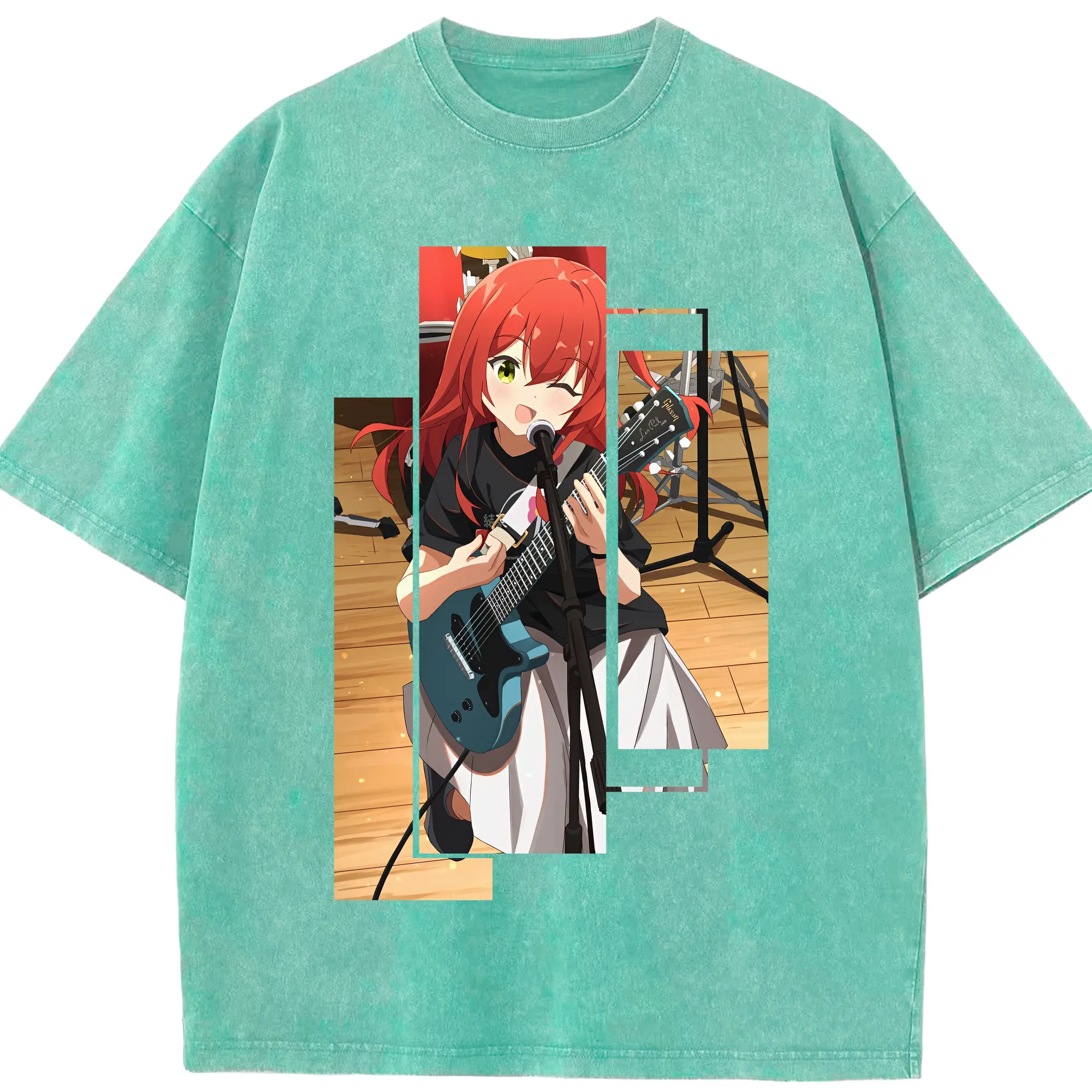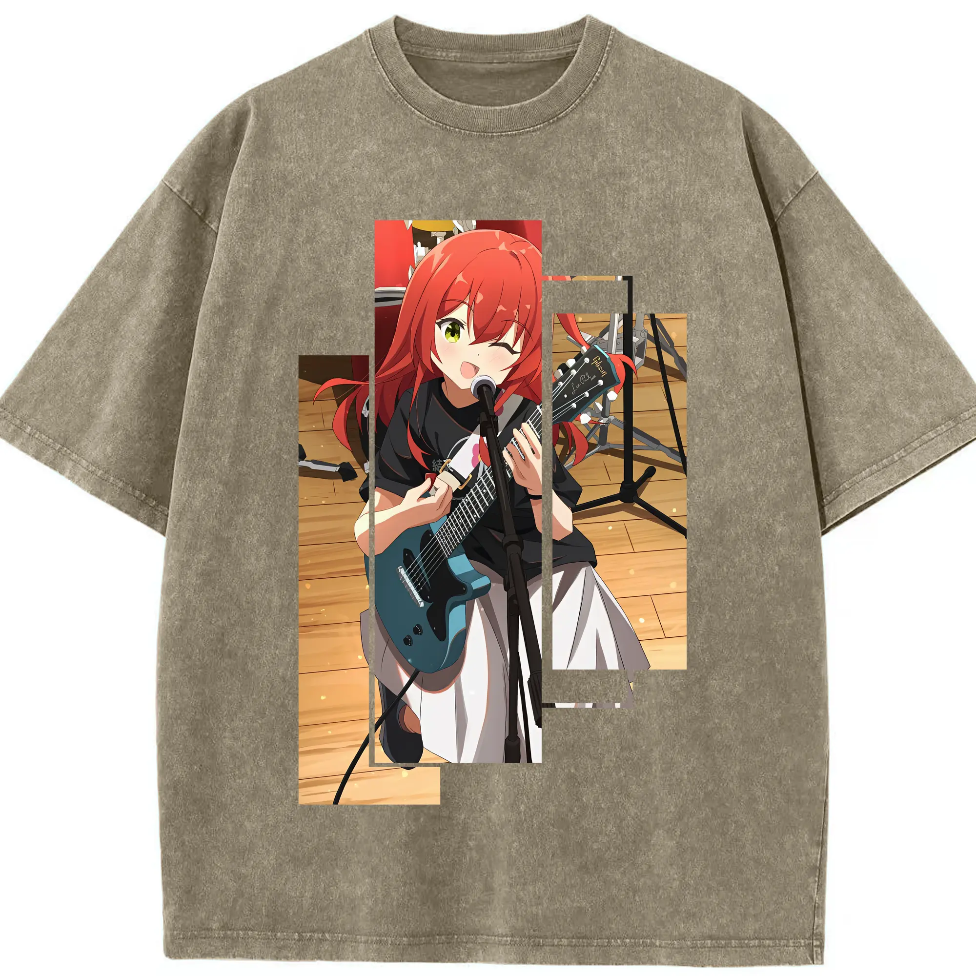 ぼっちざろっく! グッズ,喜多郁代 - 綿100% ヴィンテージ風 半袖Tシャツ ・ 背面プリント ・ 柔らか肌触り ・ 通気性 快適 ・ スポーツ カジュアル 外出用