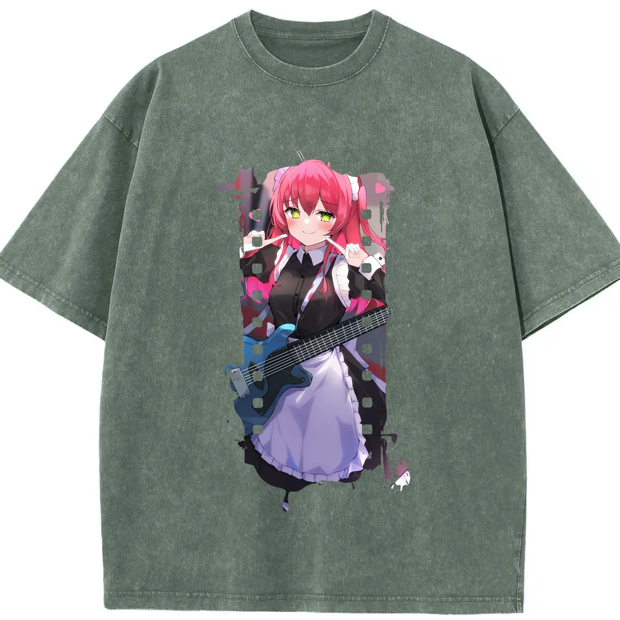 ぼっちざろっく! グッズ,喜多郁代 - 綿100% ヴィンテージ風 半袖Tシャツ ・ 背面プリント ・ 柔らか肌触り ・ 通気性 快適 ・ スポーツ カジュアル 外出用