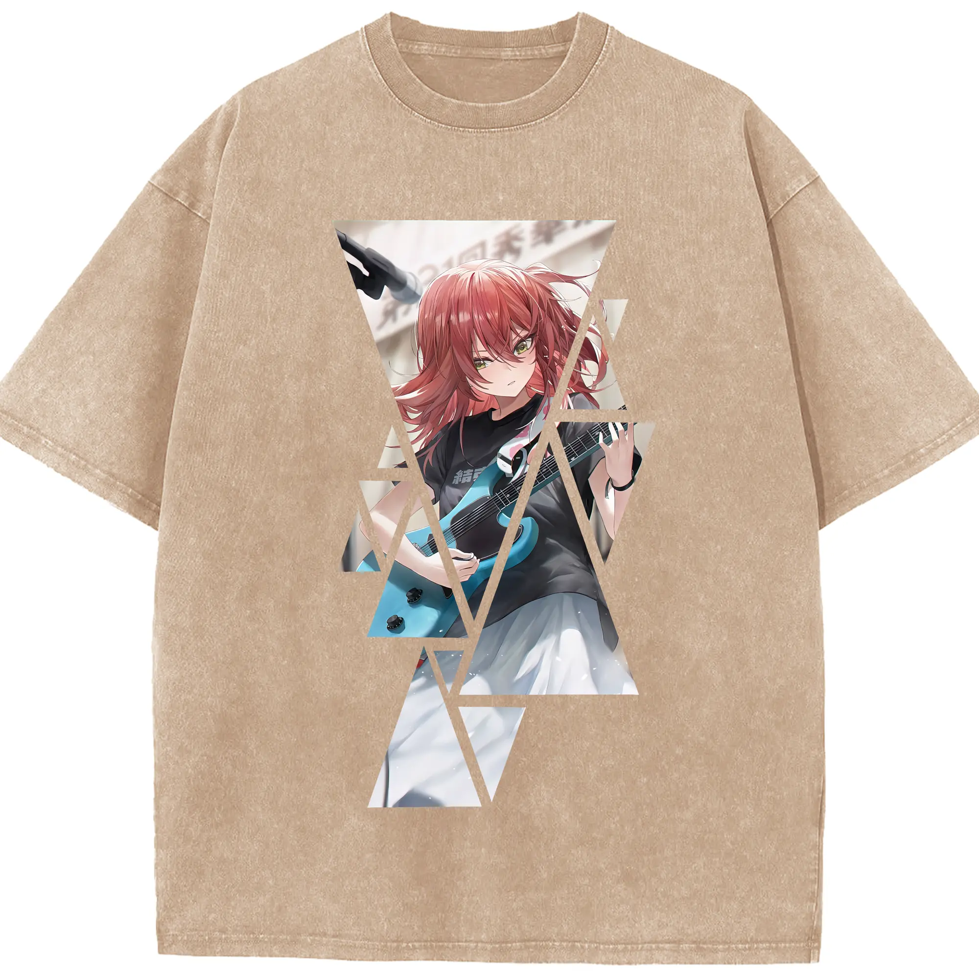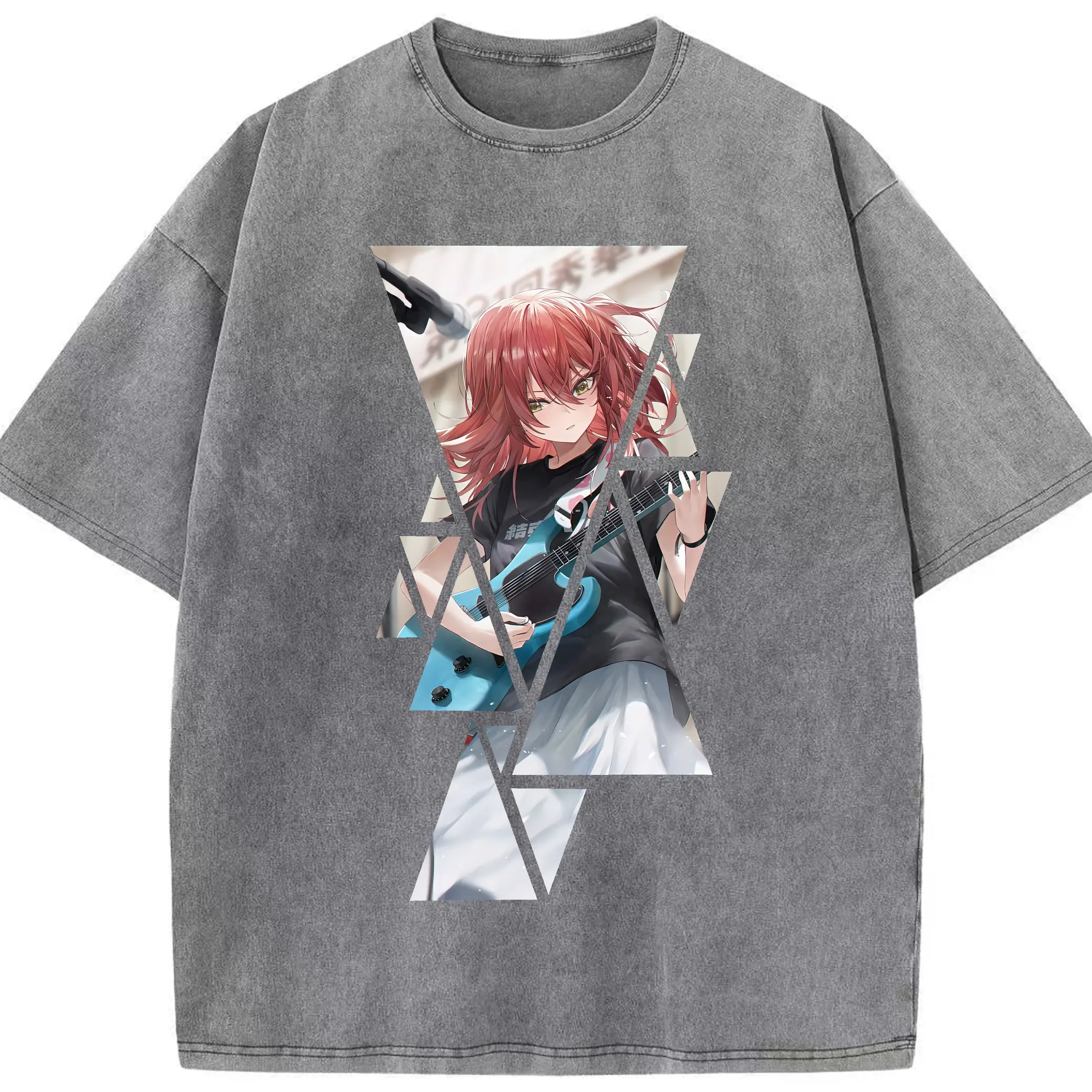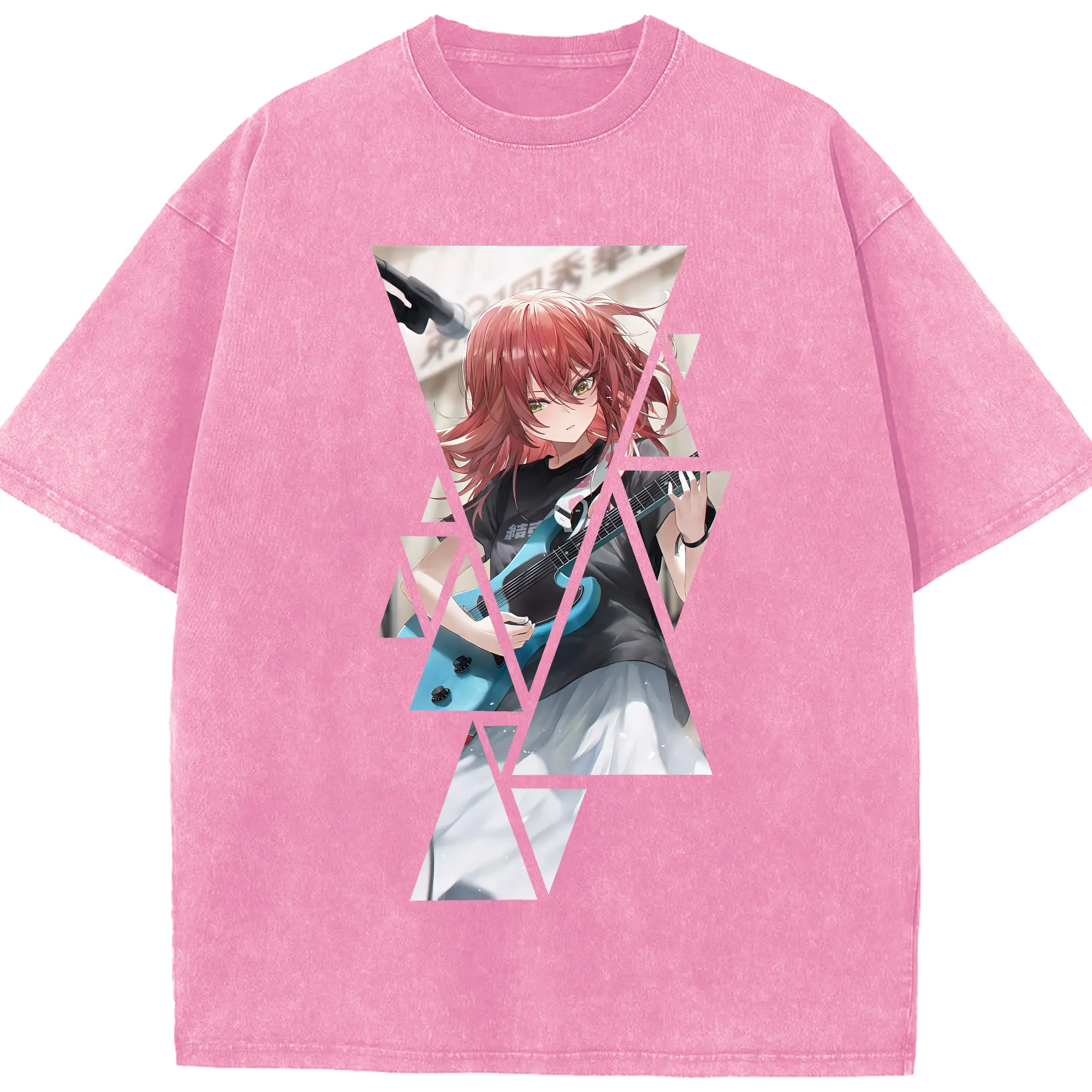 ぼっちざろっく! グッズ,喜多郁代 - 綿100% ヴィンテージ風 半袖Tシャツ ・ 背面プリント ・ 柔らか肌触り ・ 通気性 快適 ・ スポーツ カジュアル 外出用